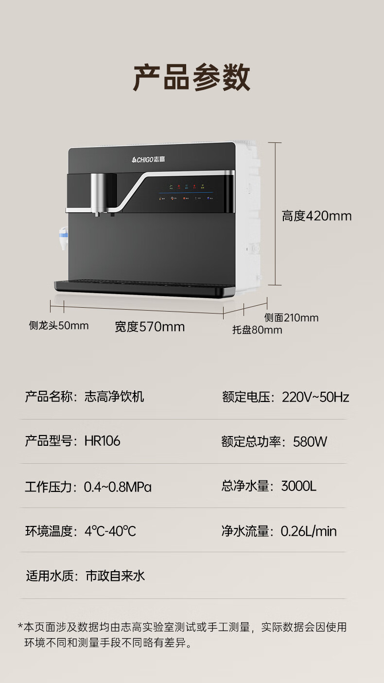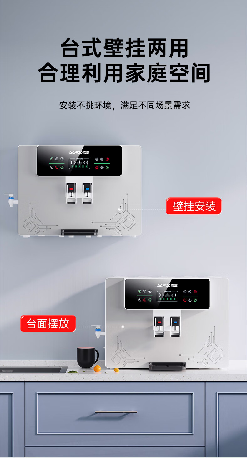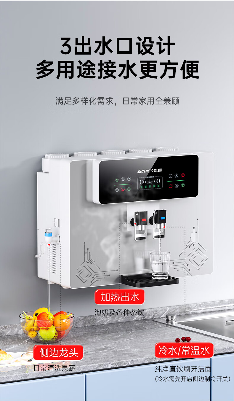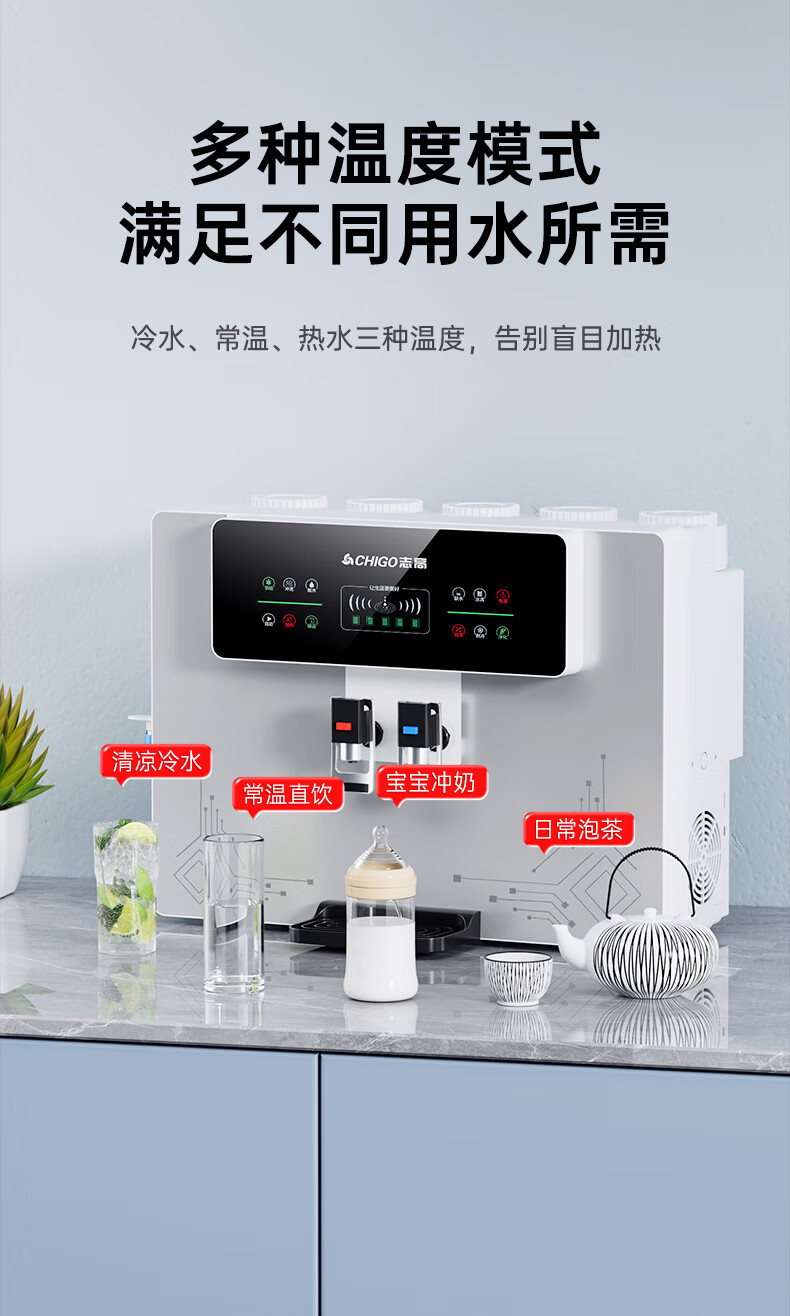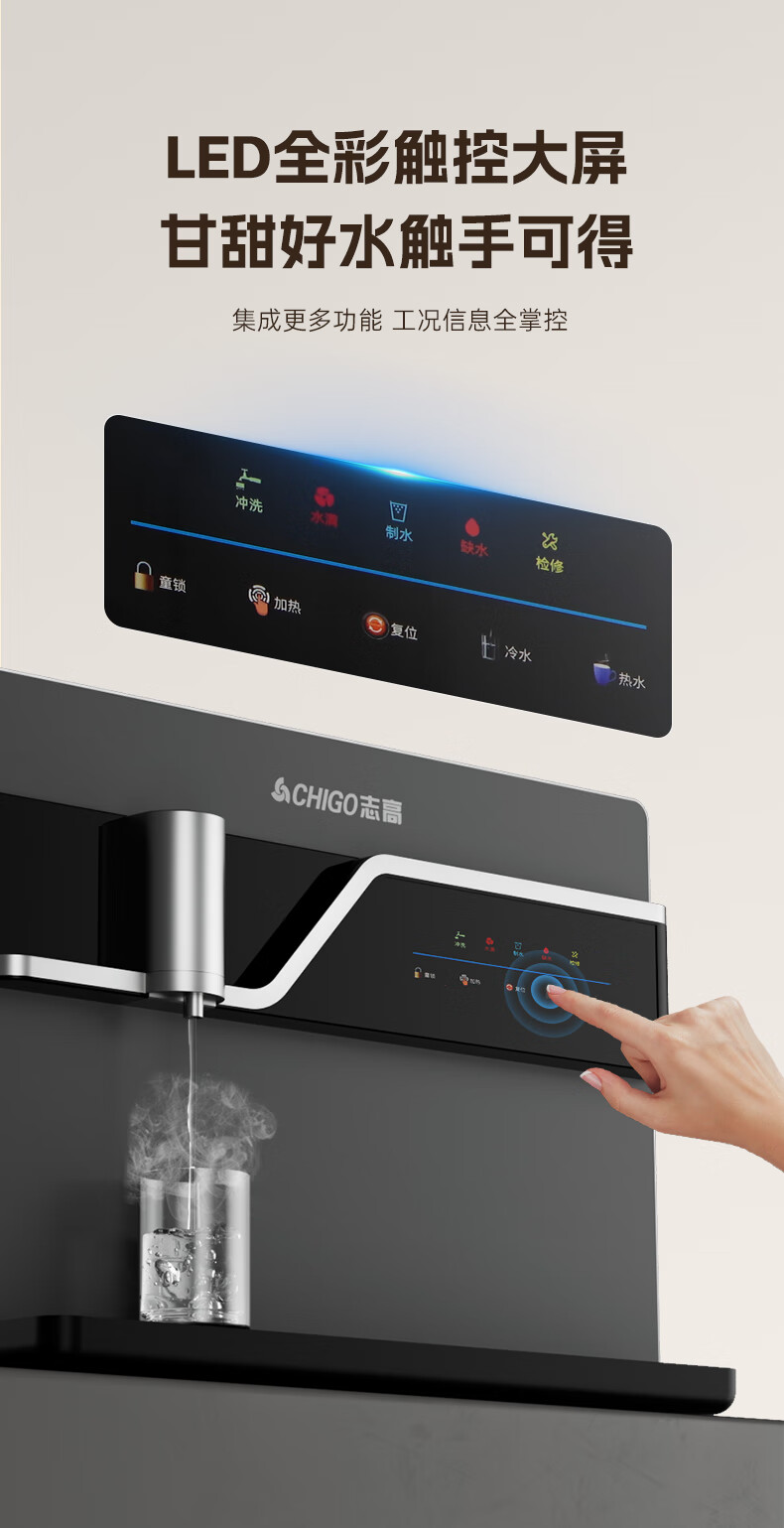 志高(CHIGO)【智能升级款】净水器家用加热制冷直饮一体壁挂式反渗透净水机接自来水过滤器带自吸饮水机 HR106两年滤芯套餐