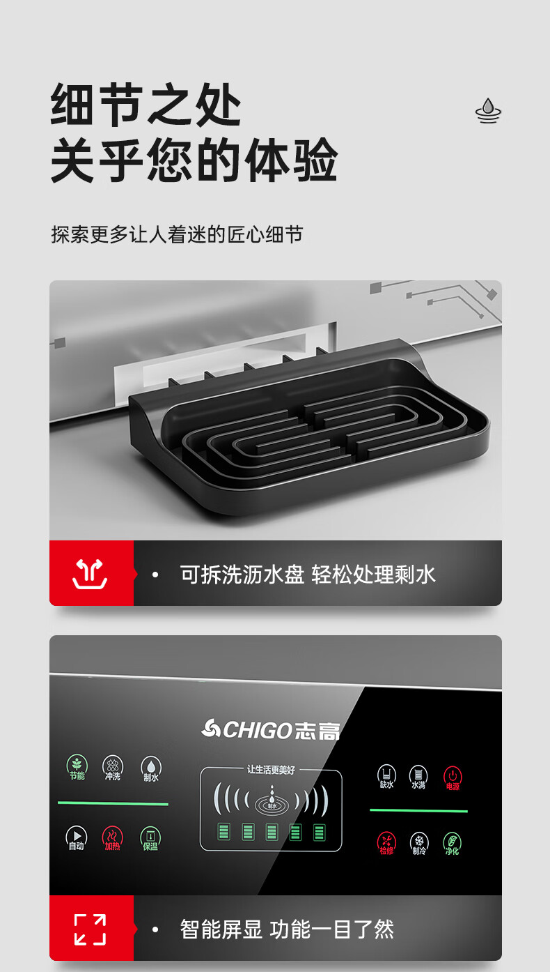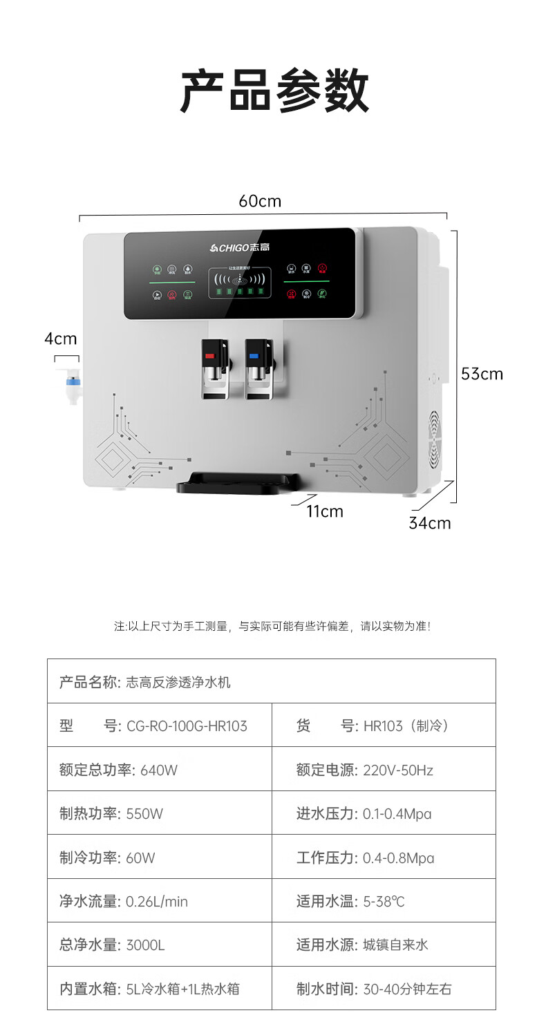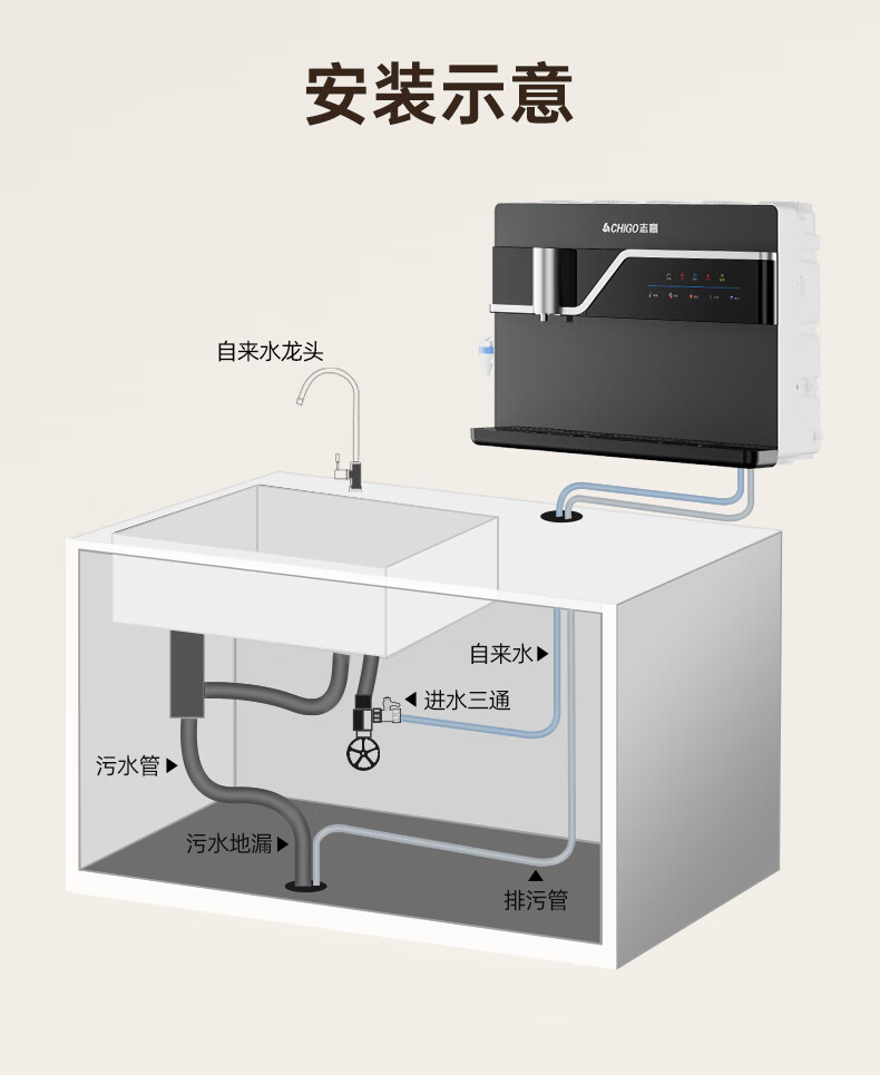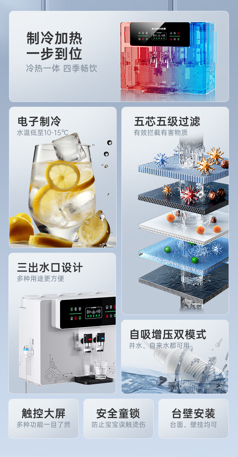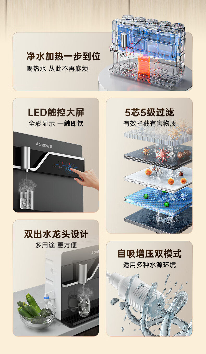 志高(CHIGO)【智能升级款】净水器家用加热制冷直饮一体壁挂式反渗透净水机接自来水过滤器带自吸饮水机 HR106两年滤芯套餐