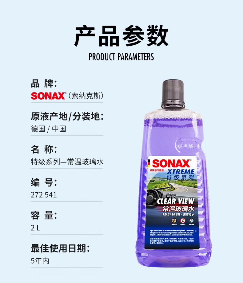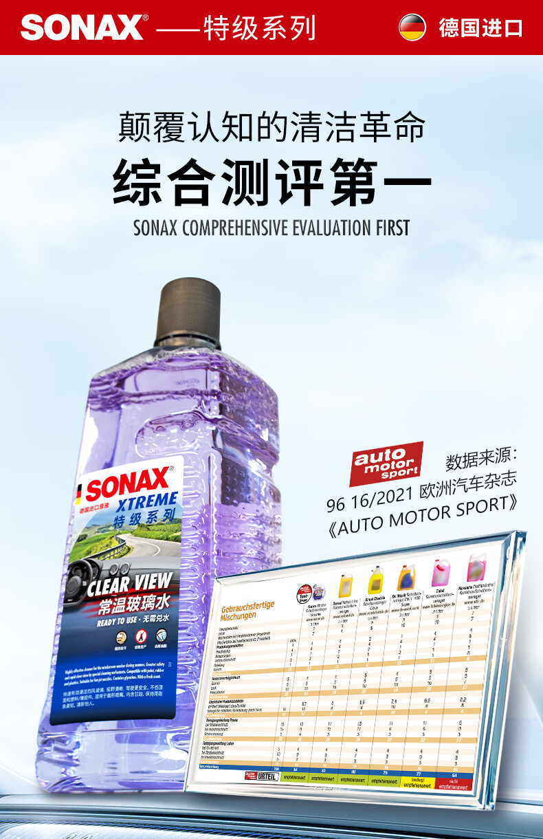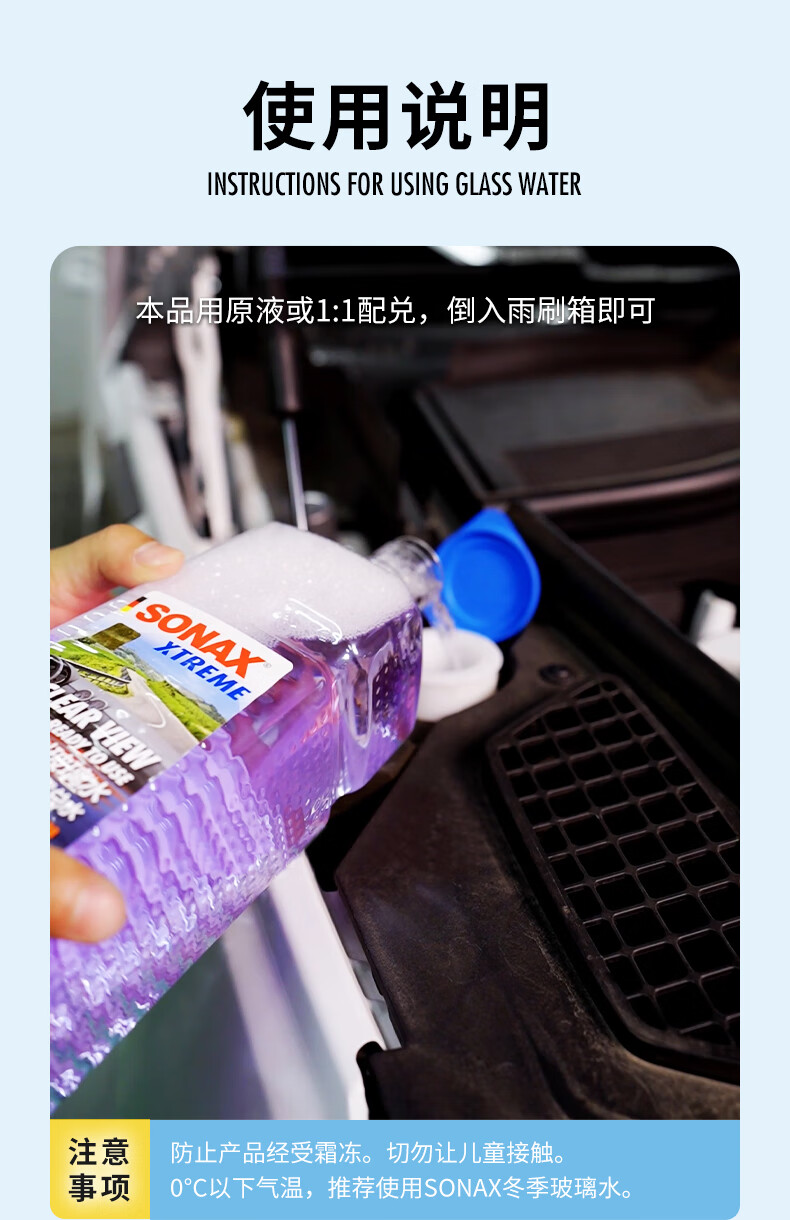索纳克斯(SONAX)德国进口汽车玻璃水去油膜虫胶雨刷精前挡玻璃强力去污雨刮水四季 【0°C 特级系列】4L玻璃水