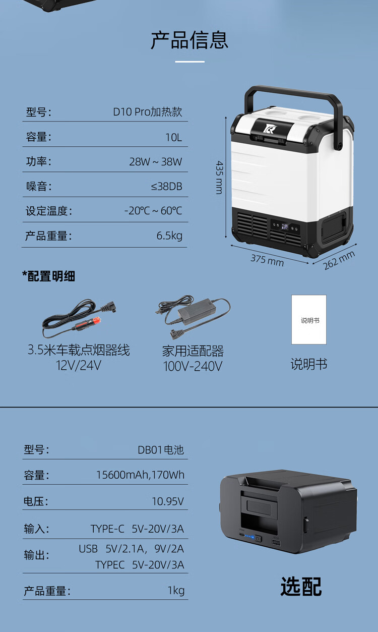 酷宝(Coolbox)胰岛素冷藏盒便携式迷你小冰箱旅行充电式车载保鲜药品疫苗恒温箱 双层大盒双电池12小时 车家两用 3L