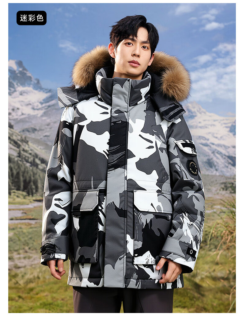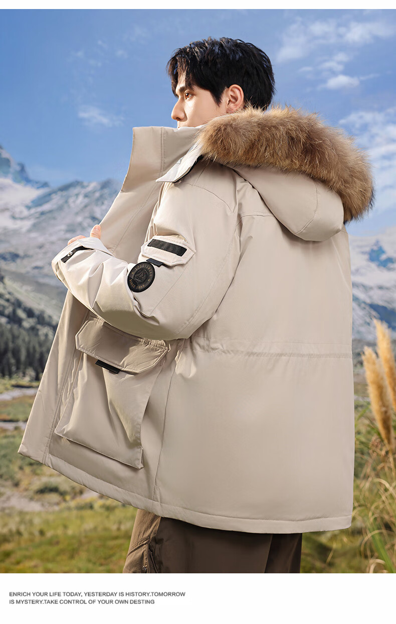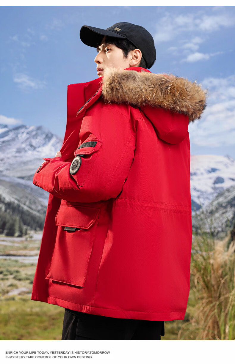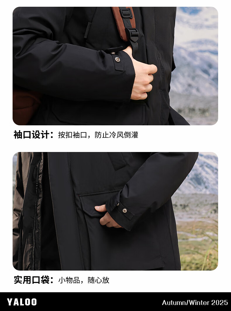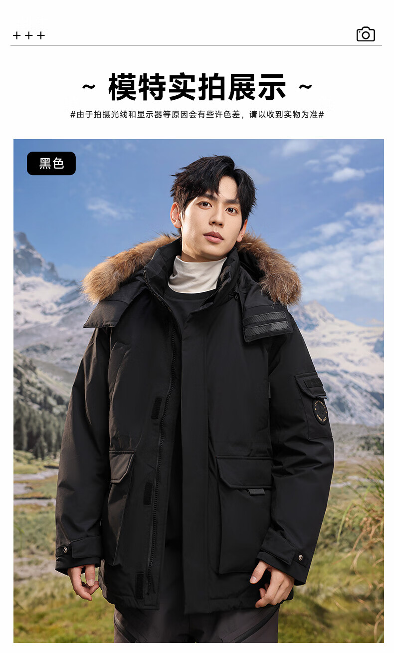 雅鹿羽绒服男士中长款冬季新款可拆卸帽加厚貂子毛领户外工装保暖外套 黑色 L /175