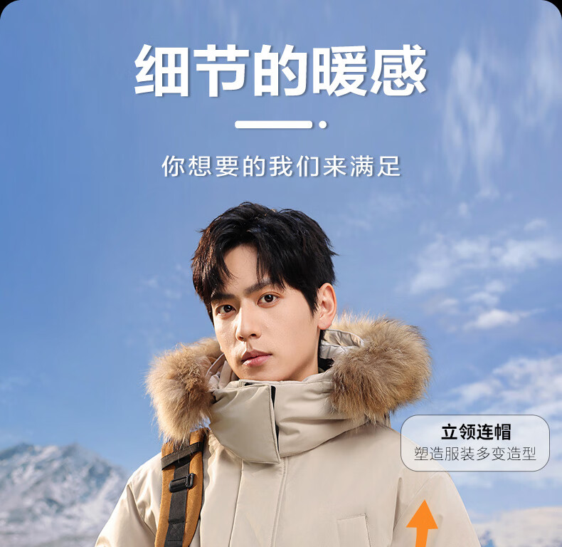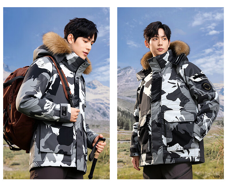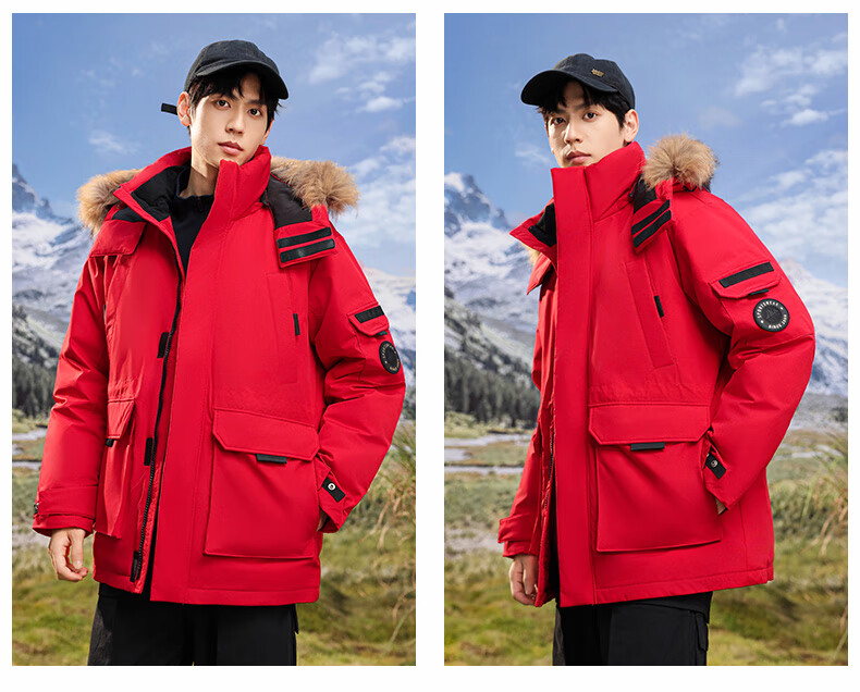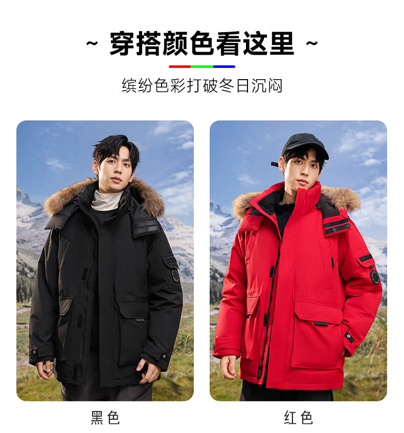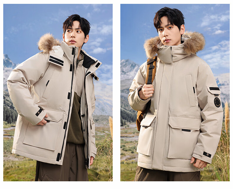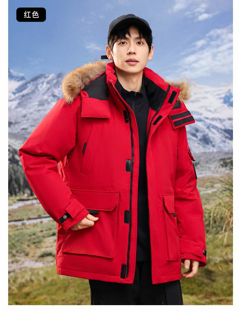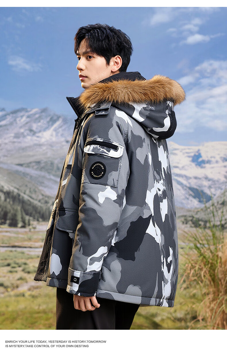 雅鹿羽绒服男士中长款冬季新款可拆卸帽加厚貂子毛领户外工装保暖外套 黑色 L /175