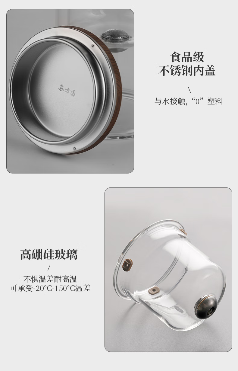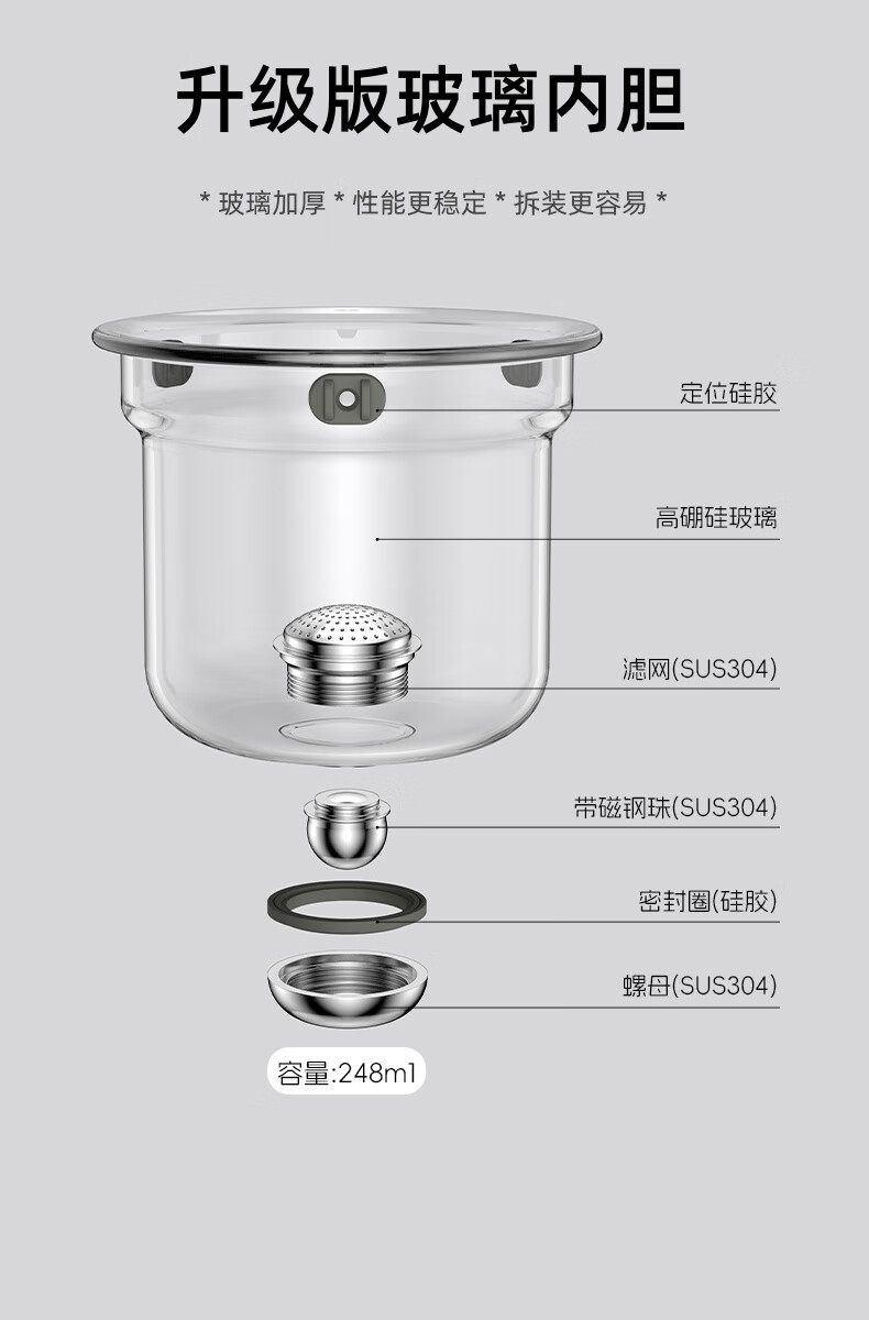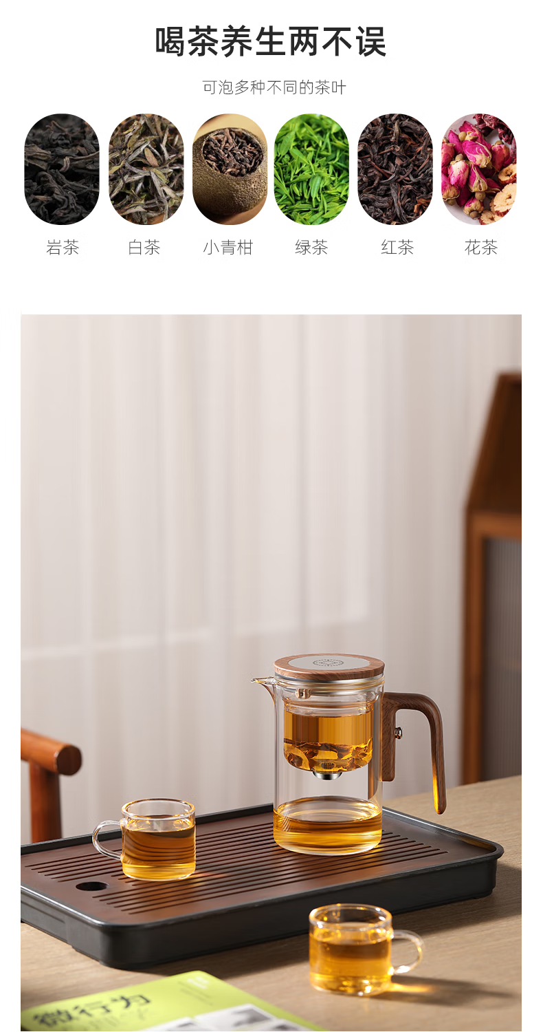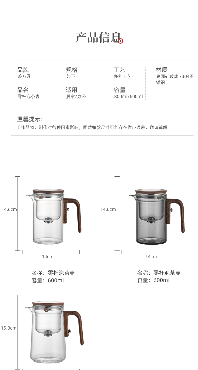 茶方圆零杆泡茶壶磁吸飘逸杯全玻璃内胆一键茶水分离办公家用懒人泡茶具 【第4代透明款】木色(单壶) 600ml