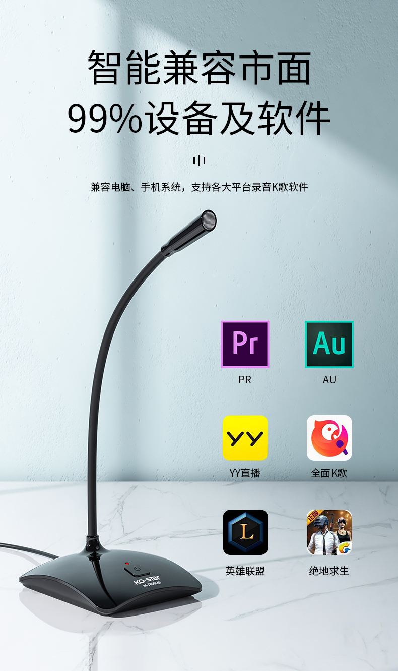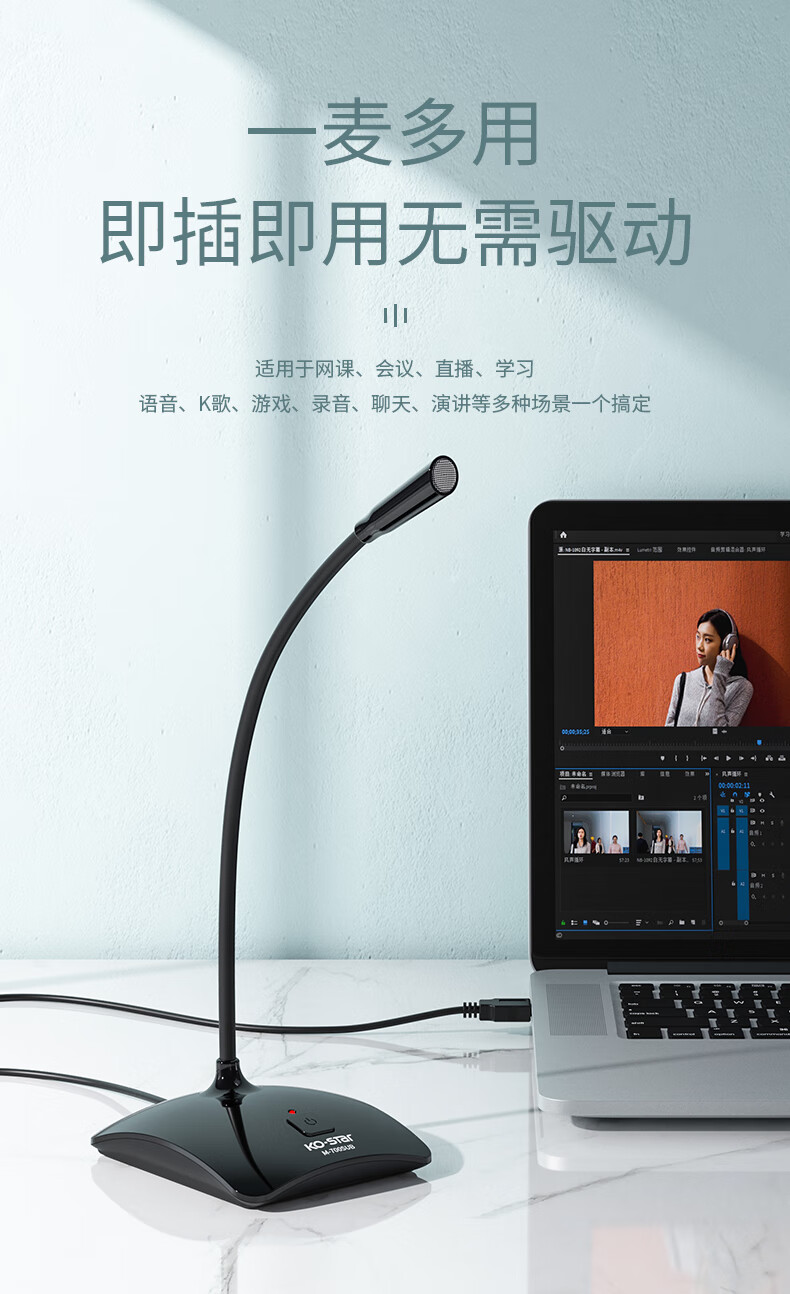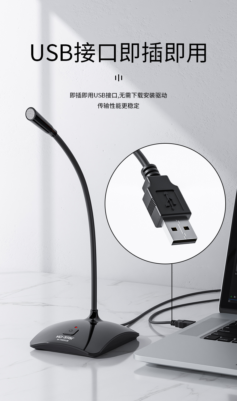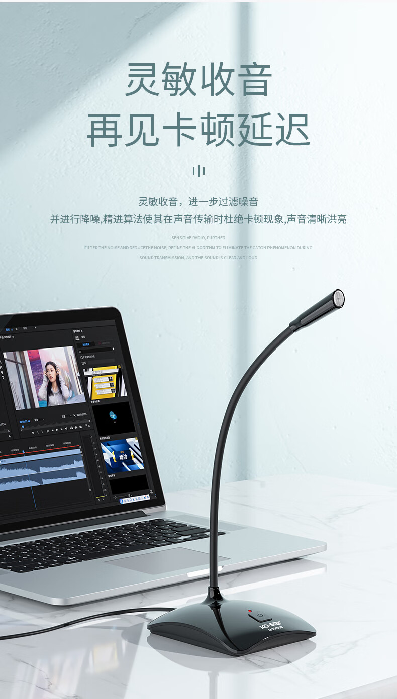 KO-STAR 麦克风电脑有线话筒 USB台式电脑笔记本声卡 游戏语音 直播K歌办公会议 上网课通用 【升级版 黑色】降噪/调音/混响