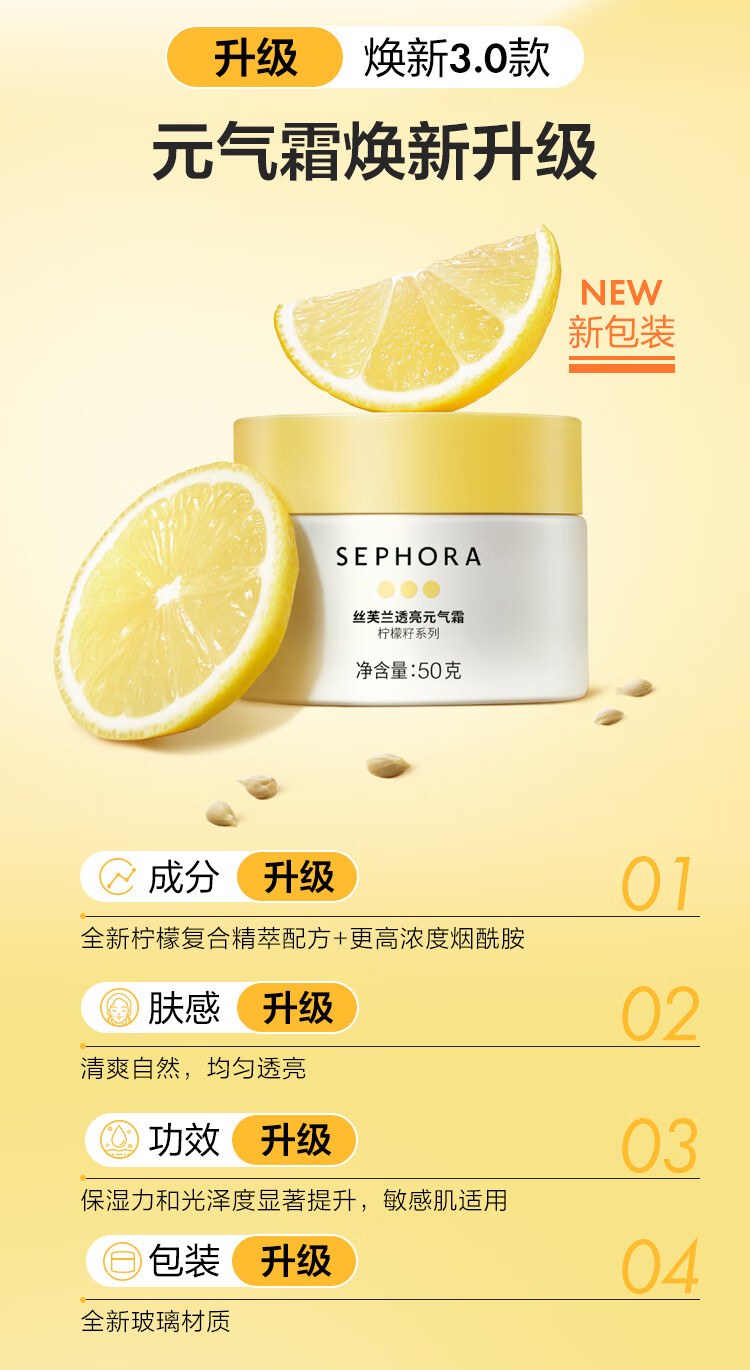 丝芙兰(SEPHORA)素颜霜透亮元气霜烟酰胺面部身体素颜霜懒人 50g双罐装