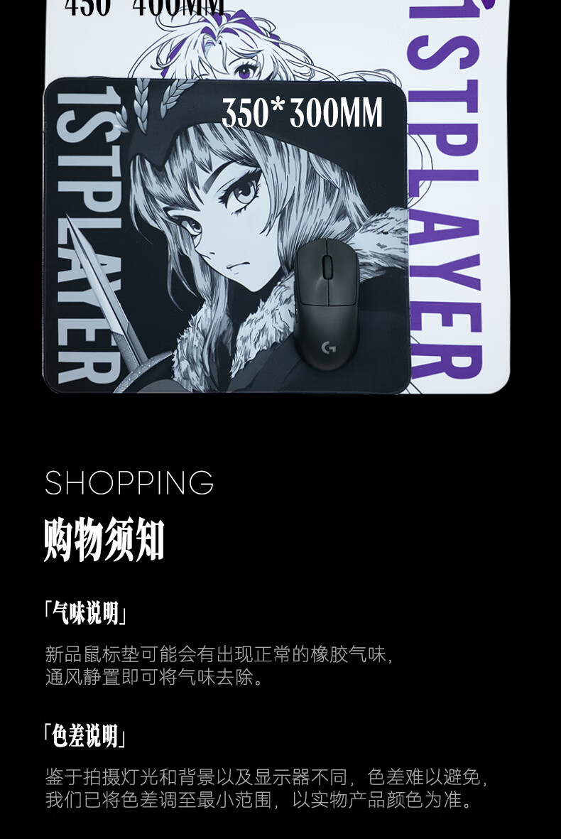 首席玩家(1st player)双子星专业电竞鼠标垫FPS打瓦低敏二次元桌垫超大 影 350x300mm