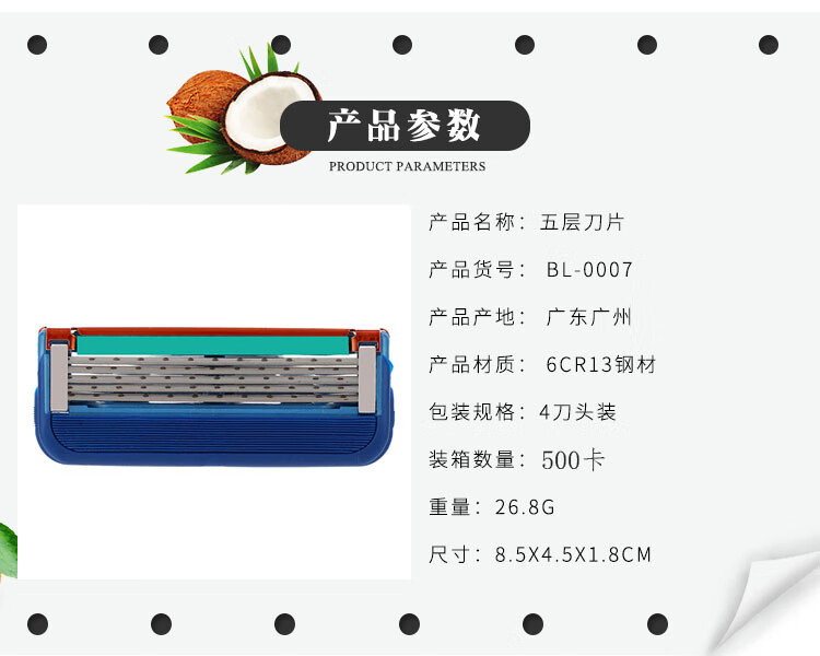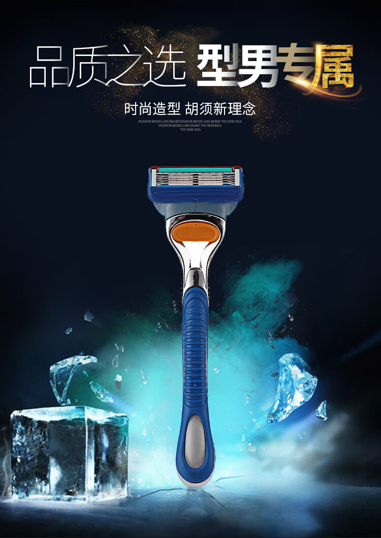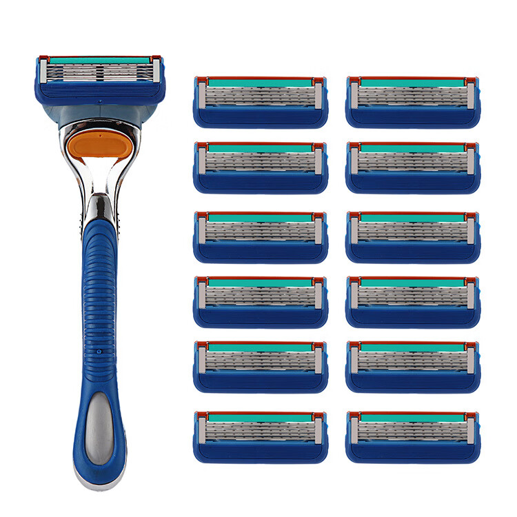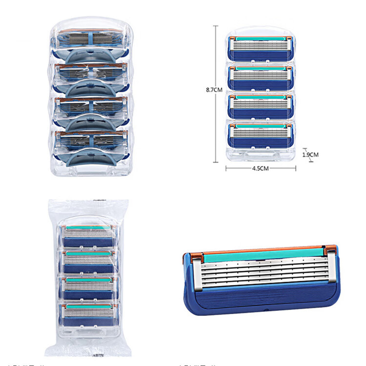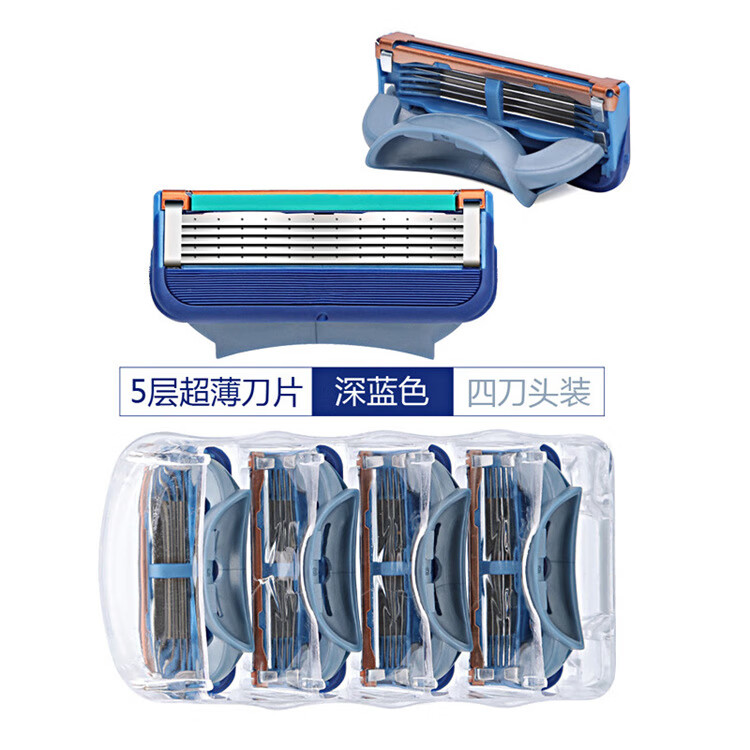 【严选直发】五层刀片橙色5刀头男士剃须刀手动5层剃须刀片 1卡4个 蓝色