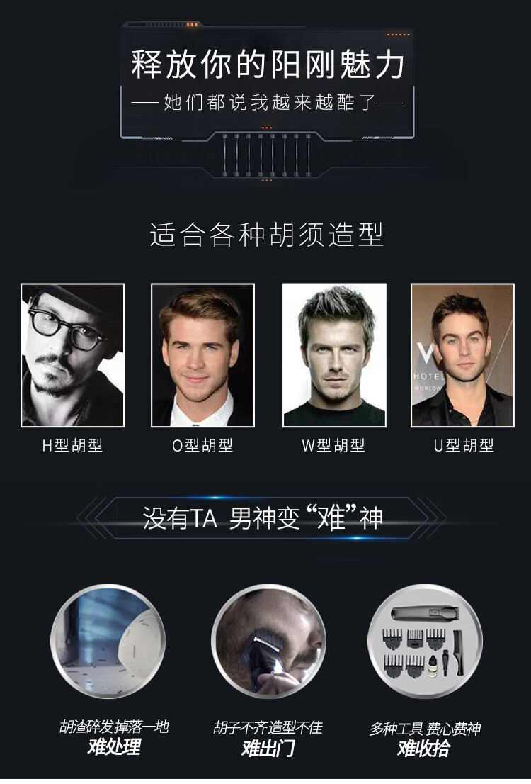 欧点电动剃须刀充电式刮胡刀学生便携式胡须刀快充胡子刀商务须刨刀刮脸刀修剪器刮刮毛刀递须刀 【快充|Type-C|鬓角】BOX820