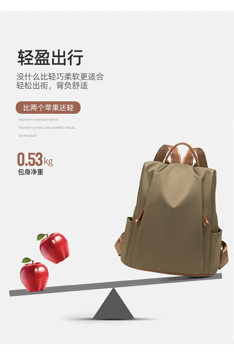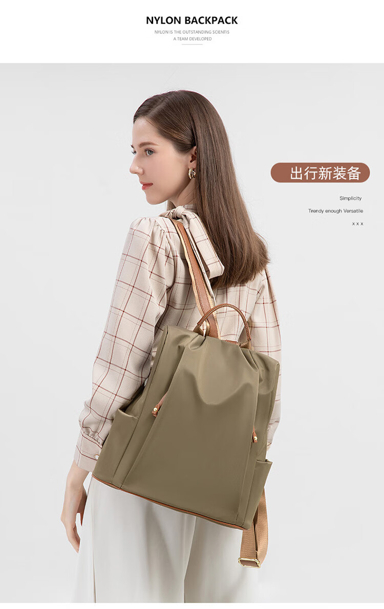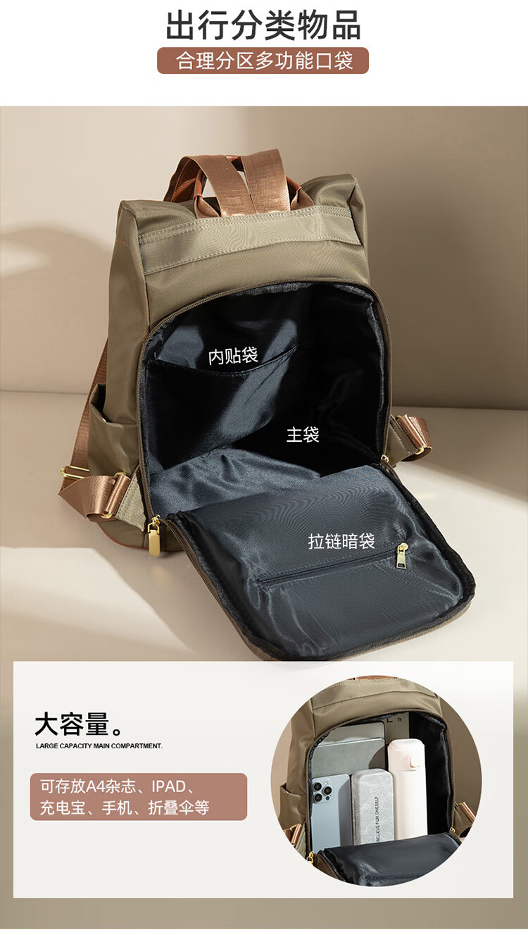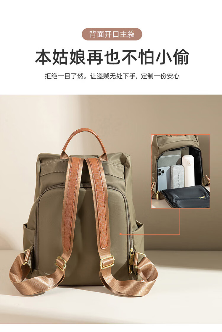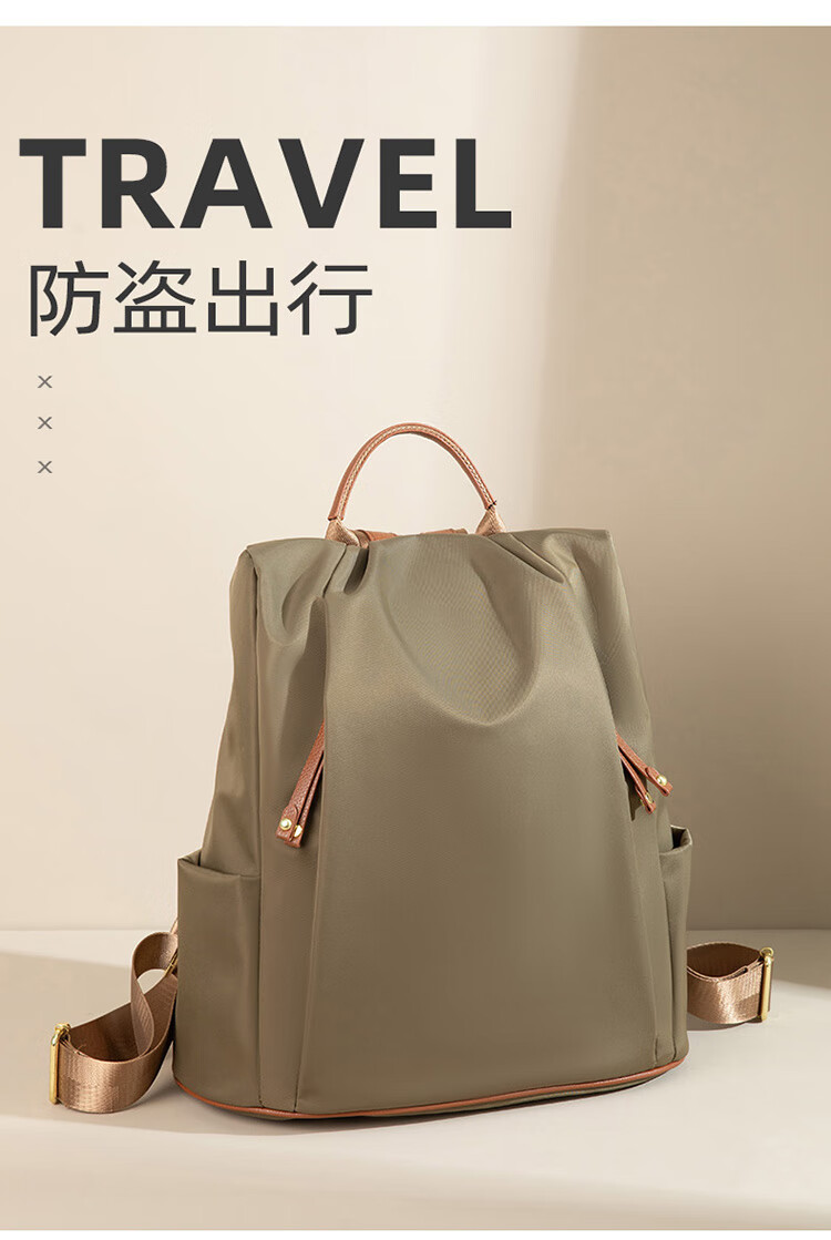 布布猴双肩包女2025年新款防盗轻便大容量女士旅游背包学生书包电脑背包 卡其色-可放平板
