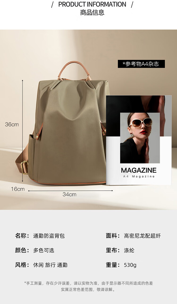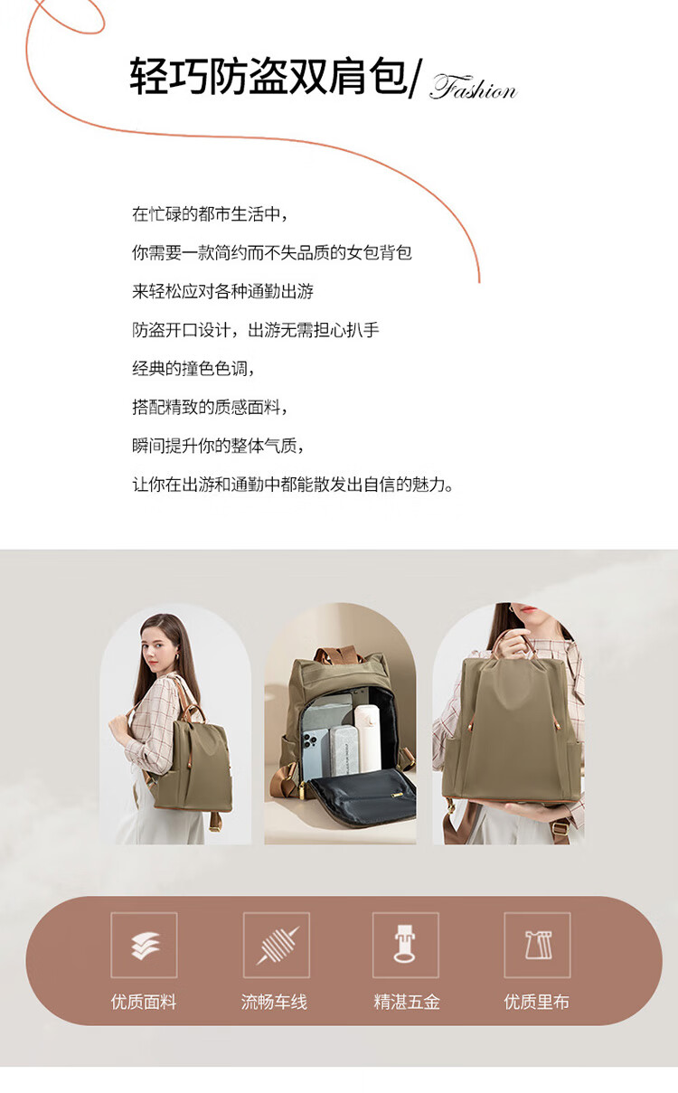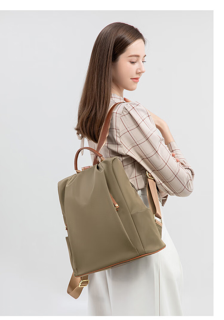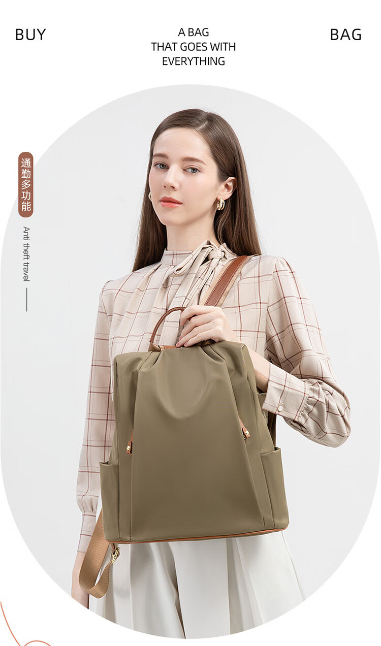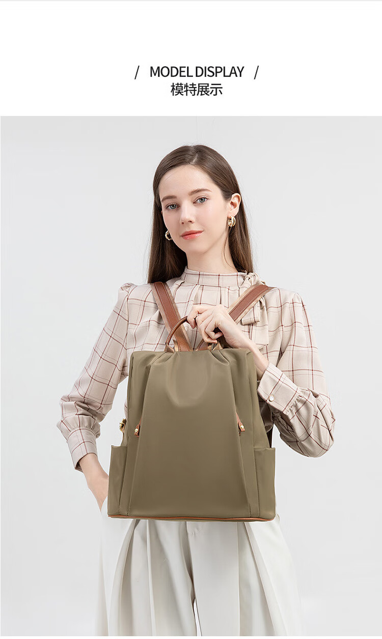 布布猴双肩包女2025年新款防盗轻便大容量女士旅游背包学生书包电脑背包 卡其色-可放平板