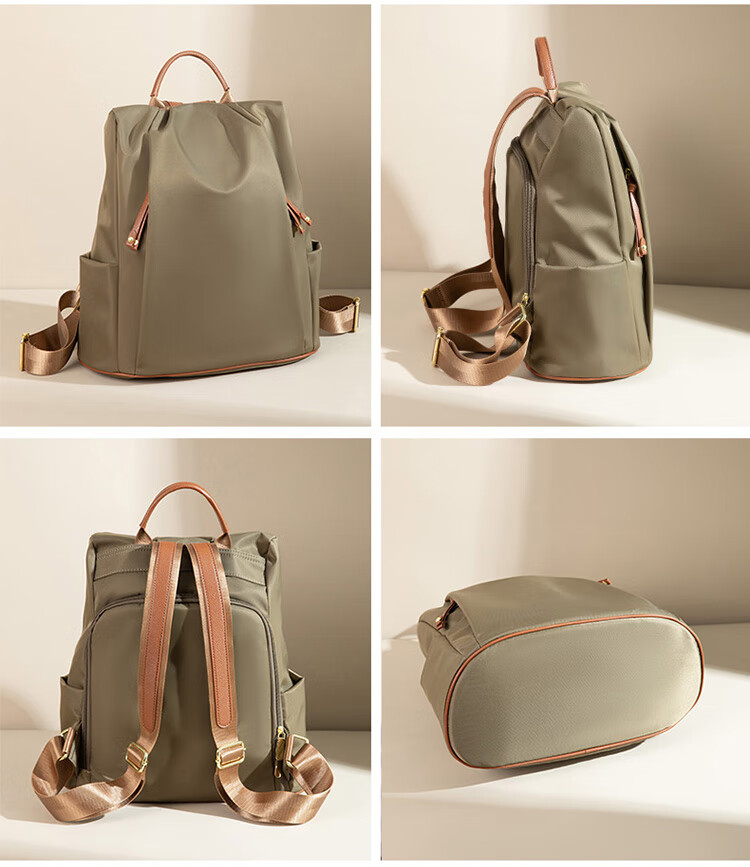思牧(SIMU)女士多功能大容量双肩包2025新款轻便时尚休闲旅游包 蛋黄流沙