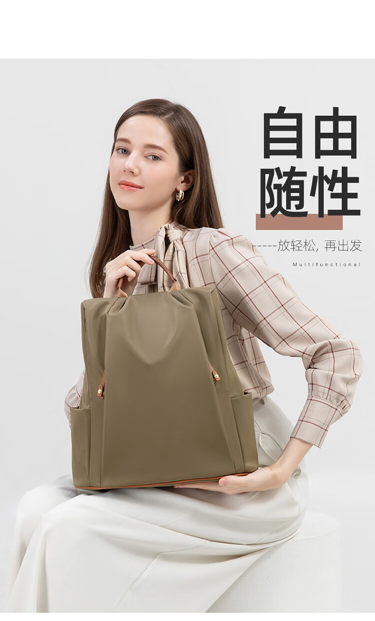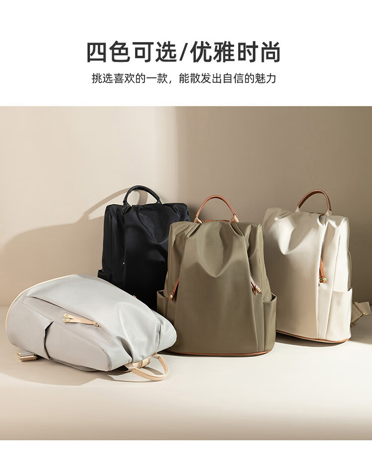 思牧(SIMU)女士多功能大容量双肩包2025新款轻便时尚休闲旅游包 奶油色