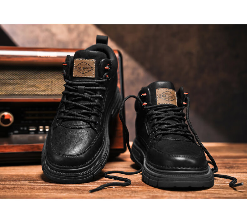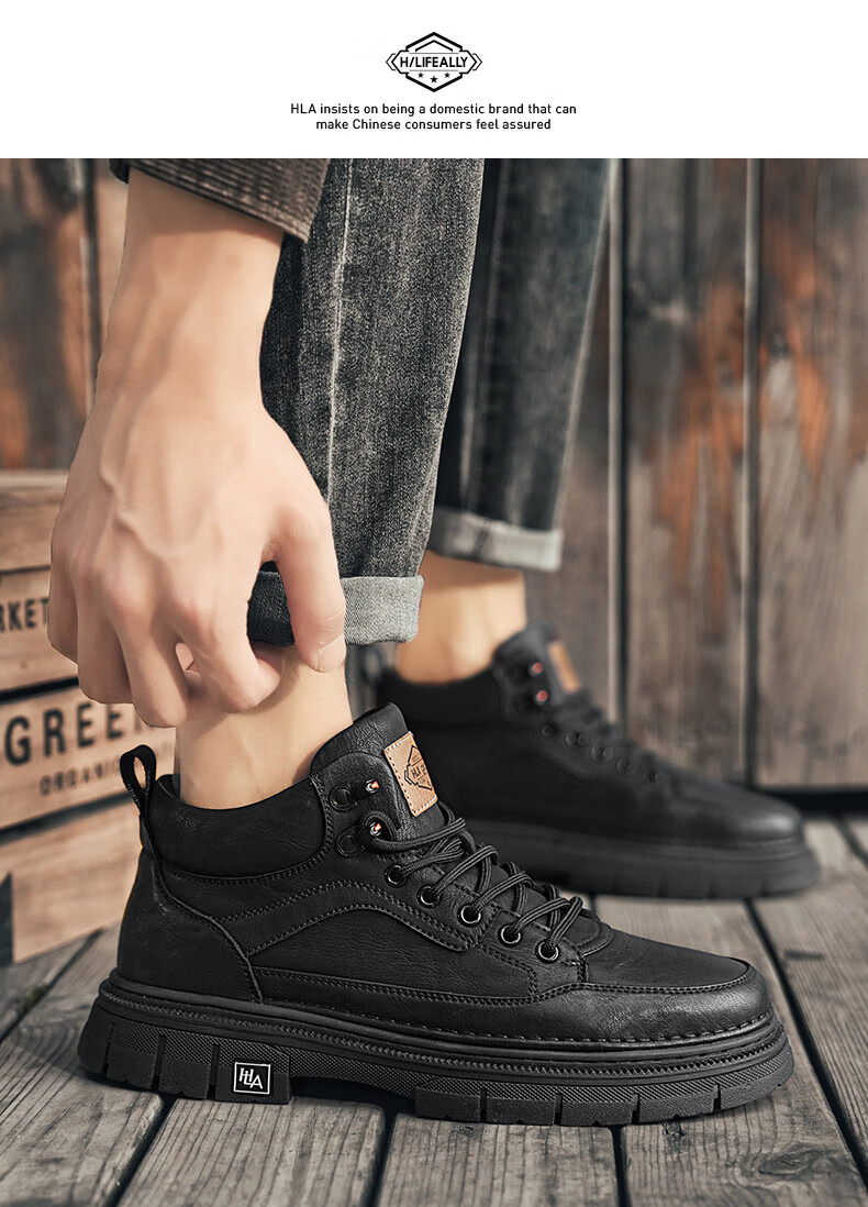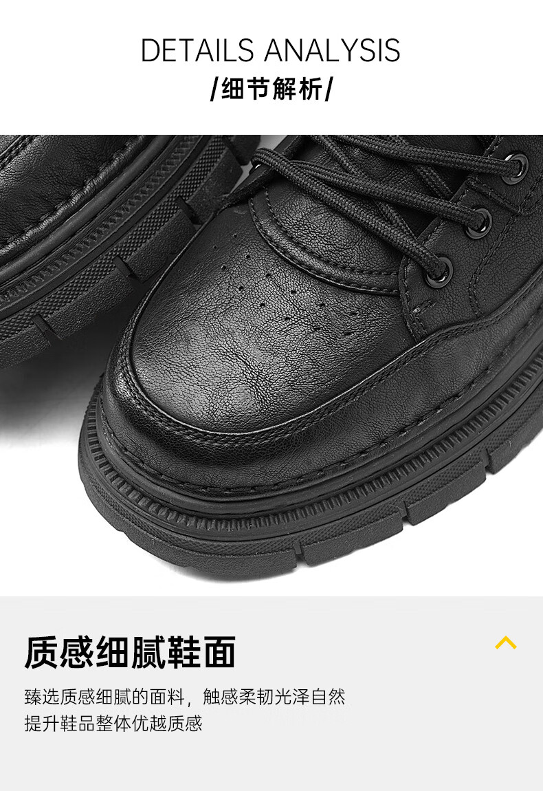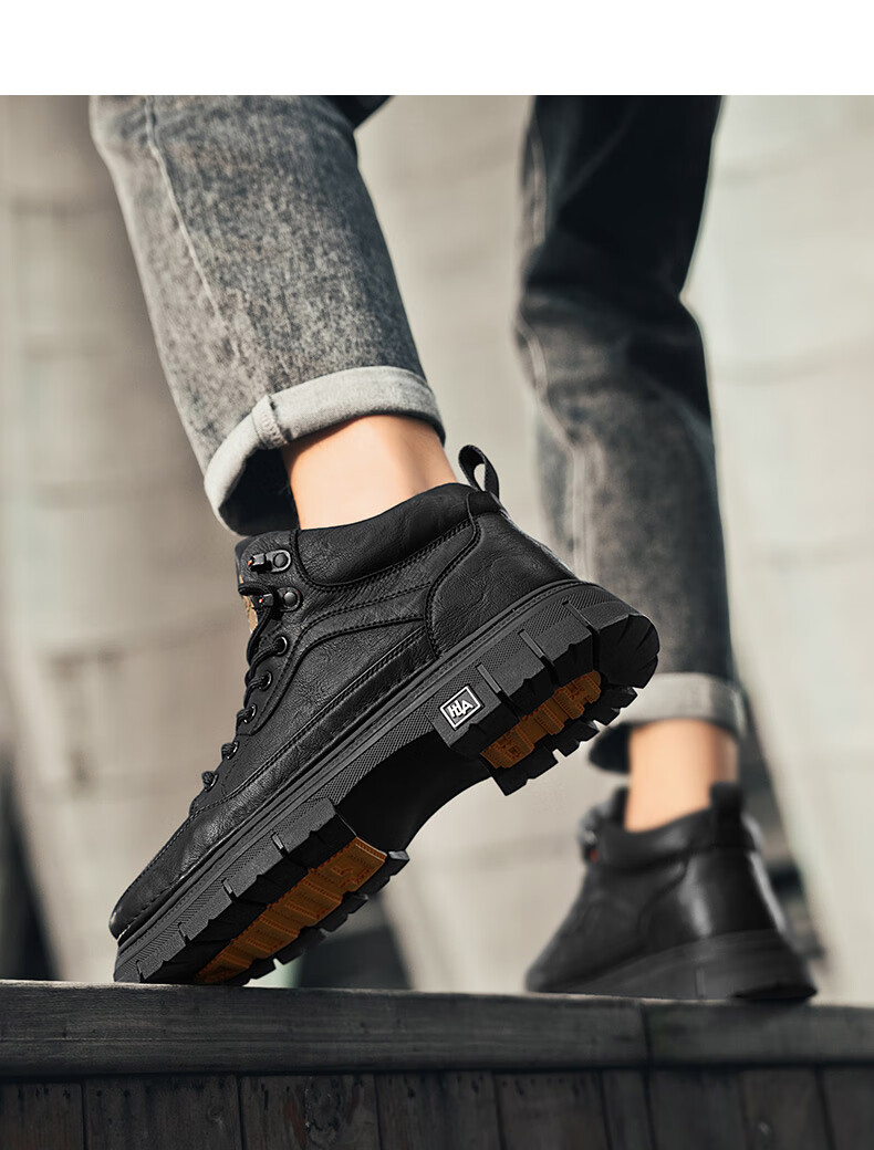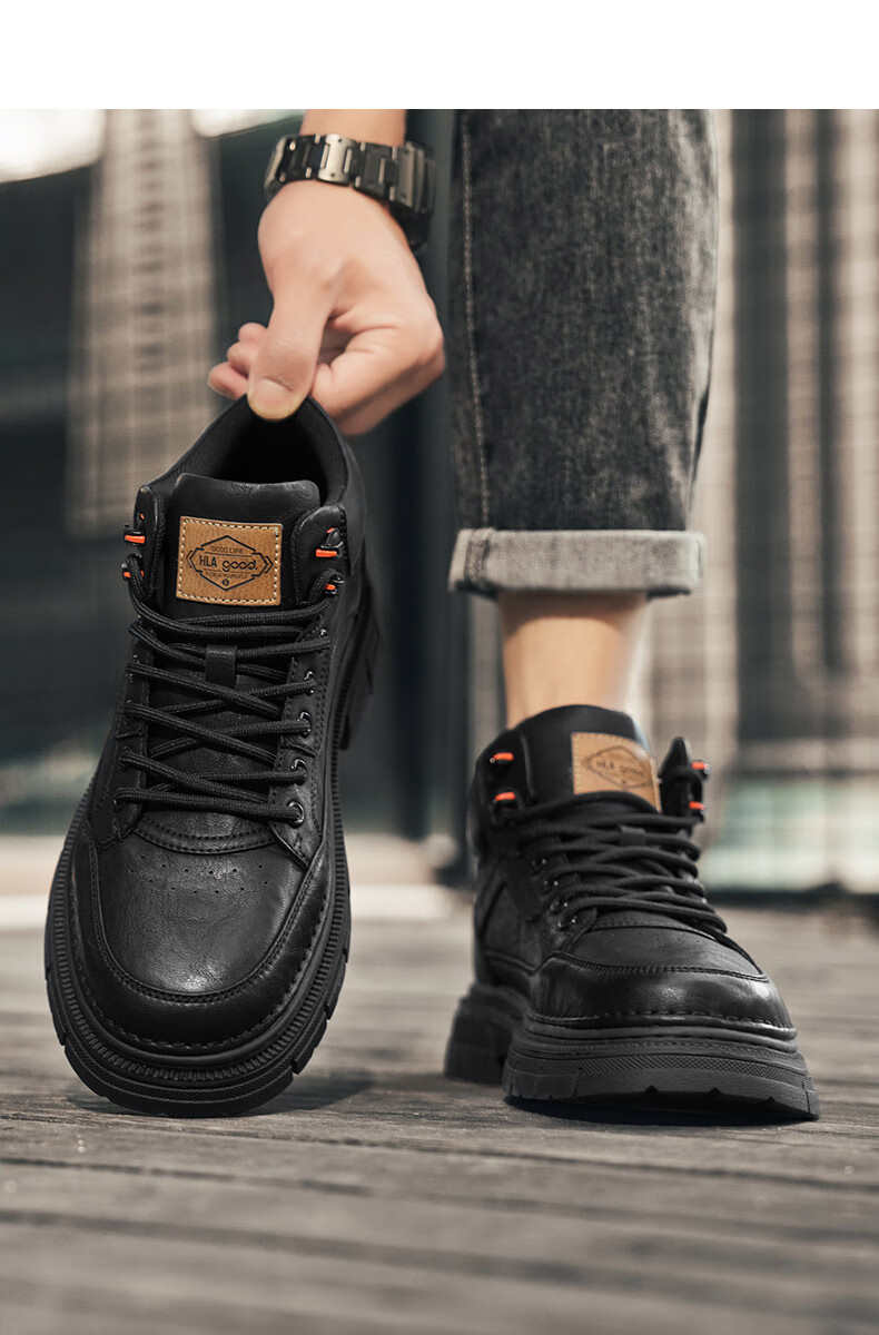 海澜之家马丁靴男鞋子男鞋秋冬2025新款男士马丁靴高帮棉鞋男增高休闲皮靴 黑色【加绒加厚棉鞋男436】 43