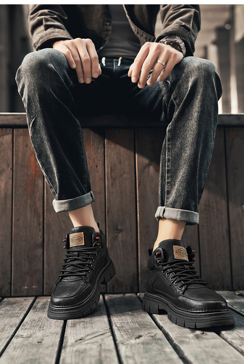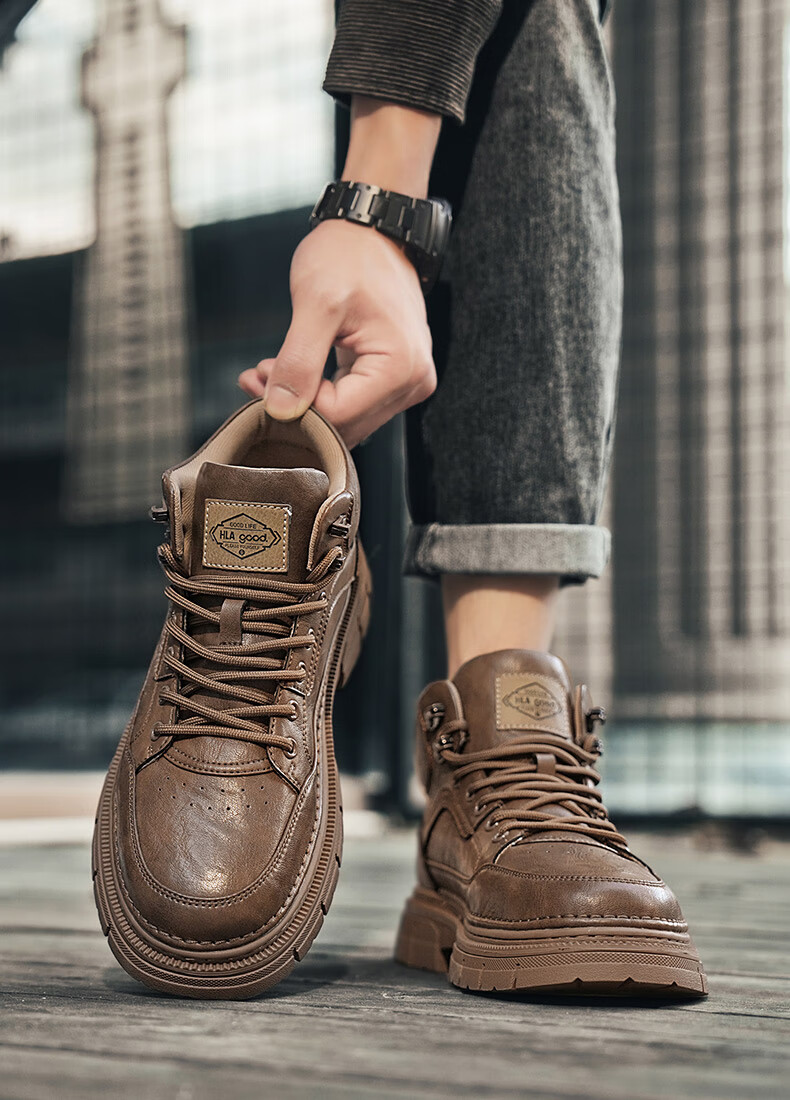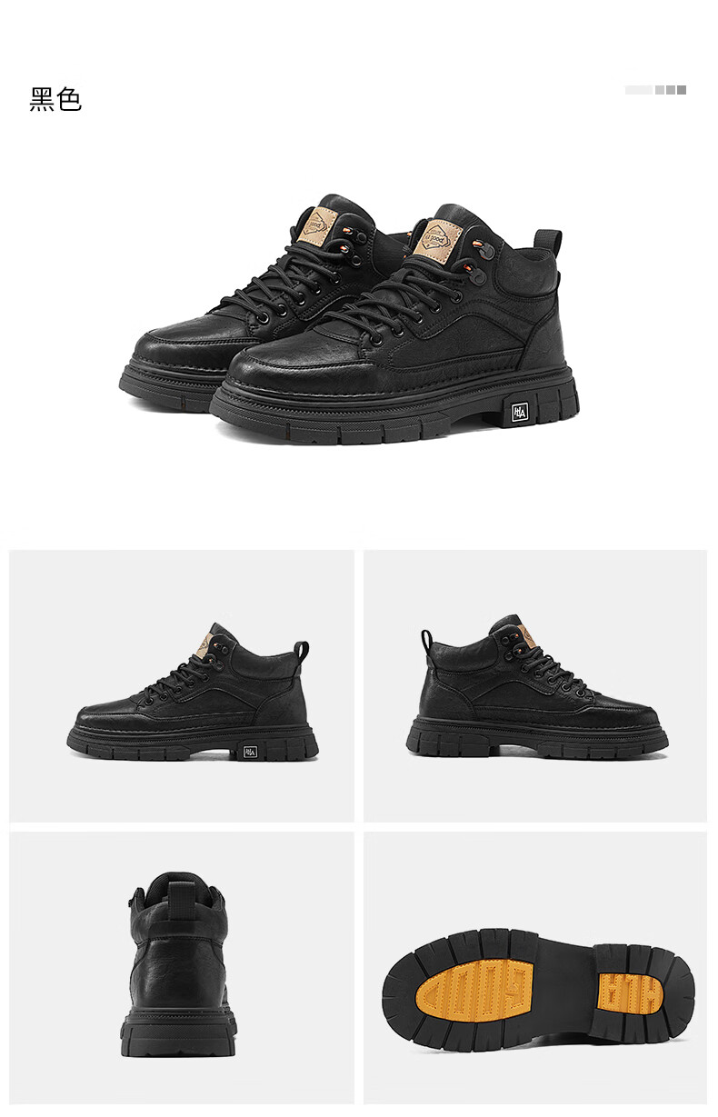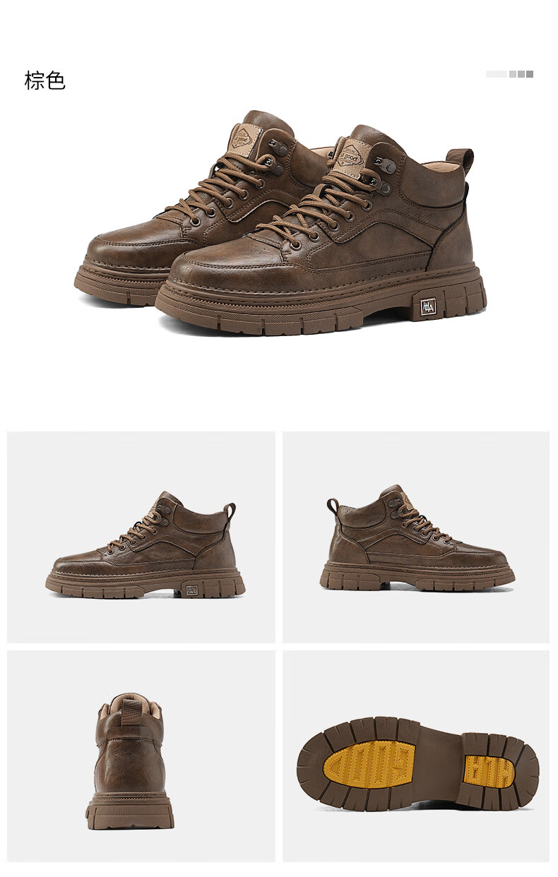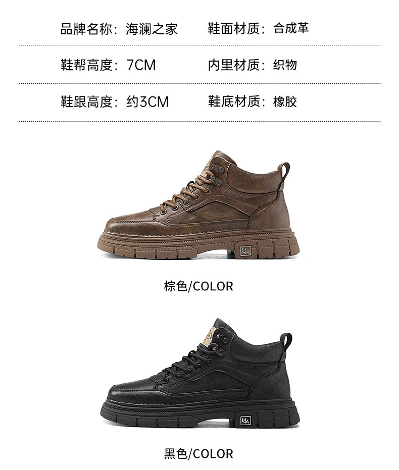海澜之家马丁靴男鞋子男鞋秋冬2025新款男士马丁靴高帮棉鞋男增高休闲皮靴 黑色【加绒加厚棉鞋男436】 43