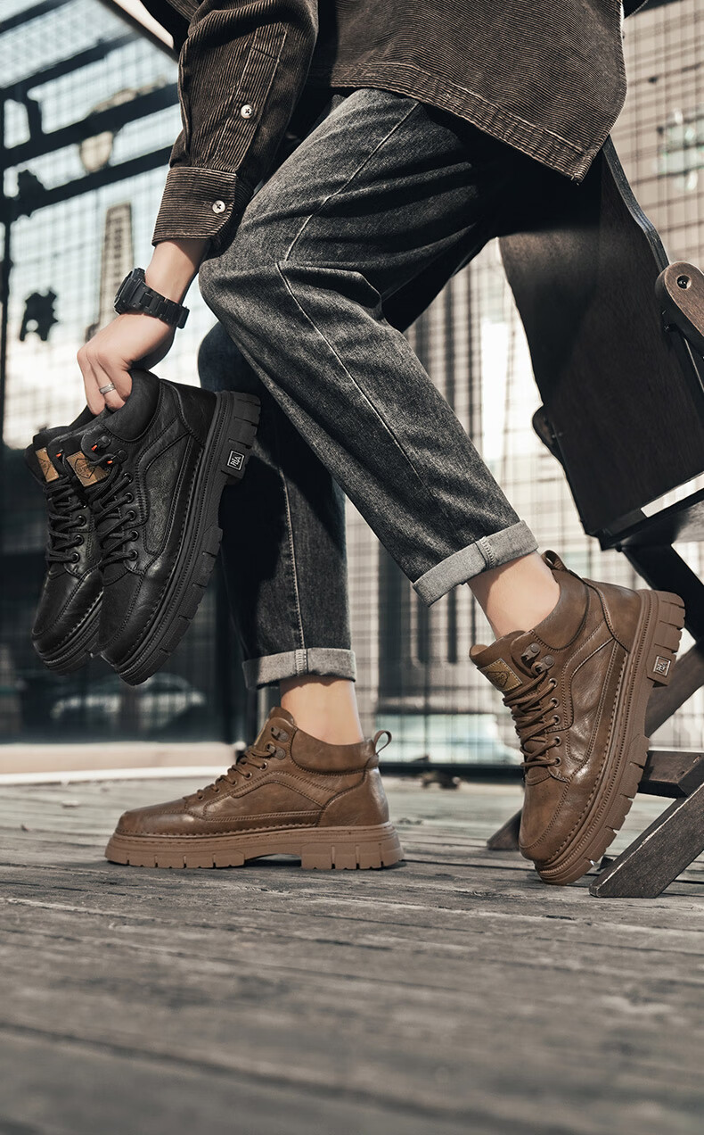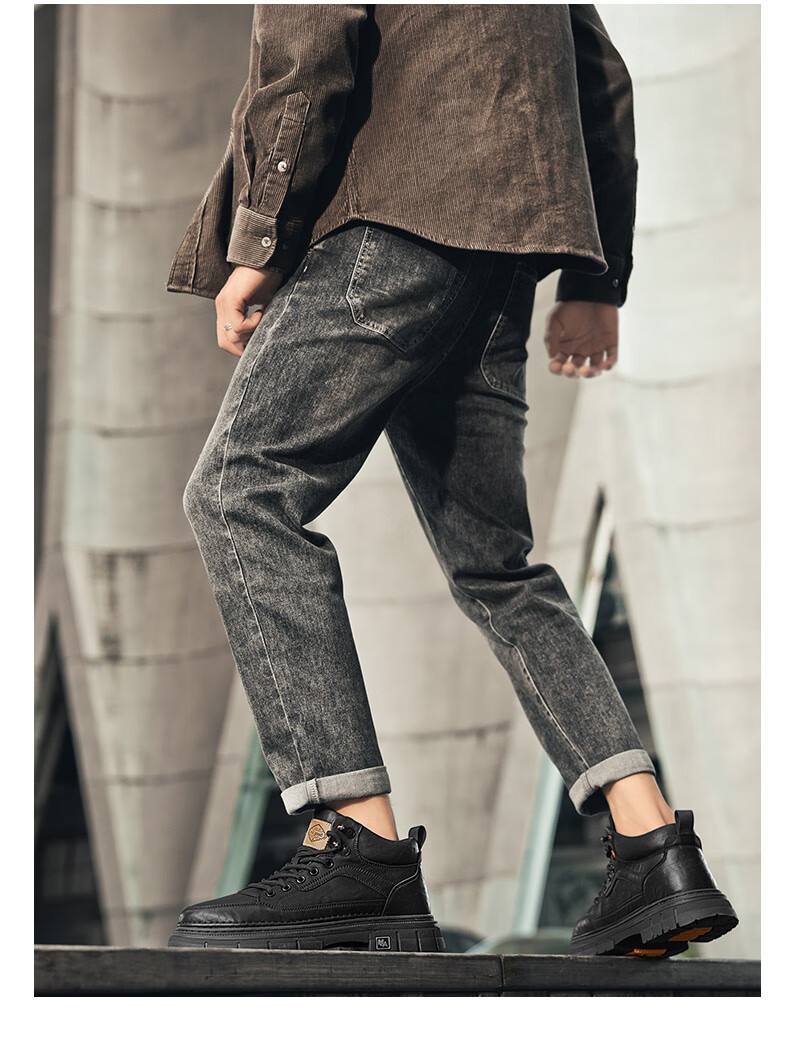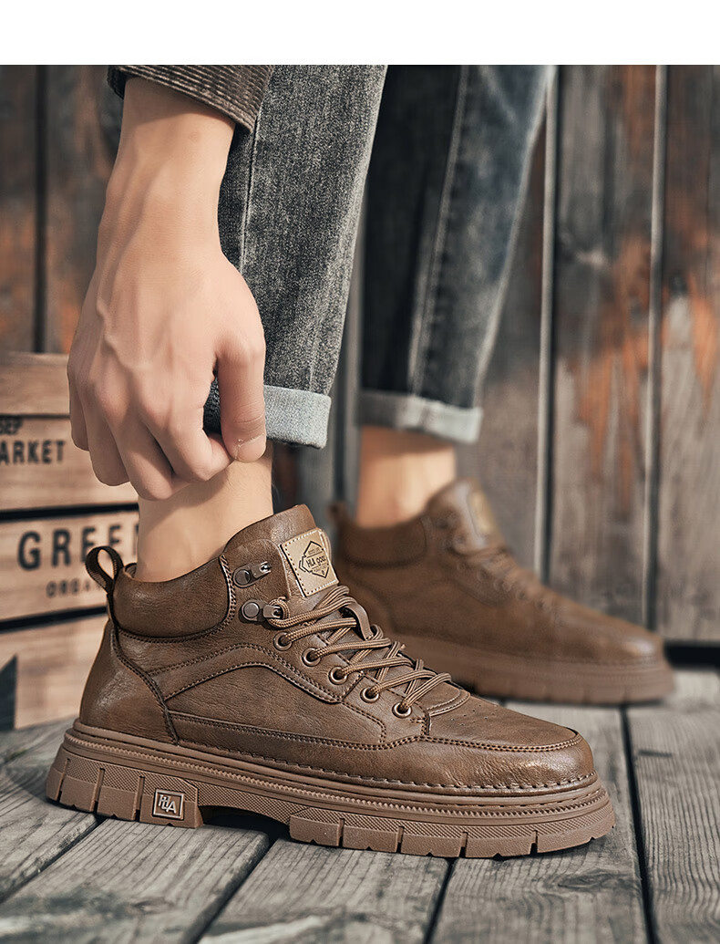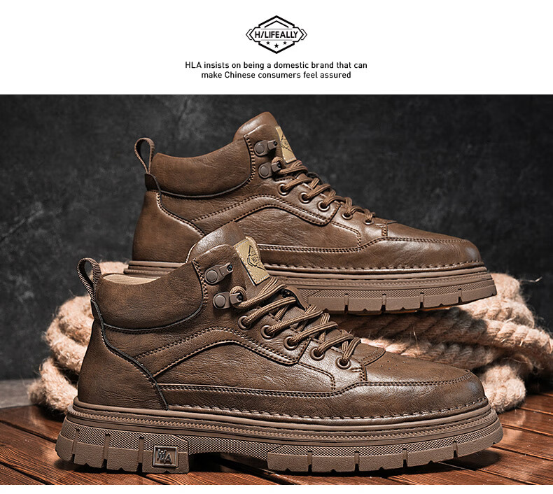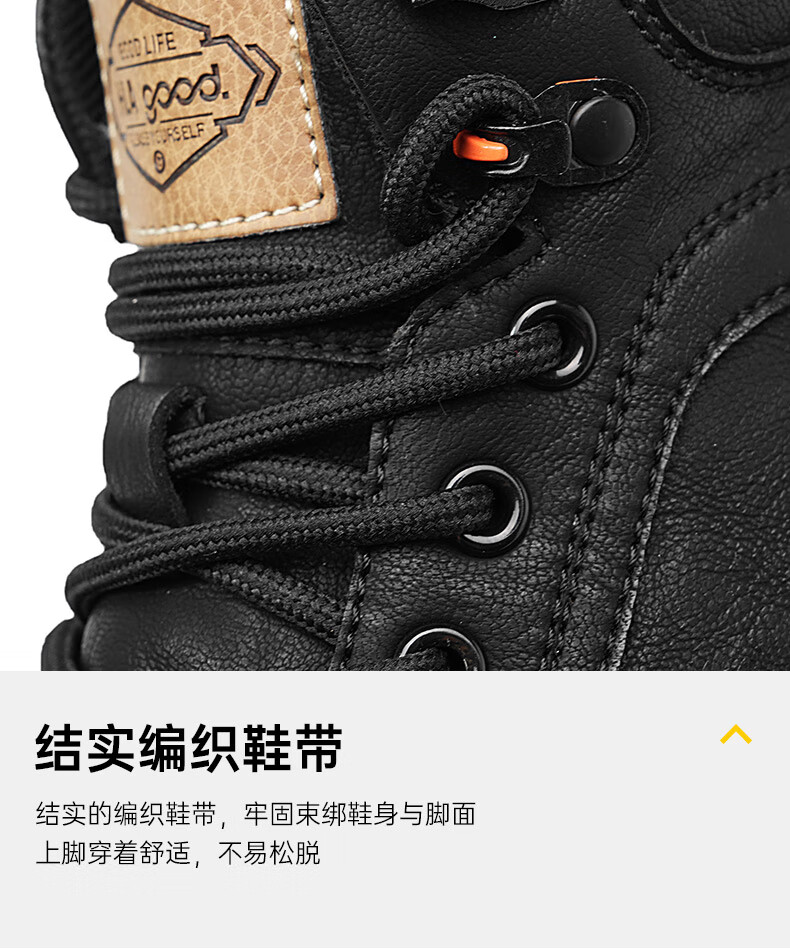 海澜之家马丁靴男鞋子男鞋秋冬2025新款男士马丁靴高帮棉鞋男增高休闲皮靴 黑色【加绒加厚棉鞋男436】 43