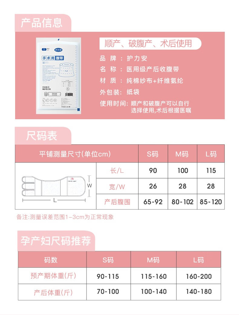 护力安术后收腹带产后束腹带医用切口疝术后固定绑腹带中老年人手术专用腹部腰带孕产妇刨腹顺产两用绷带 医用术后收腹带-白色 L