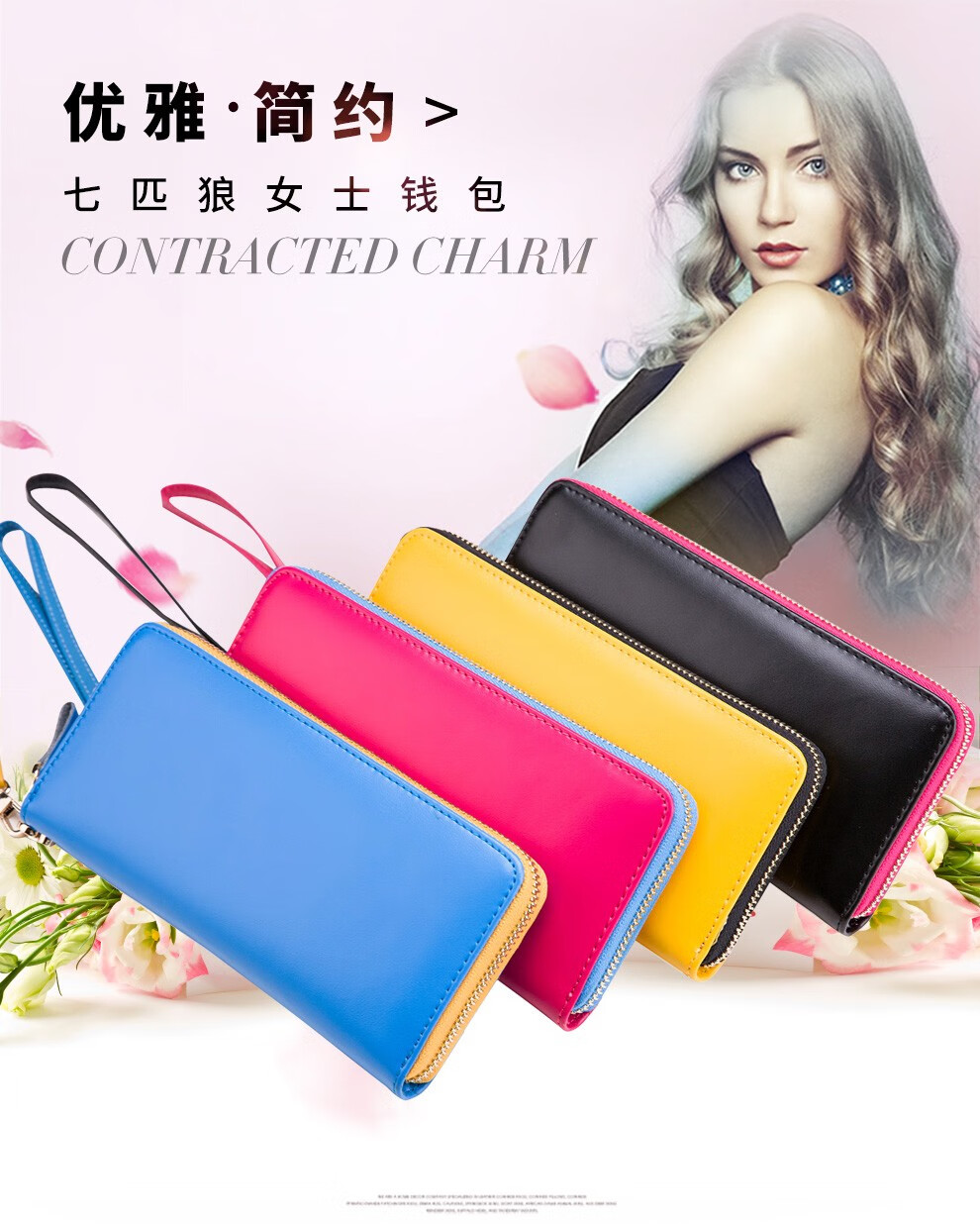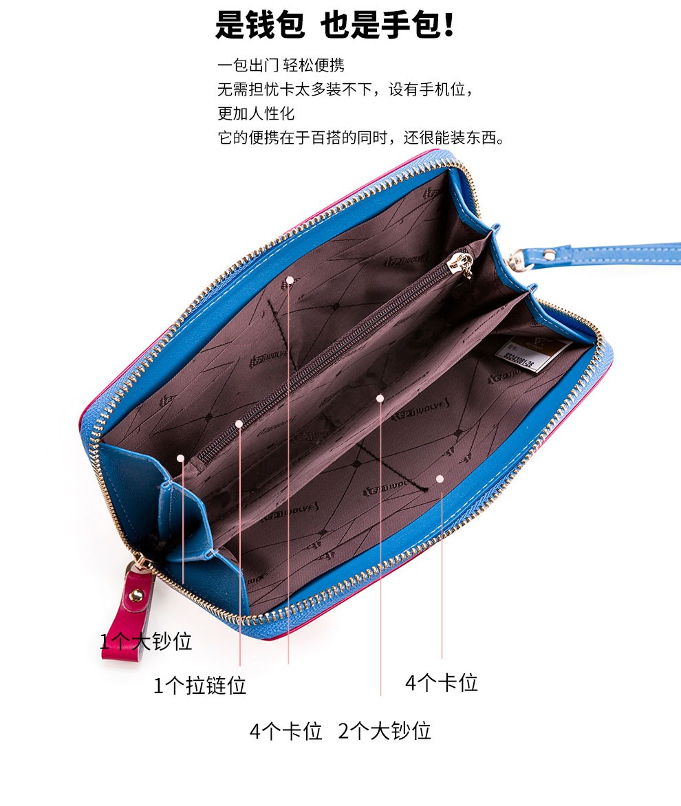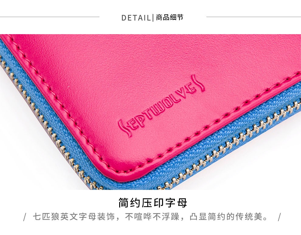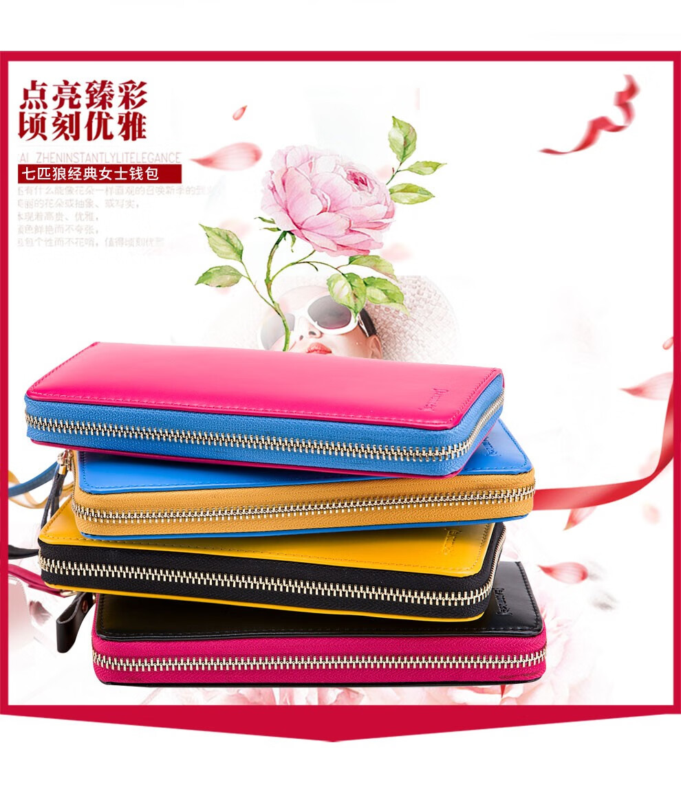七匹狼女士长钱包真皮票夹头层牛皮竖款钱夹生日礼物送女朋友送老婆妈妈 款式三蓝色带拉链