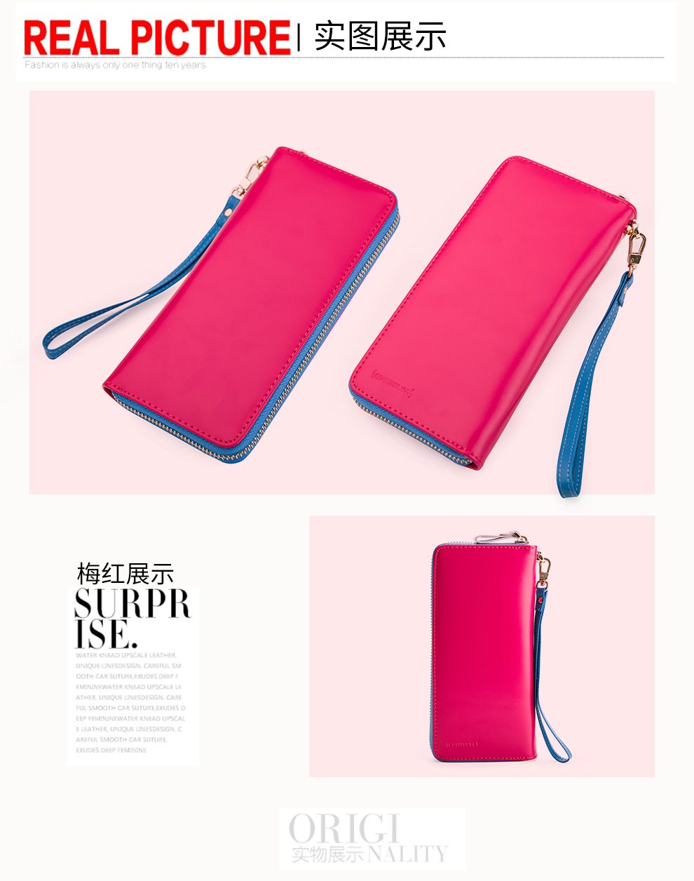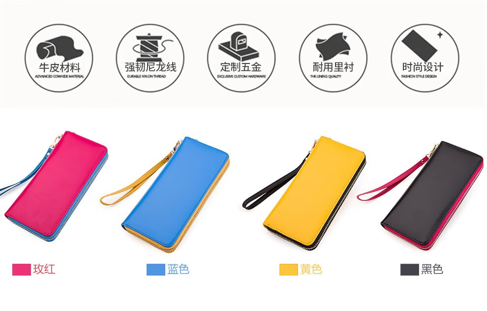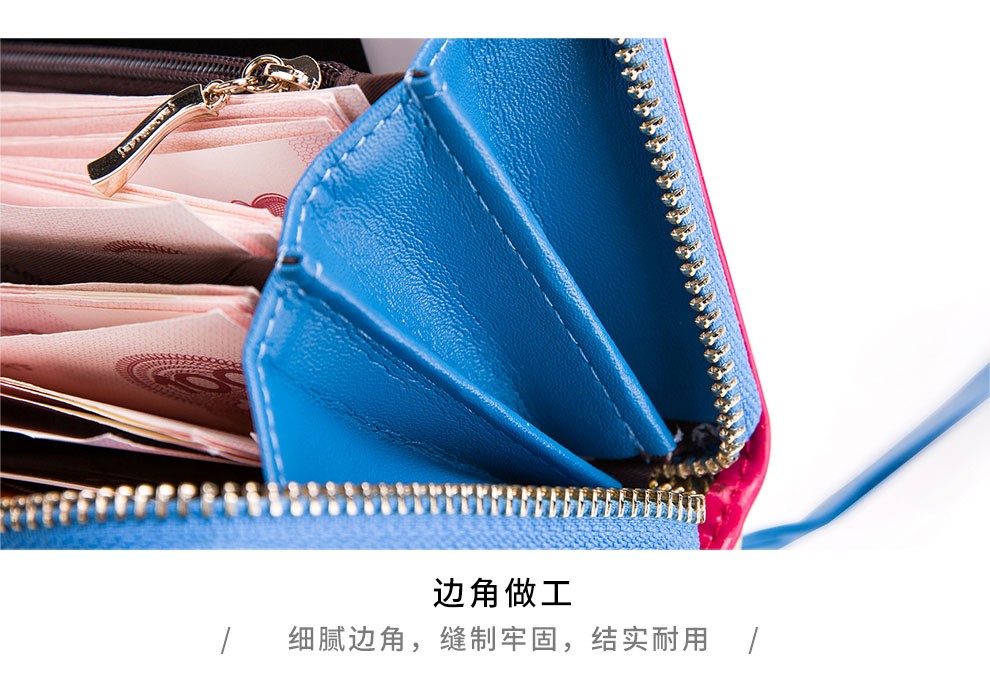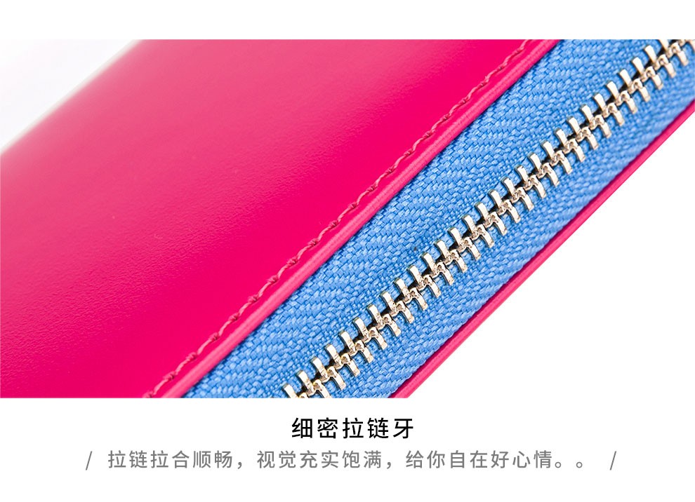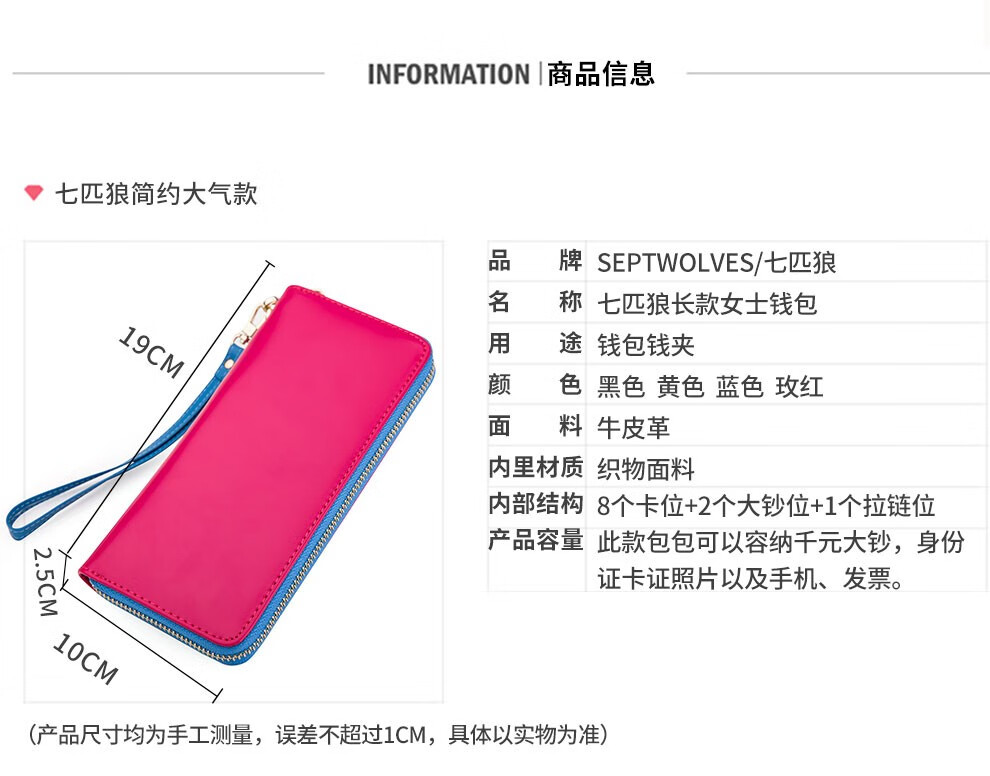 七匹狼女士长钱包真皮票夹头层牛皮竖款钱夹生日礼物送女朋友送老婆妈妈 款式三蓝色带拉链