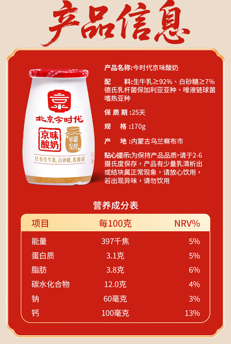 今时代【新品上市】低温酸奶老北京风味原味发酵乳儿童代餐整箱 170克京味酸奶*12瓶