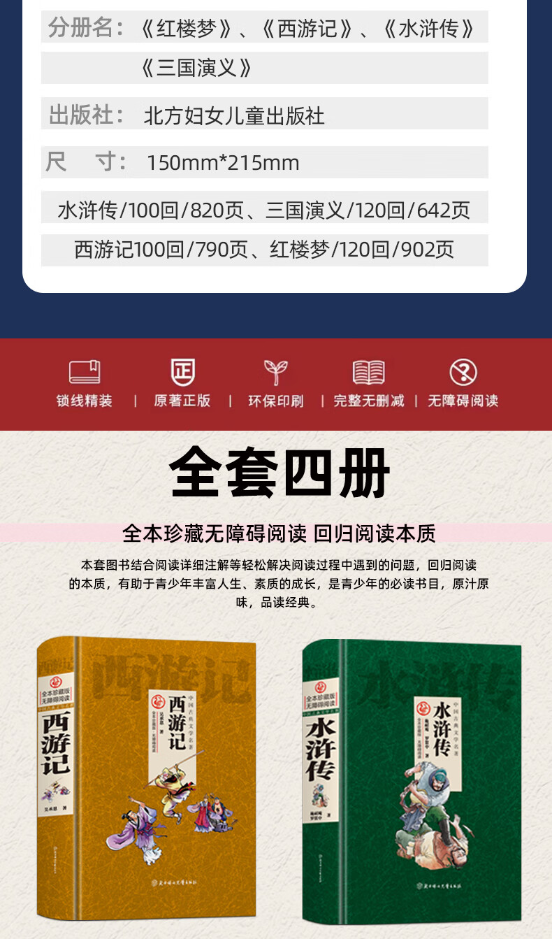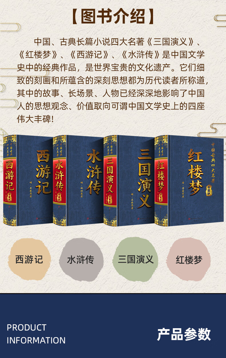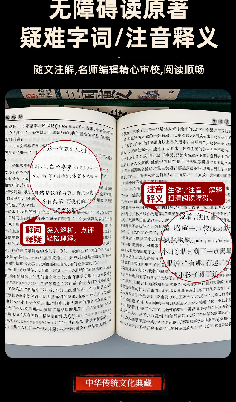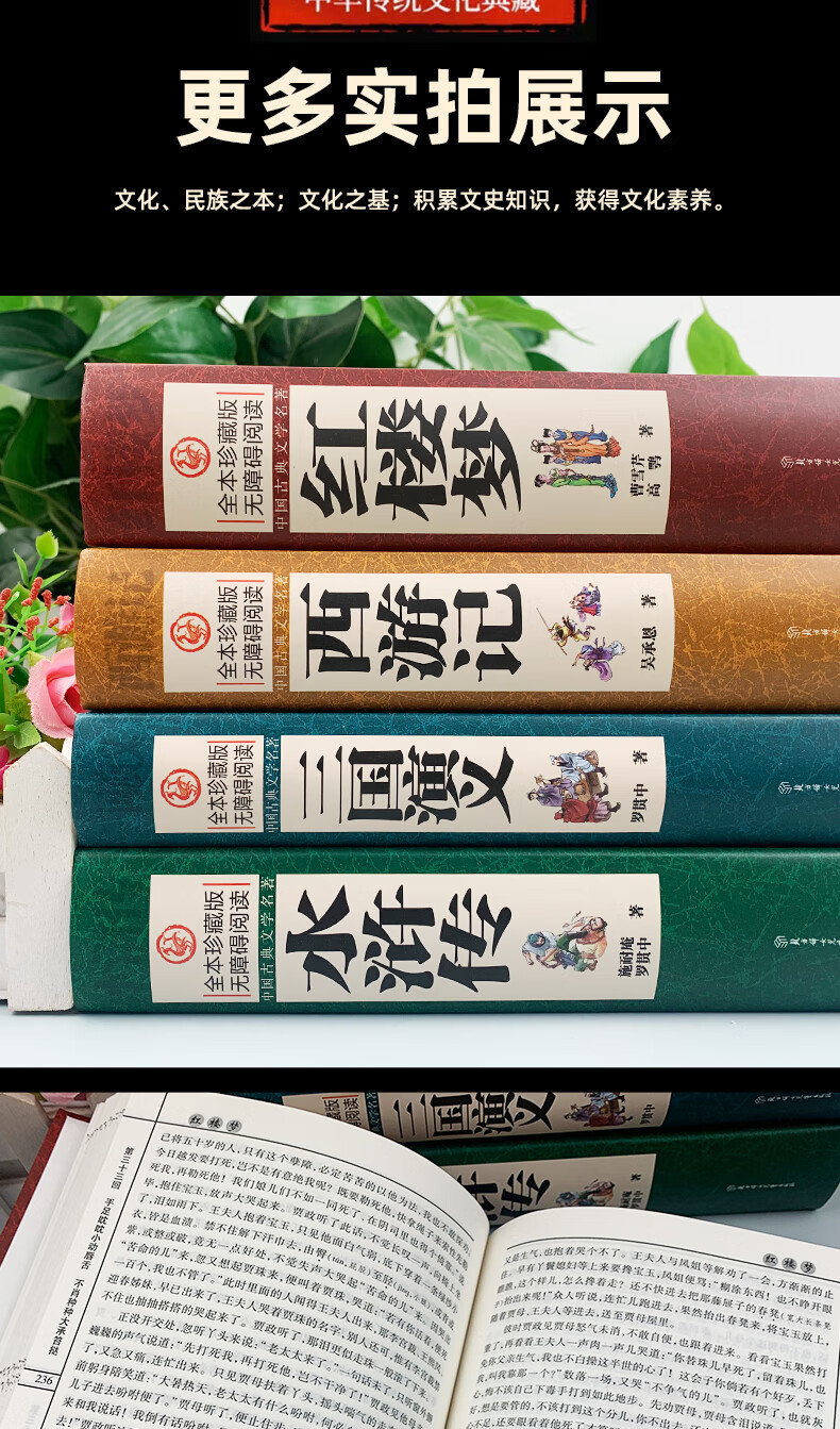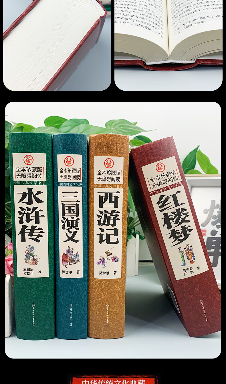 【精装】四大名著原著全套4册珍藏无障碍阅读版 红楼梦高中生版水浒传三国演义西游记青少年版原著无删减中国古典文学名著 四大名著精装典藏版