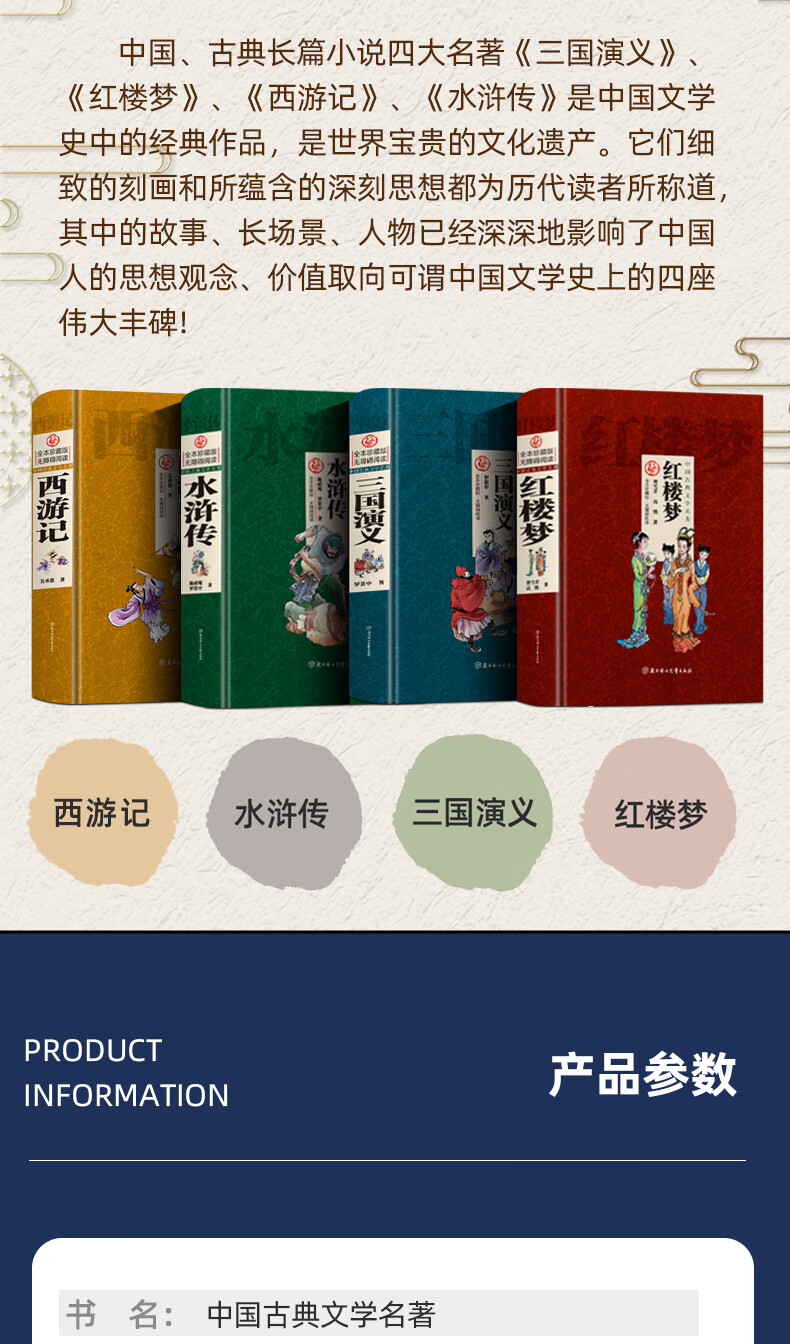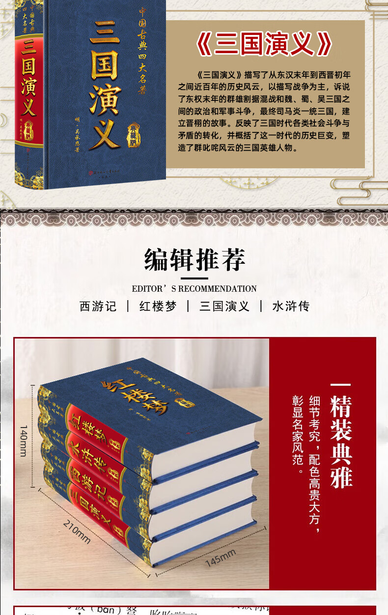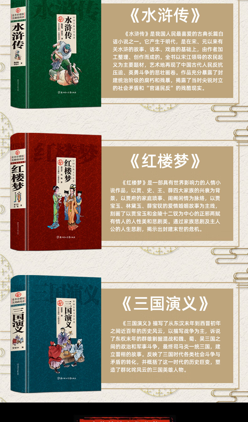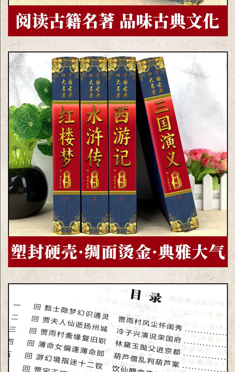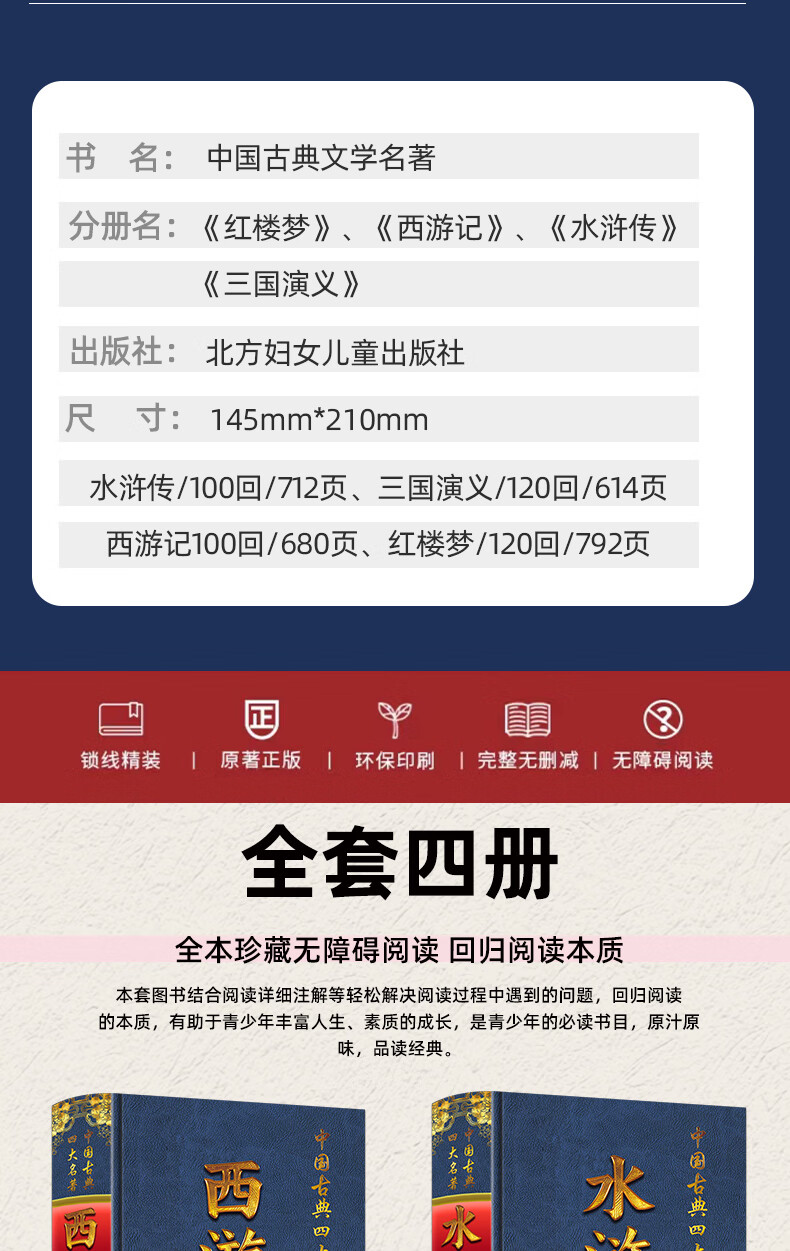 【精装】四大名著原著全套4册珍藏无障碍阅读版 红楼梦高中生版水浒传三国演义西游记青少年版原著无删减中国古典文学名著 四大名著精装典藏版