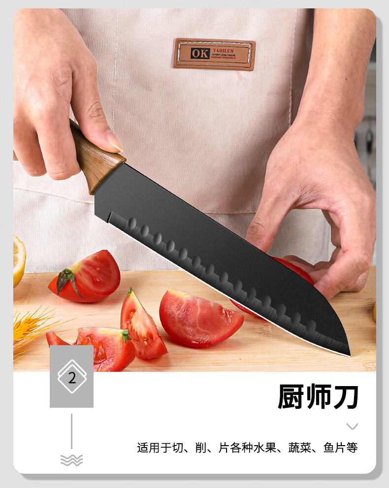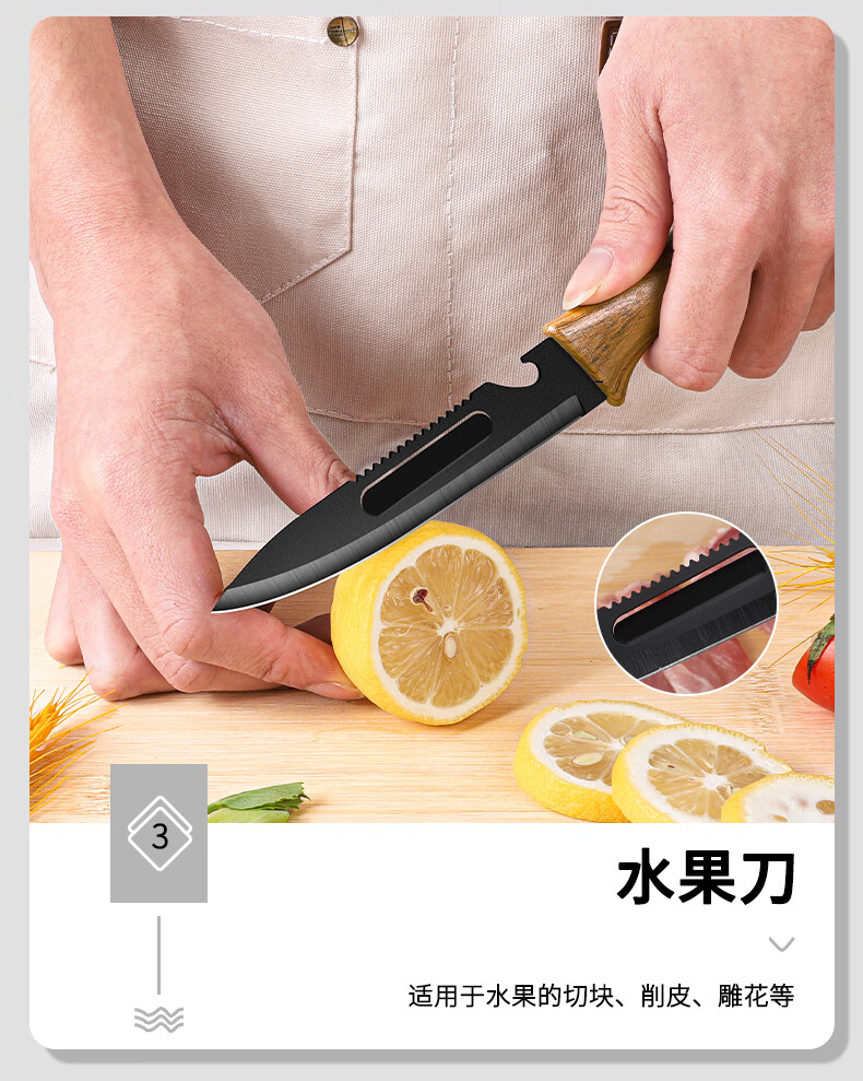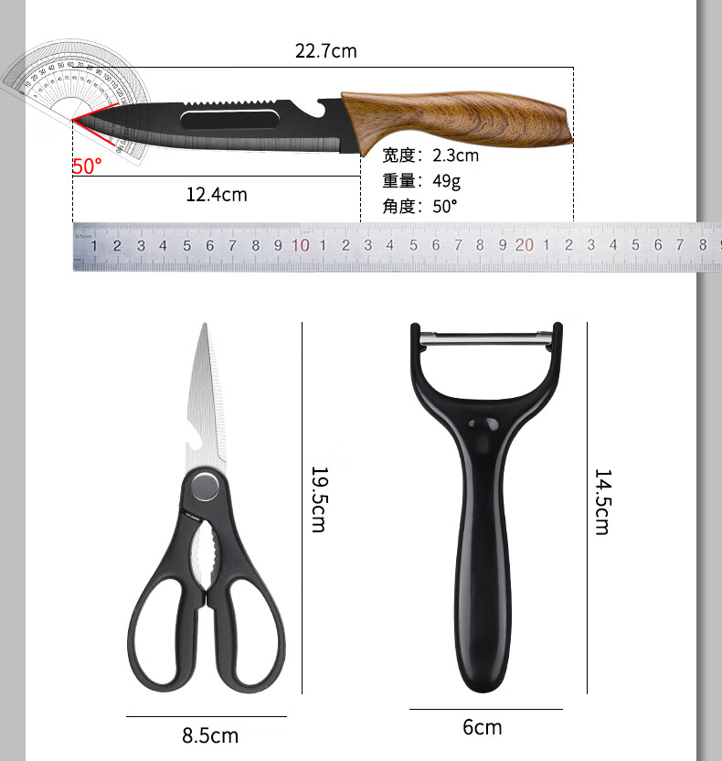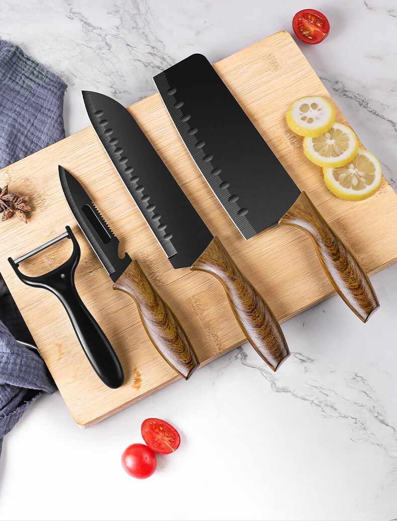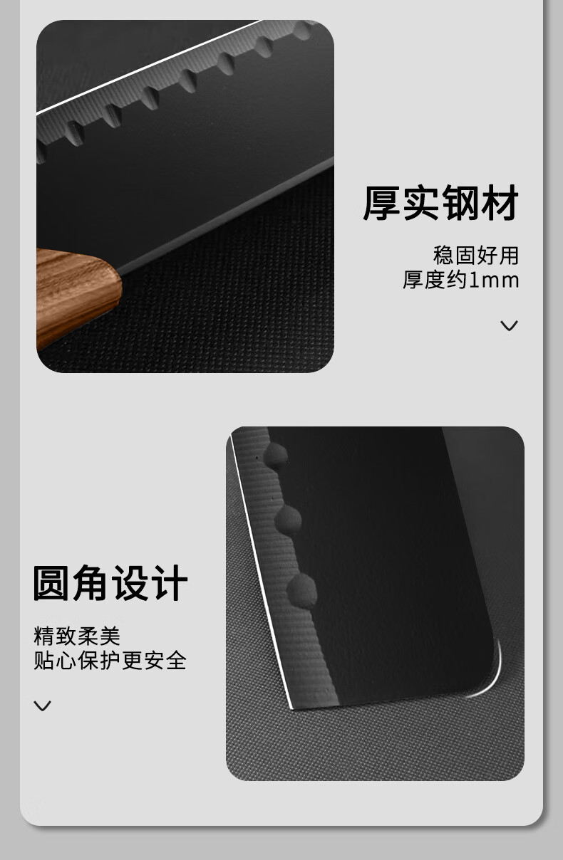 切菜刀菜板二合一家用厨房刀具案砧板套装全套厨具辅食工具水果刀 斜尾木纹三套装