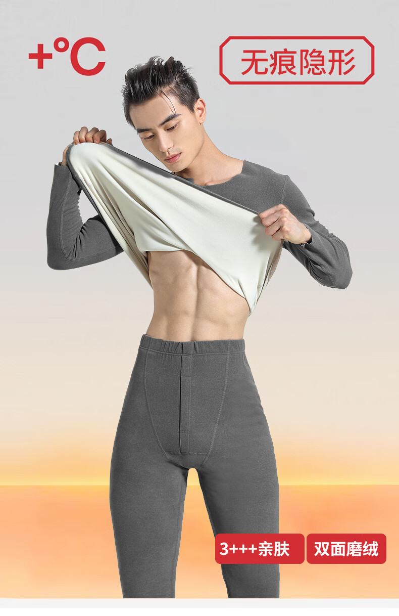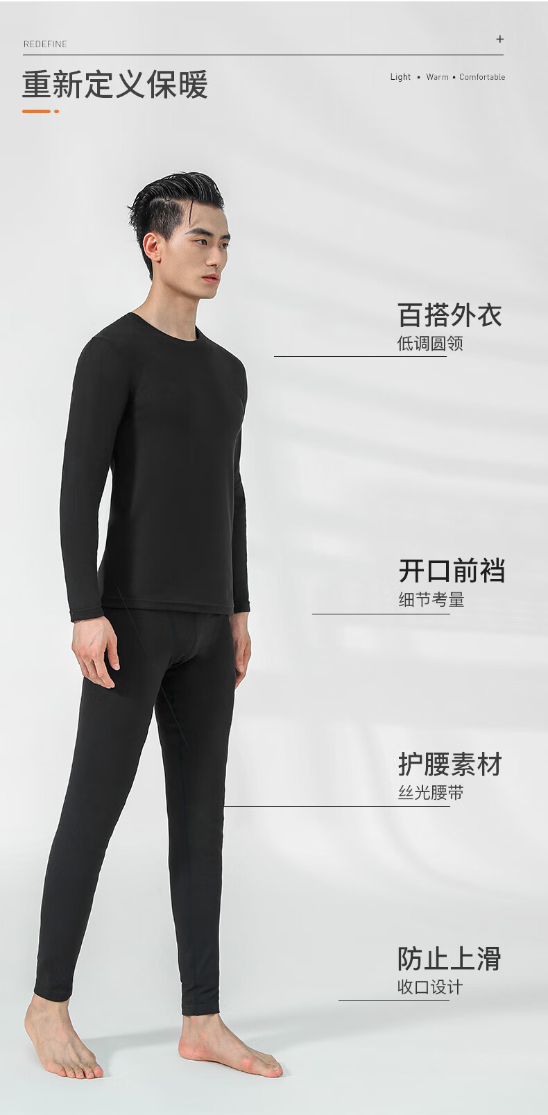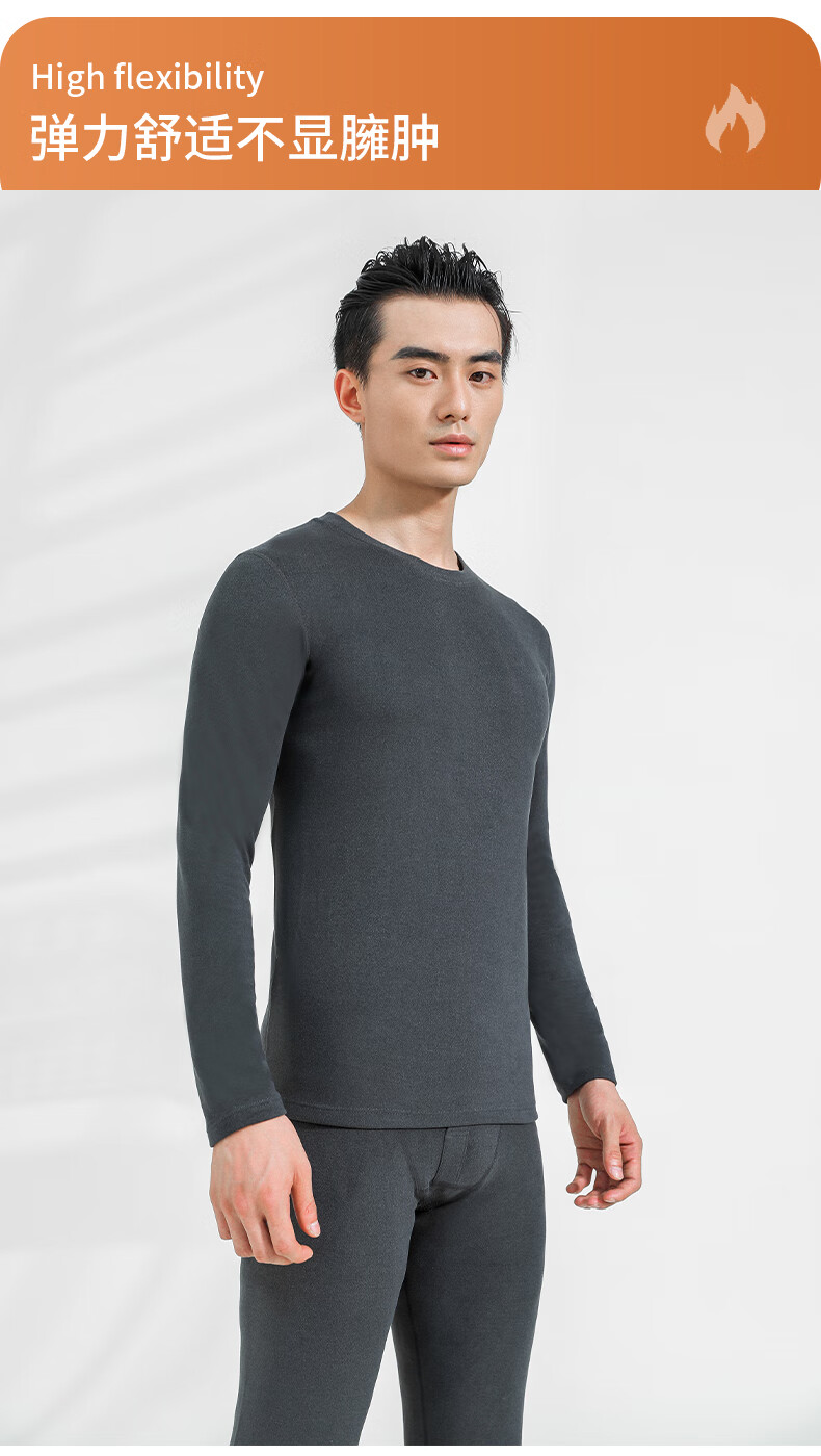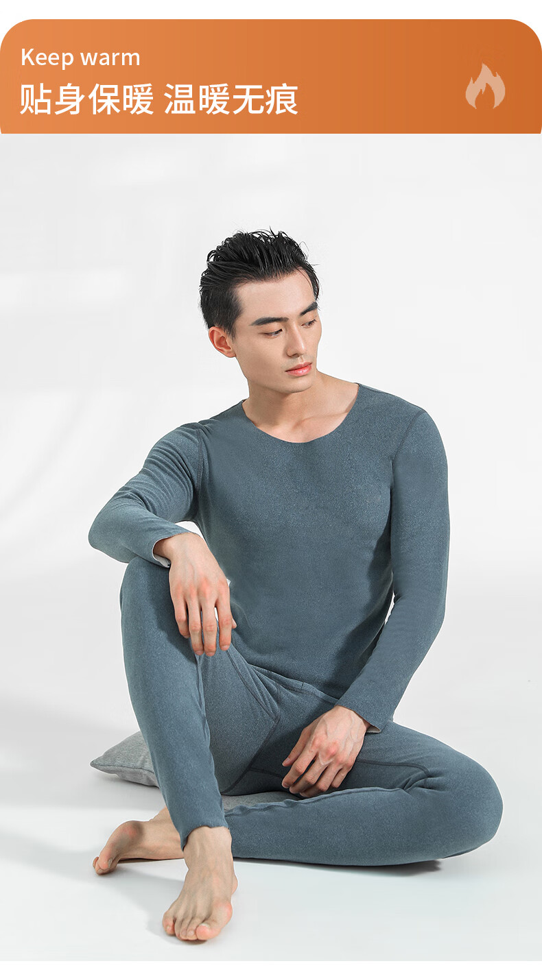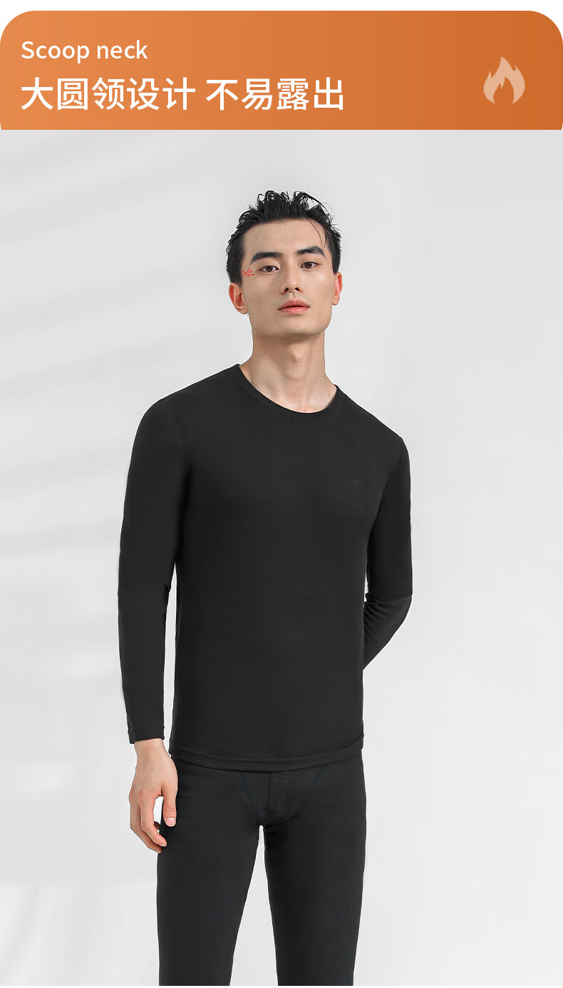 CabraKalani男士保暖内衣男圆领秋衣秋裤套装磨毛加绒加厚基础贴身打底打底衫 A品牌专柜加绒黑色 XL