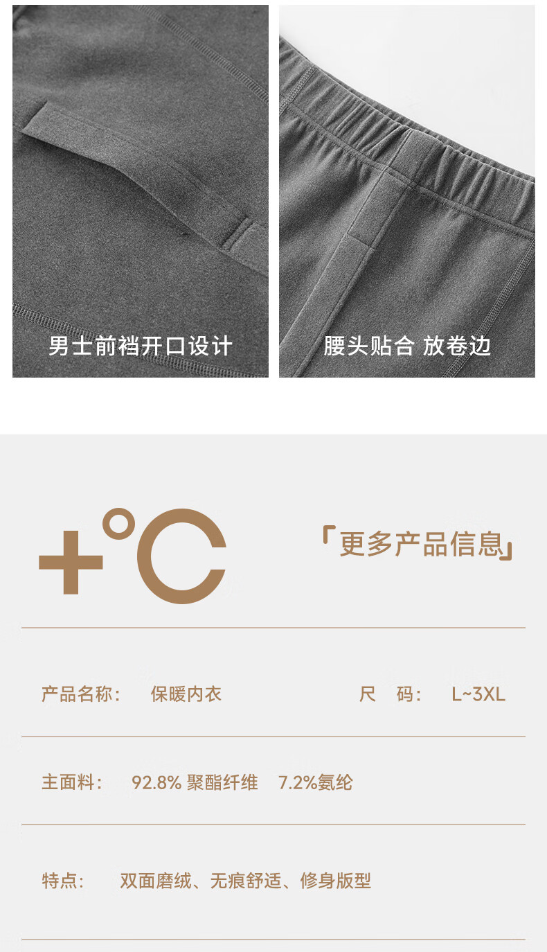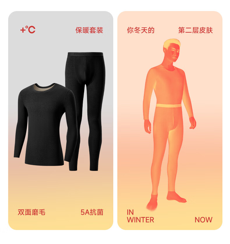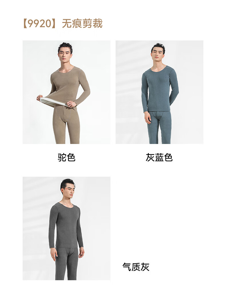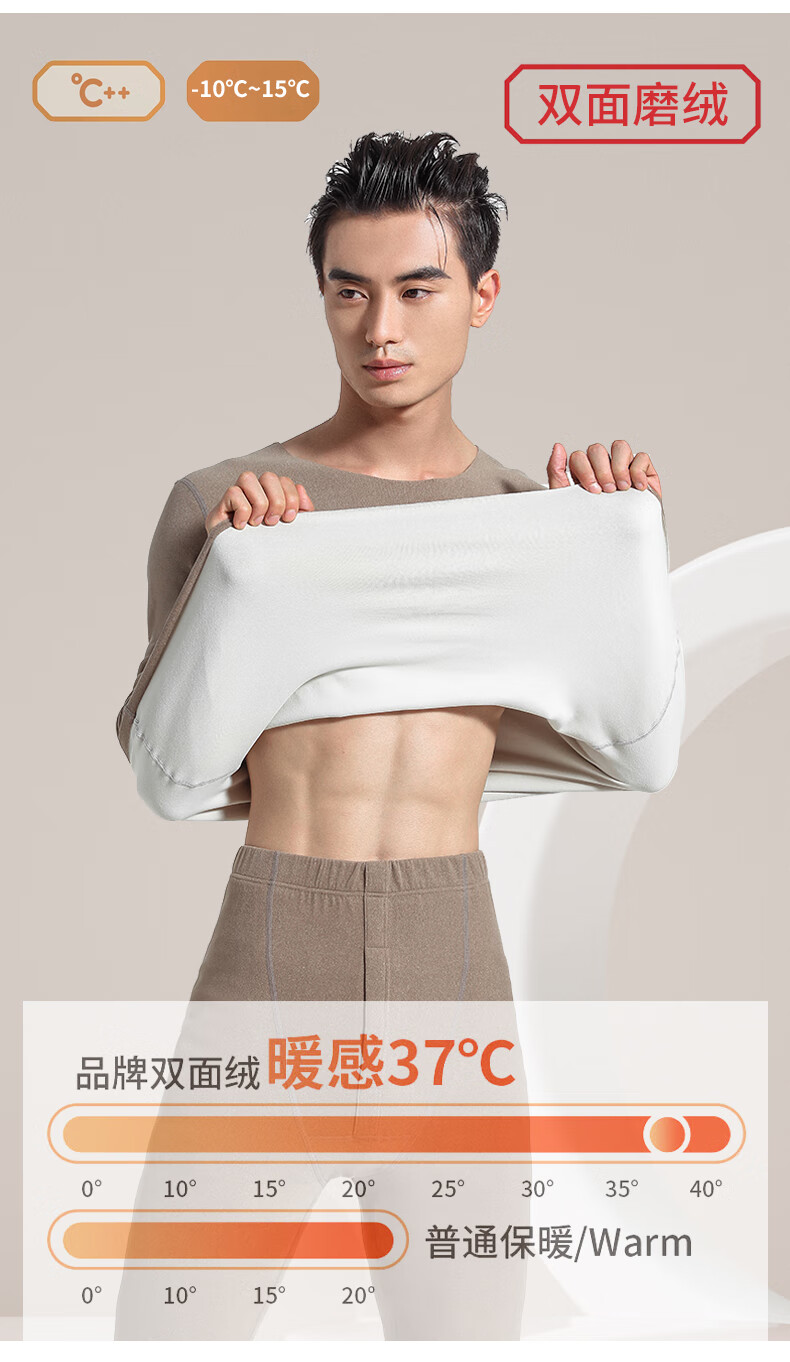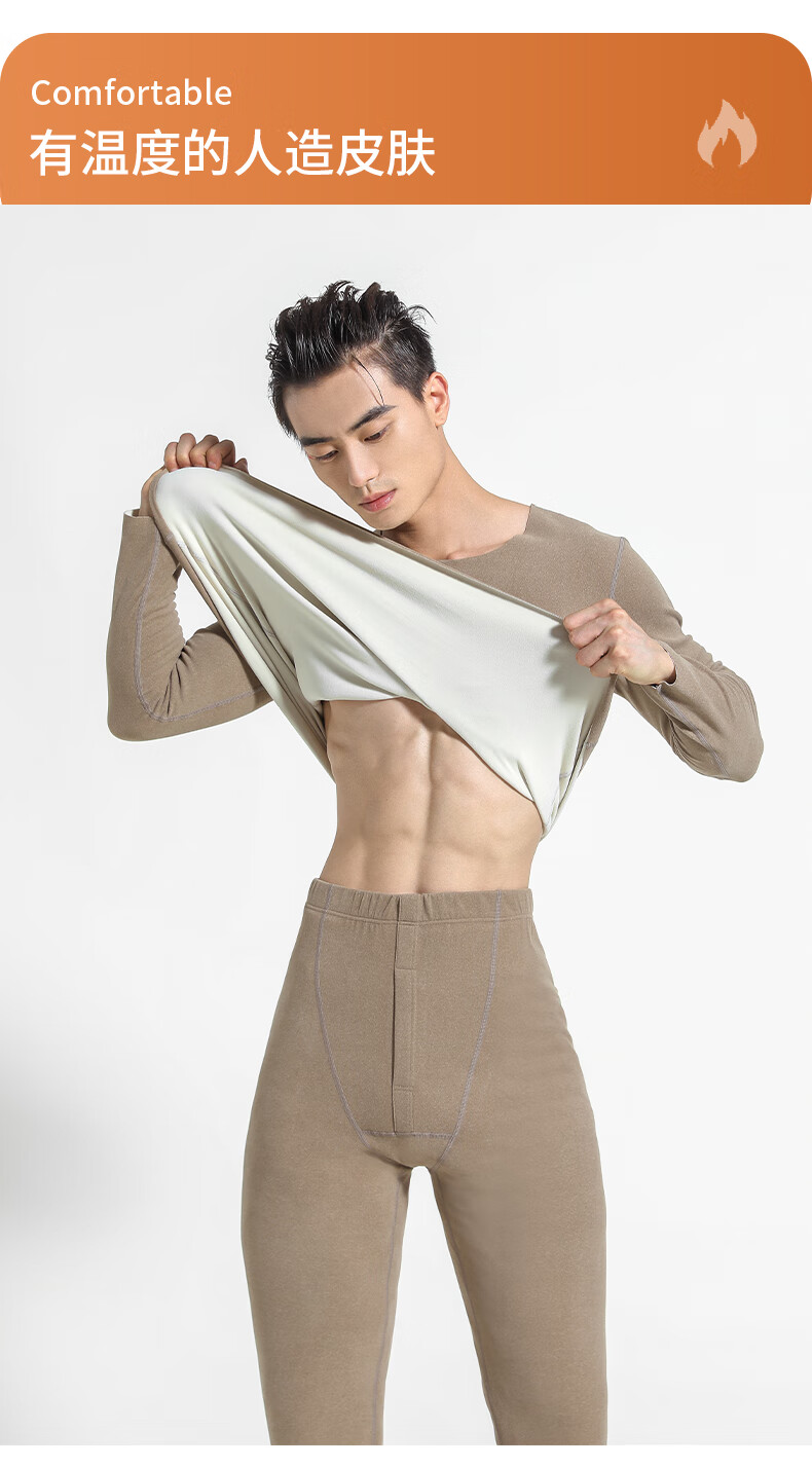 CabraKalani男士保暖内衣男圆领秋衣秋裤套装磨毛加绒加厚基础贴身打底打底衫 A品牌专柜加绒黑色 XL
