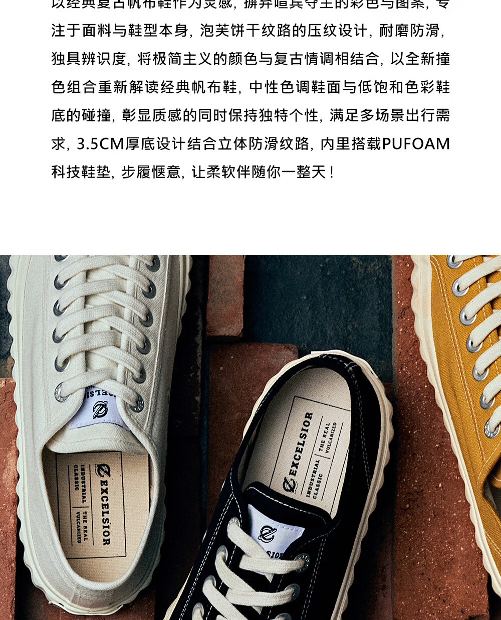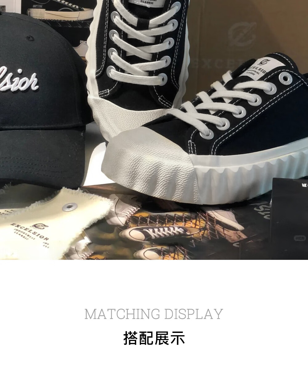 Excelsior饼干鞋官方 泡芙系列运动板鞋黑色休闲鞋厚底帆布鞋女 经典黑 39 (250mm)