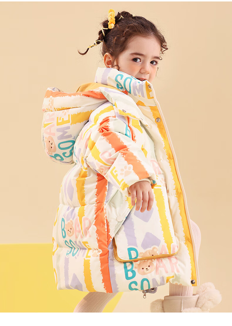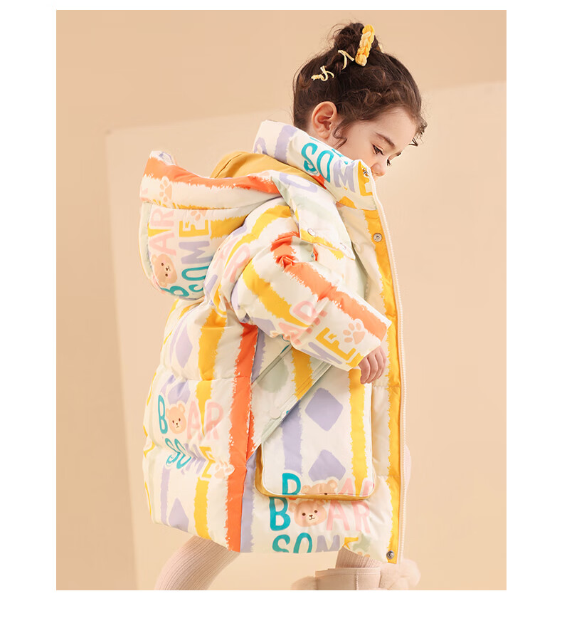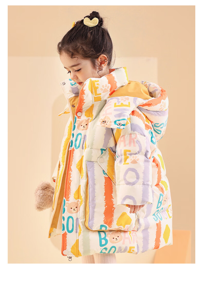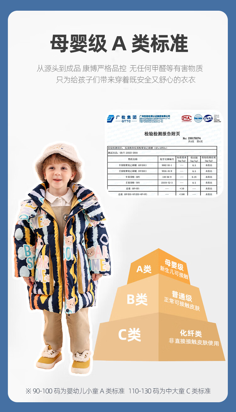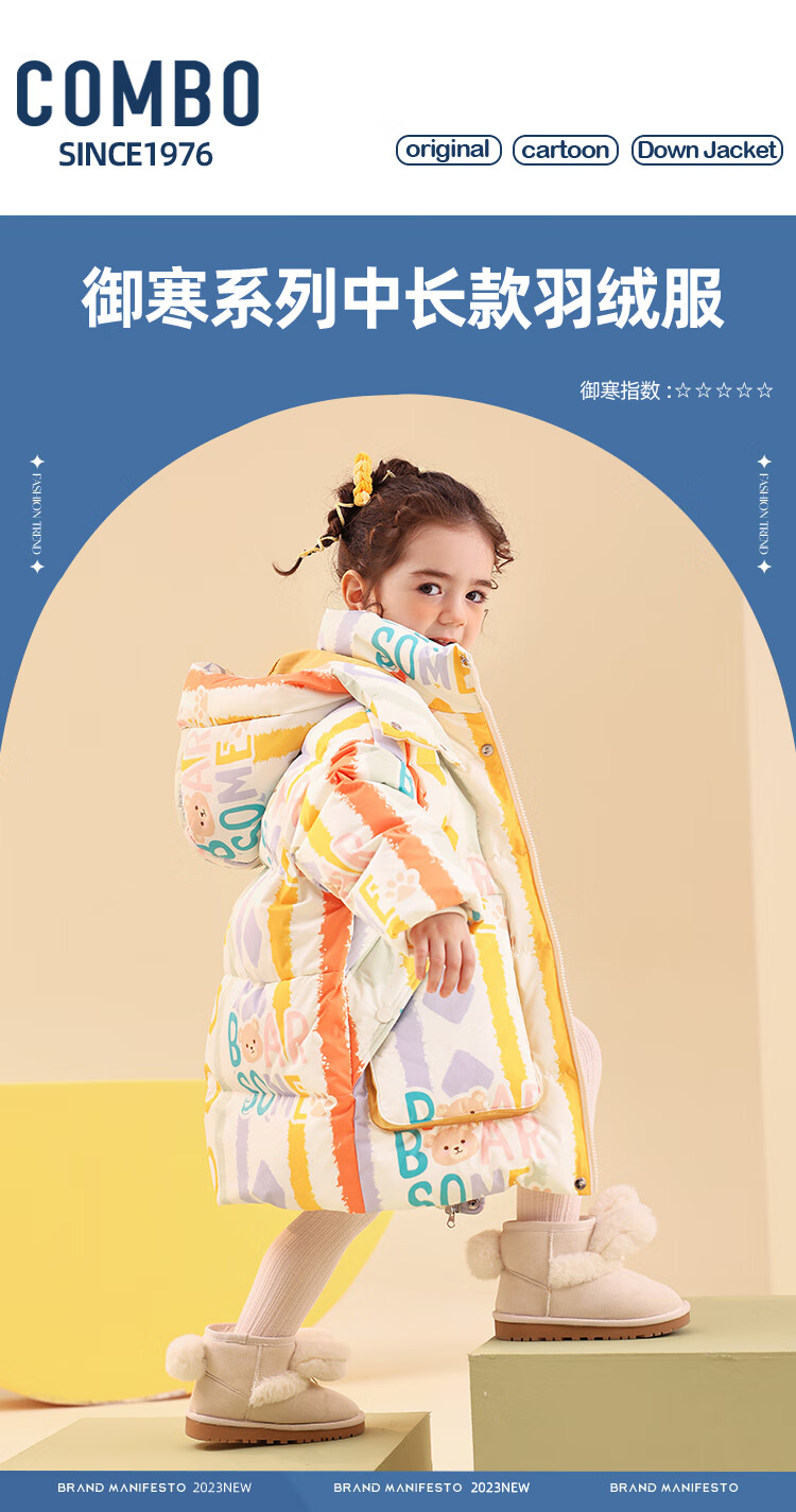 康博儿童小童宝宝女童男童羽绒服冬季中长款加厚2024新款洋气童装外套 米白色 120