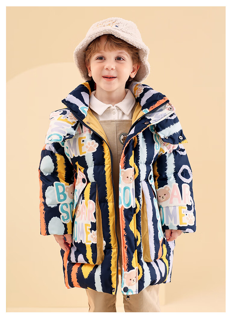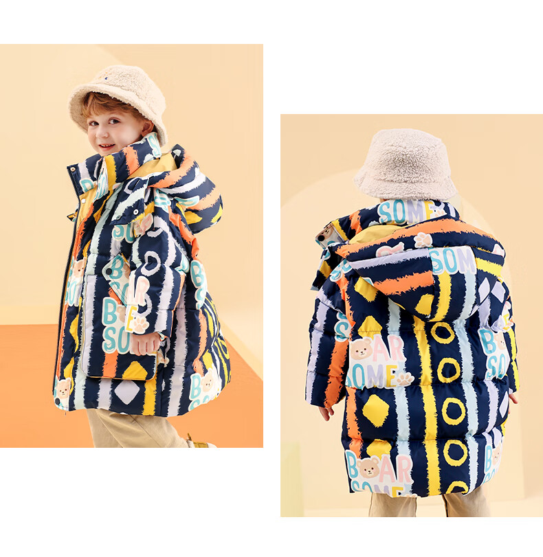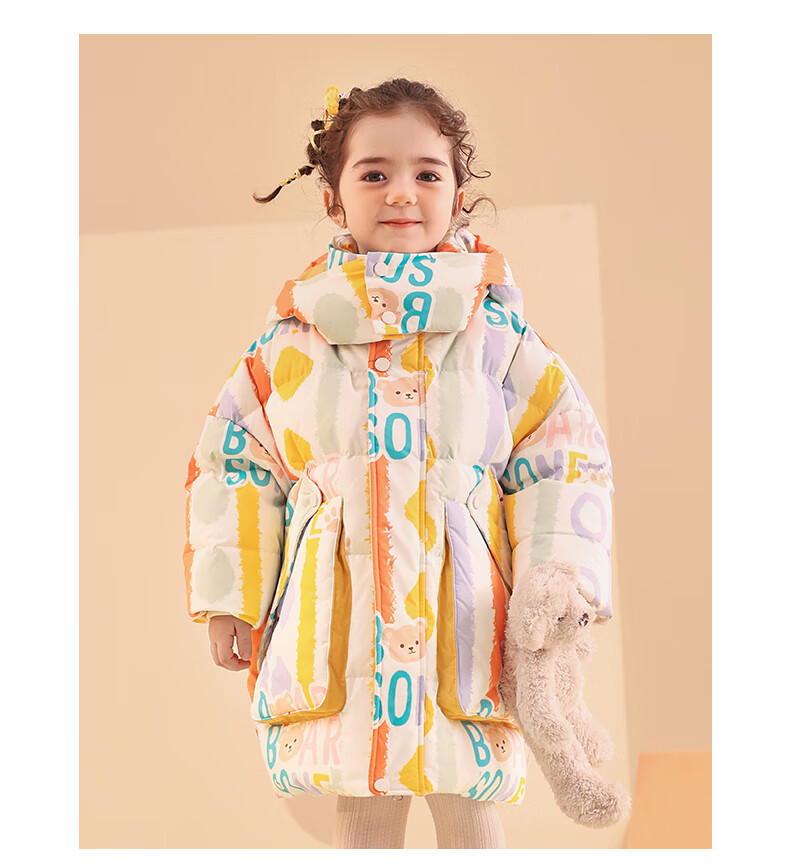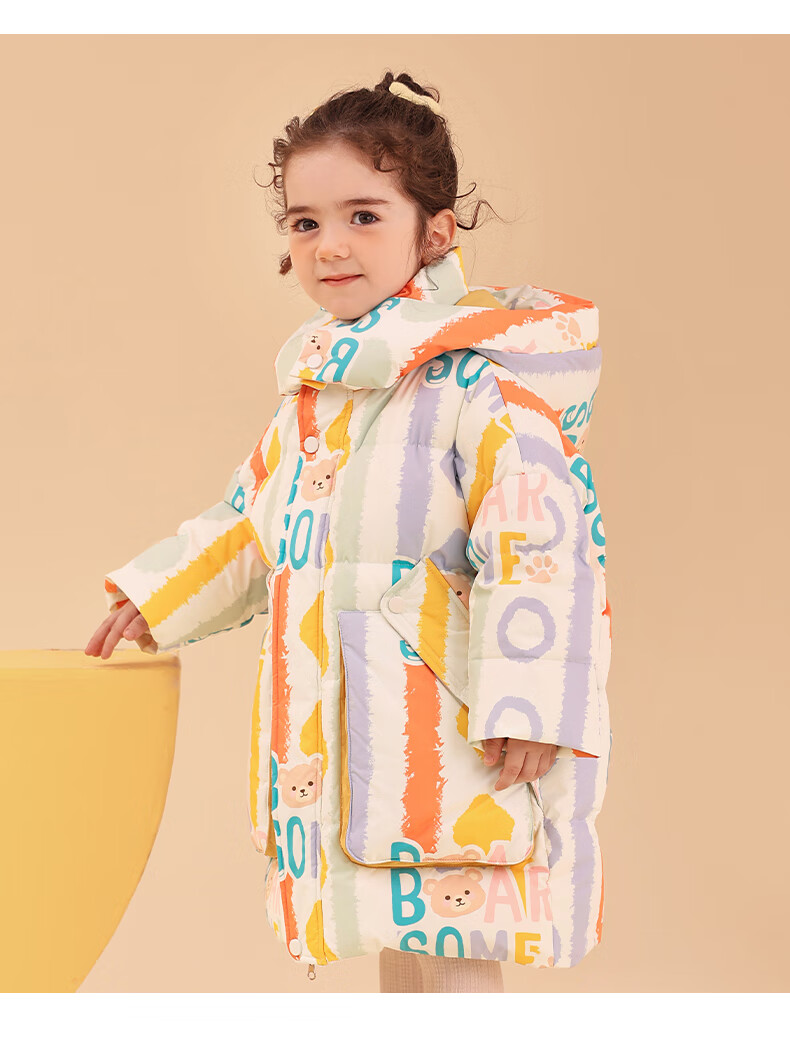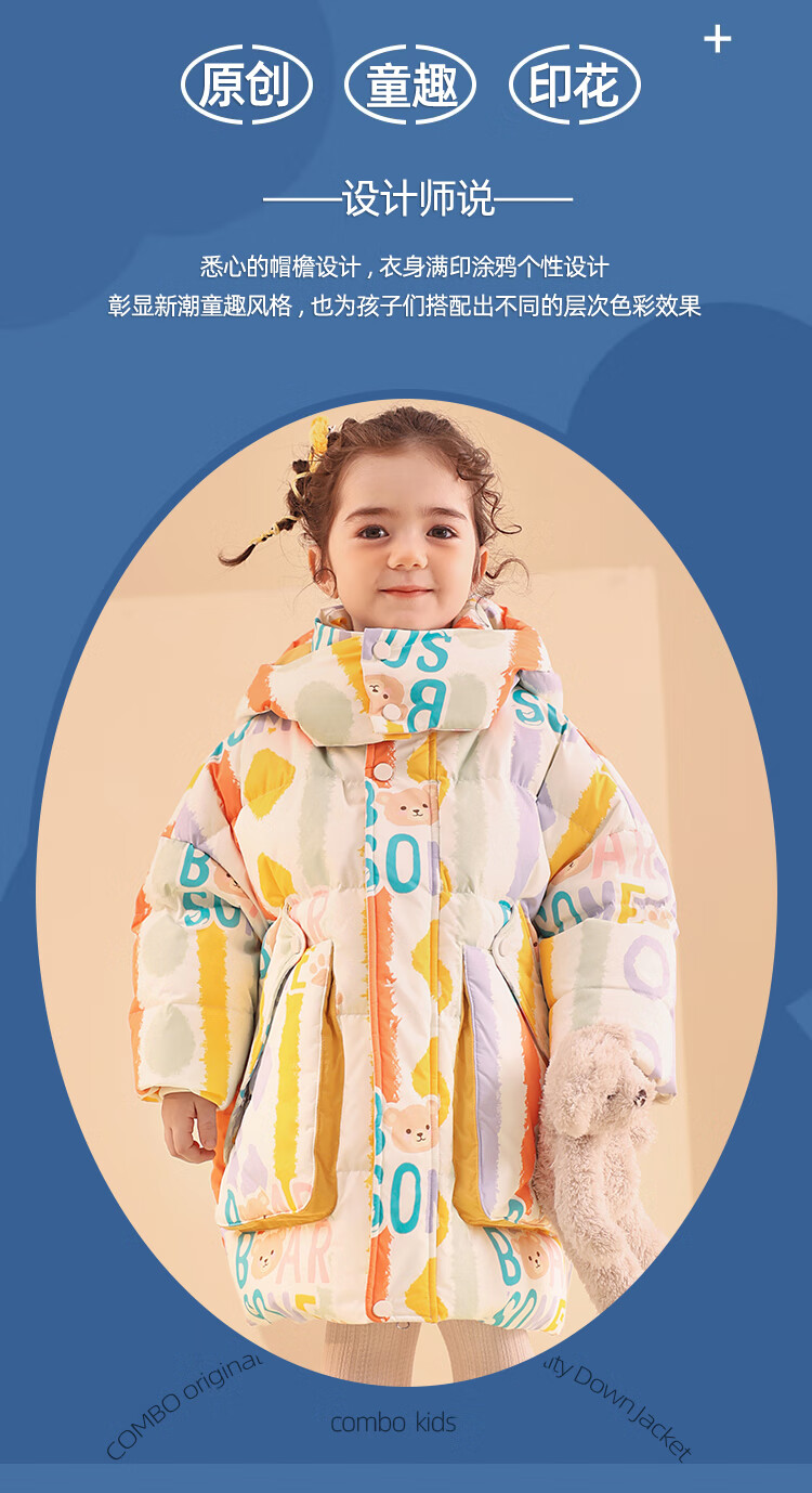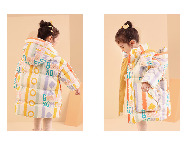 康博儿童小童宝宝女童男童羽绒服冬季中长款加厚2024新款洋气童装外套 米白色 120