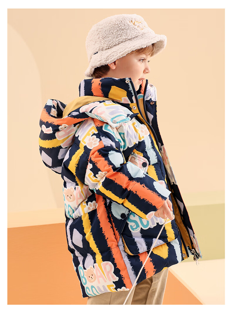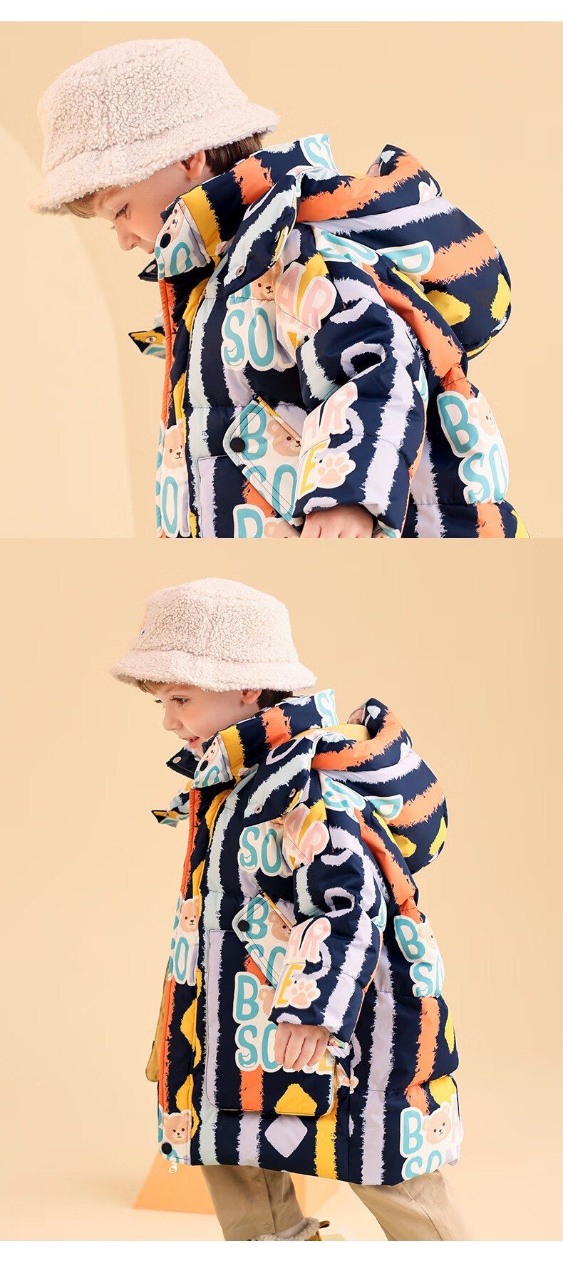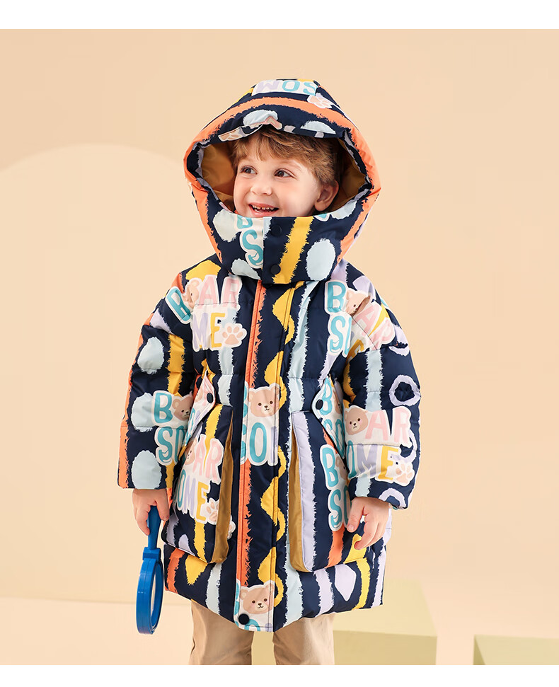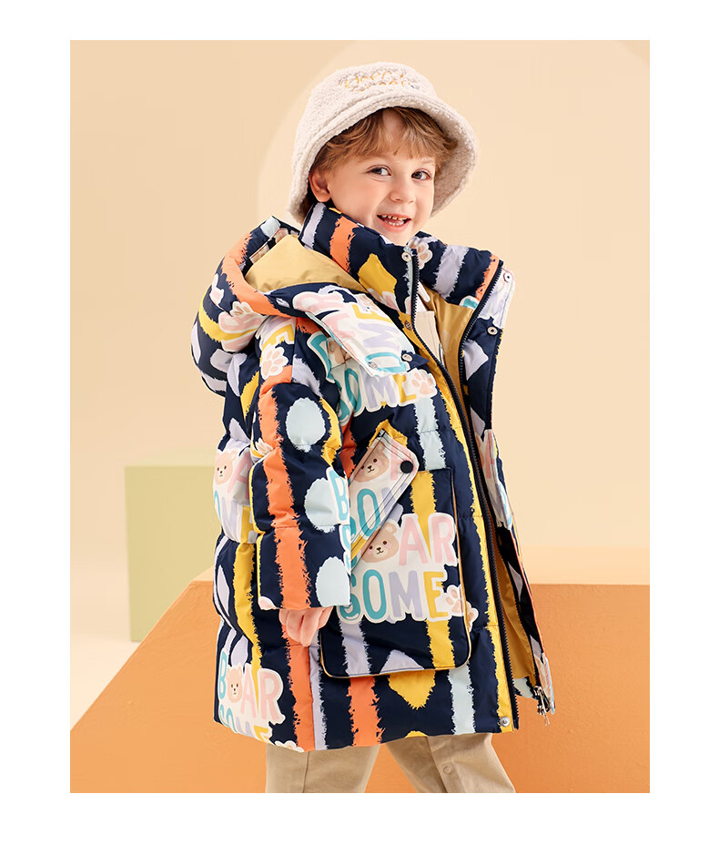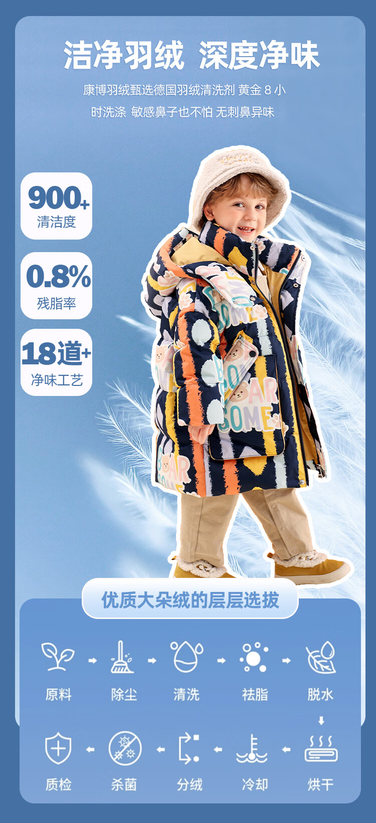 康博儿童小童宝宝女童男童羽绒服冬季中长款加厚2024新款洋气童装外套 米白色 120