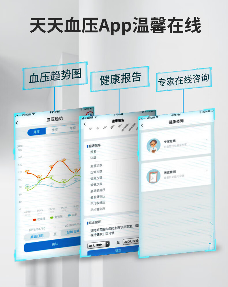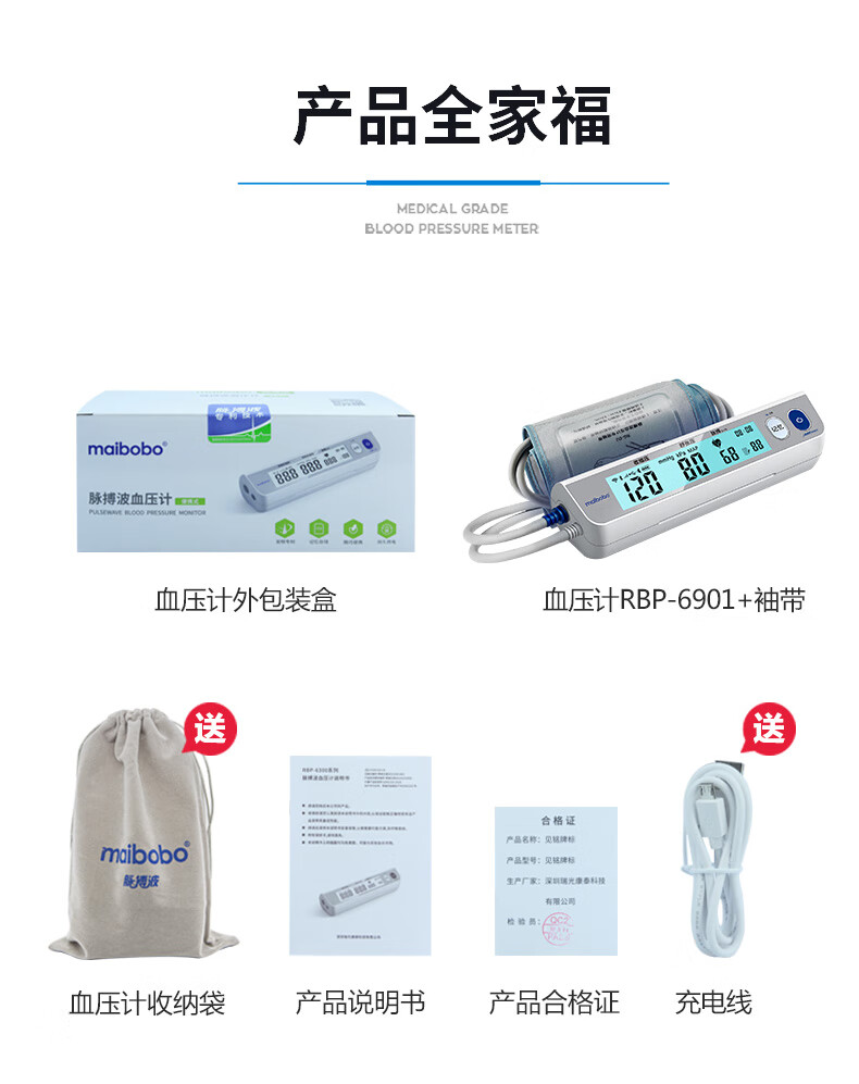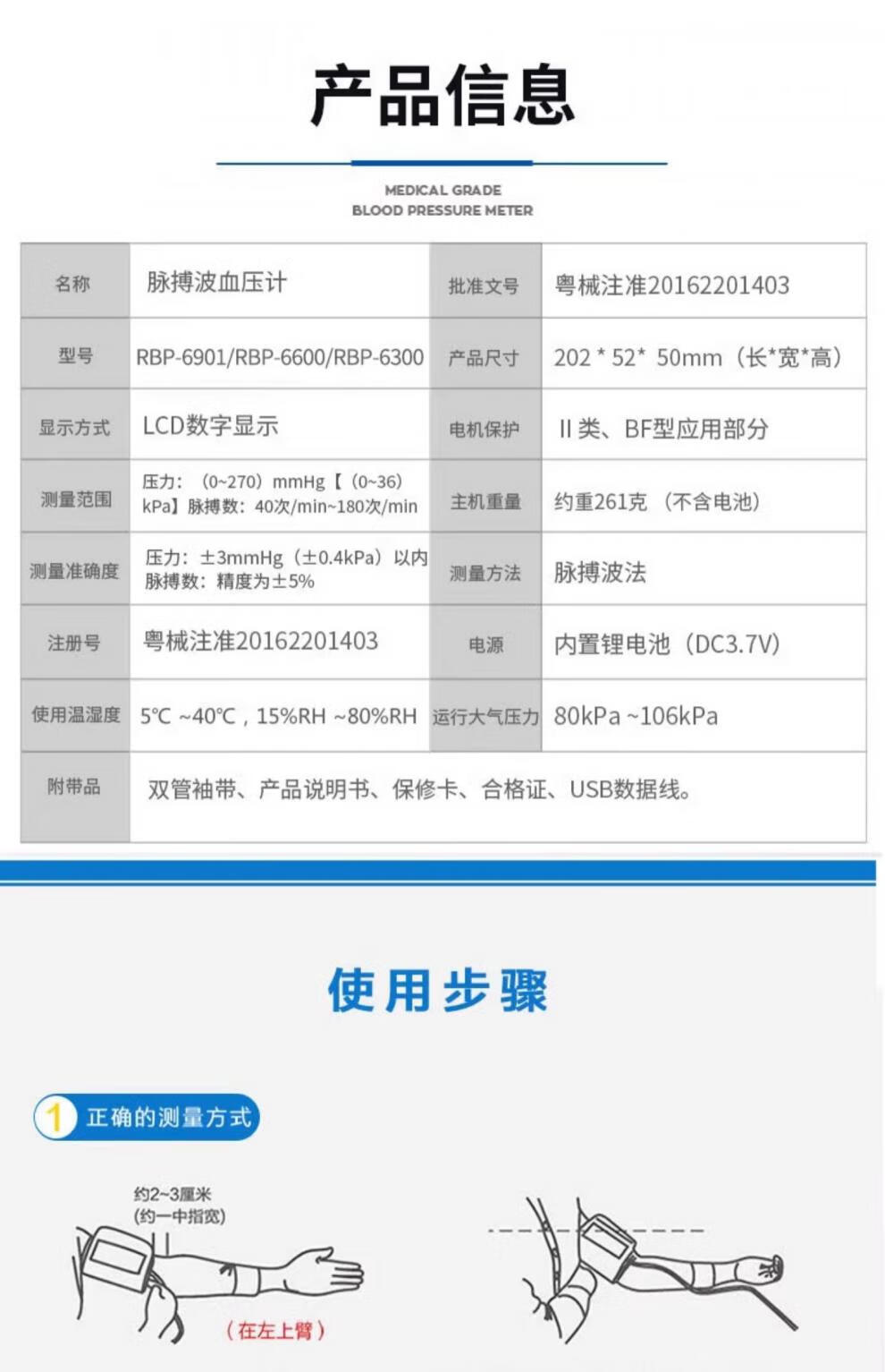 瑞光康泰日本原装进口欧姆脉搏波血压测量仪家用高精准电子测压仪医用血压 RBP-6901标准款 语音播报+背光显示+充电款