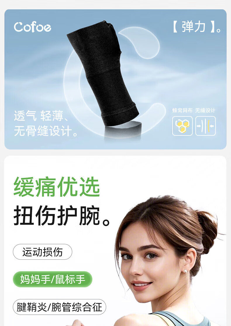 可孚医用级腱鞘炎护腕套手腕疼痛缓解扭伤男女士鼠标手专用妈妈手 压力护腕1对装(肤色) S