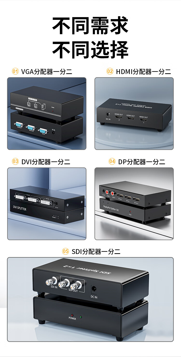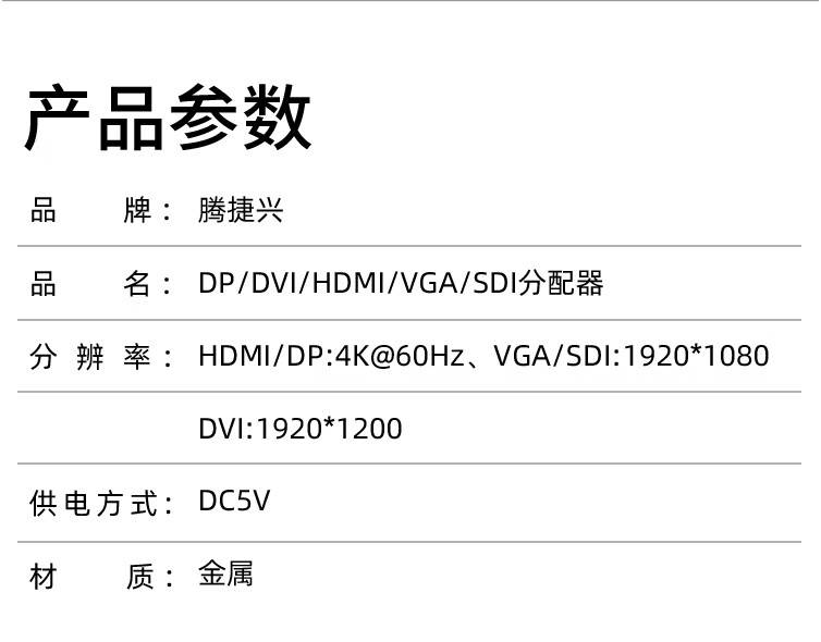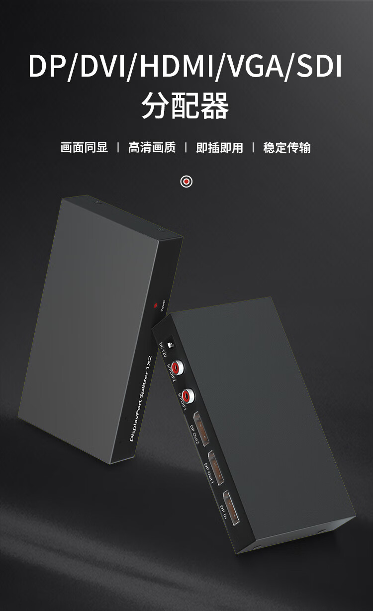 腾捷兴 HDMI/VGA/DVI/DP/SDI分配器一分二/一分四/一分八/1分16 一进多出高清视频画面同显分屏共享器 DP分配器 一分四