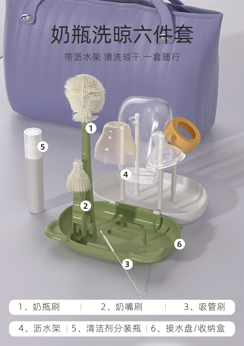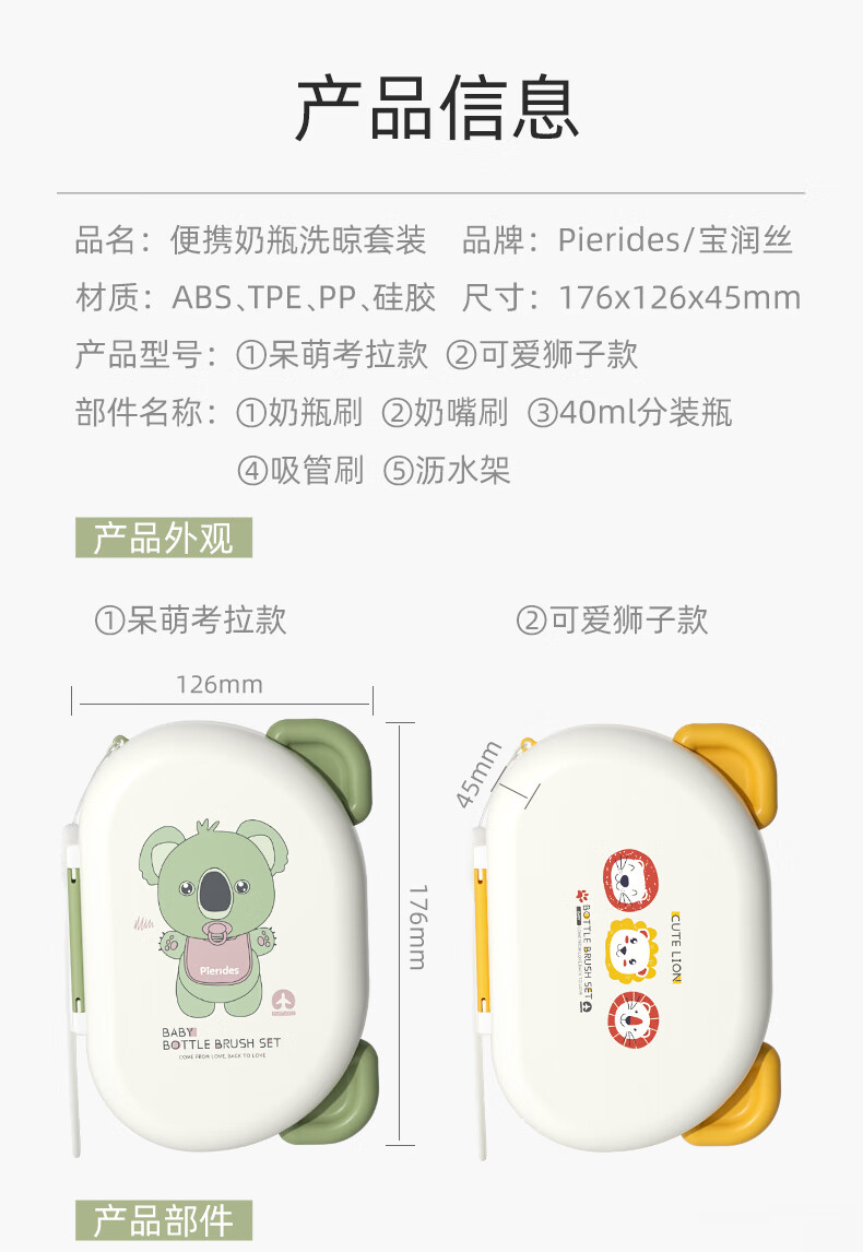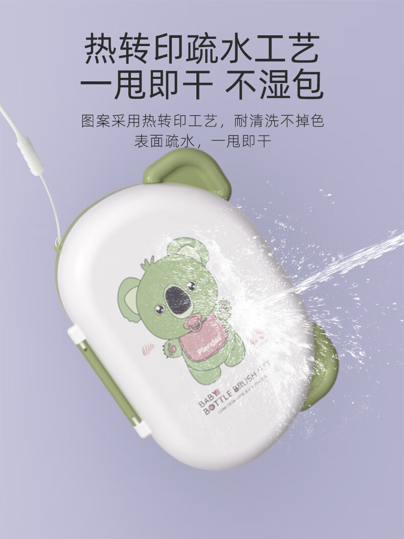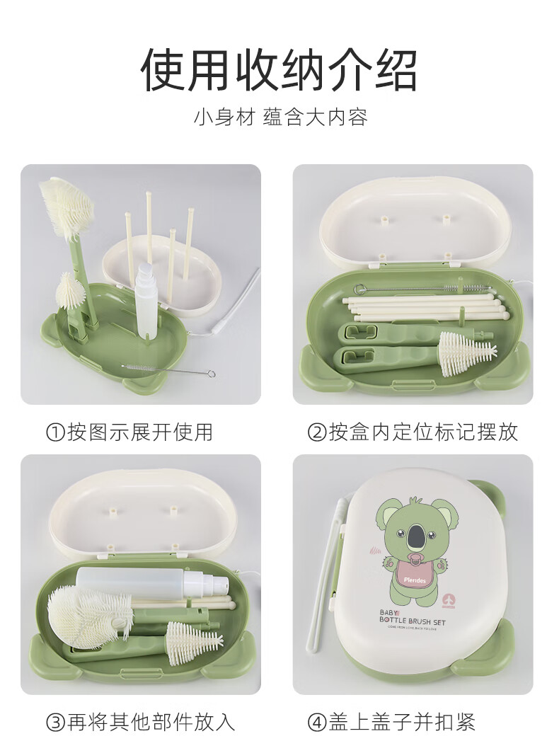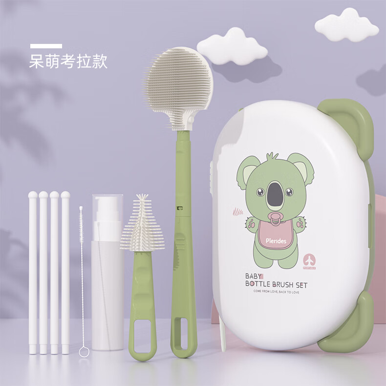 宝润丝宝宝便携硅胶奶瓶刷套装奶瓶刷收纳盒奶瓶奶嘴折弯清洗刷 便携洗晾六件套【考拉款】