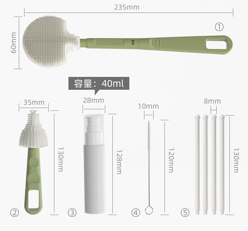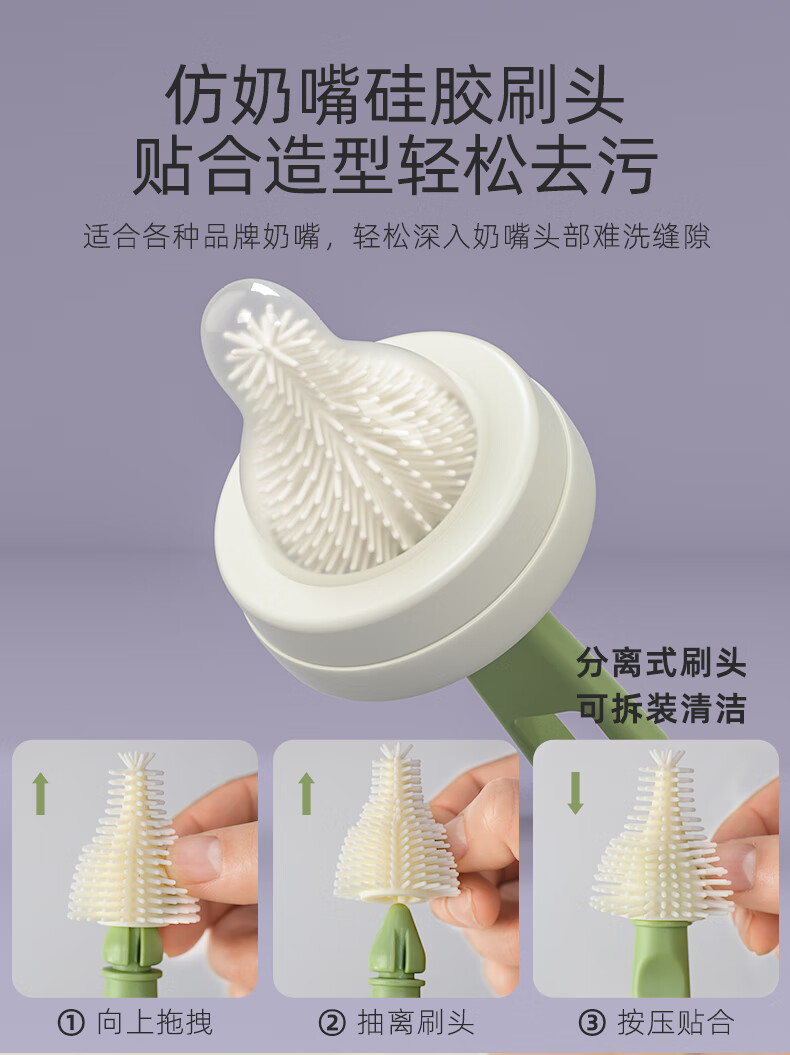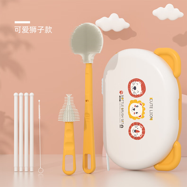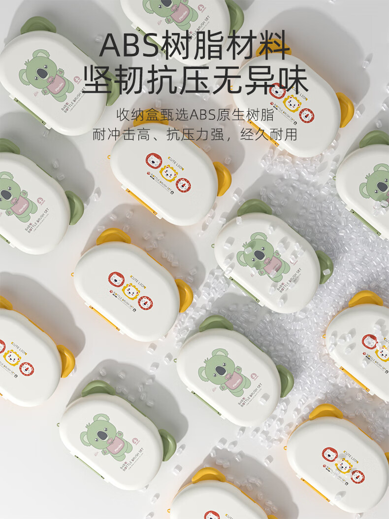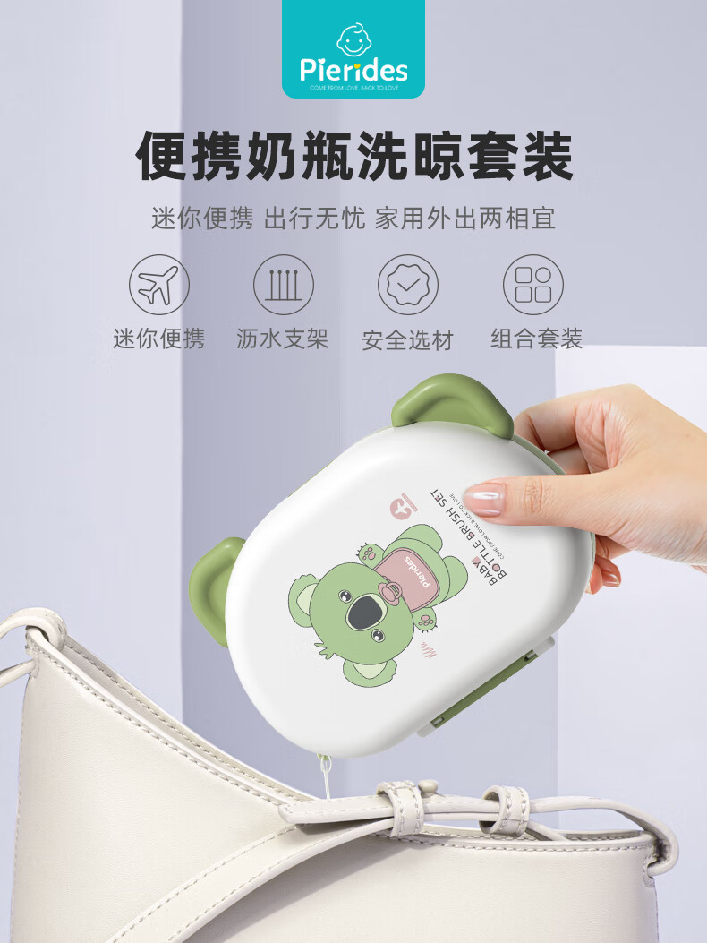 宝润丝宝宝便携硅胶奶瓶刷套装奶瓶刷收纳盒奶瓶奶嘴折弯清洗刷 便携洗晾六件套【考拉款】