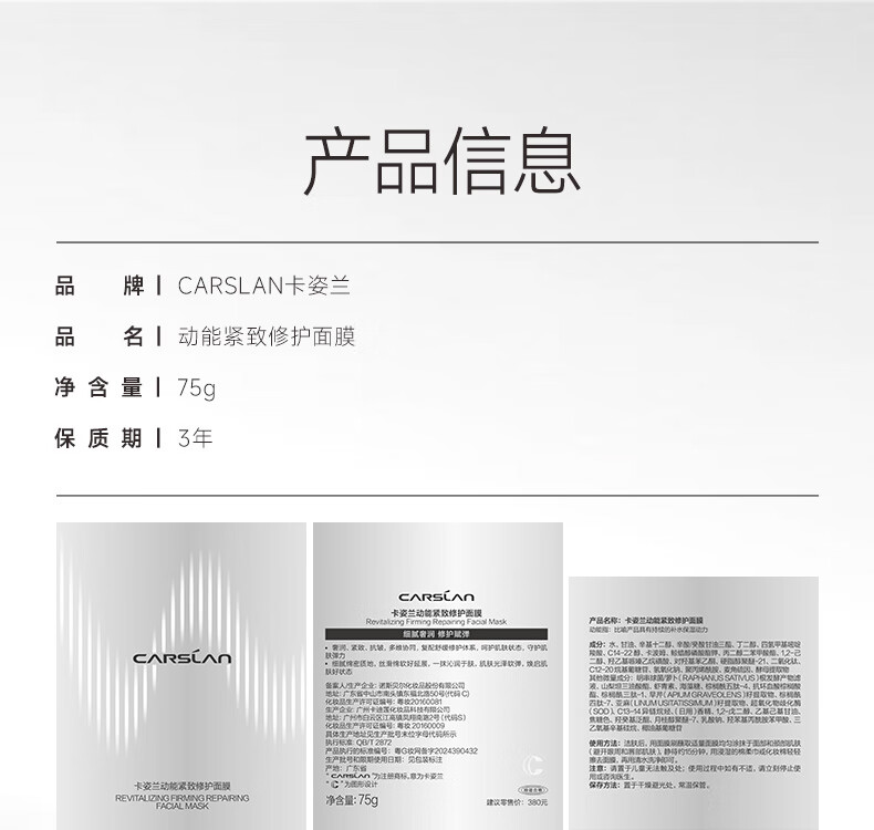 卡姿兰动能肽紧致修护面膜涂抹深度补水抗皱提亮肤色保湿水润敏感肌可用 动能紧致修护面膜75g(涂抹式)