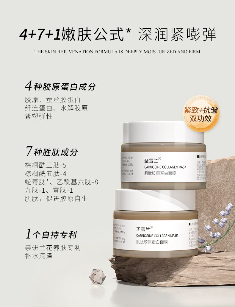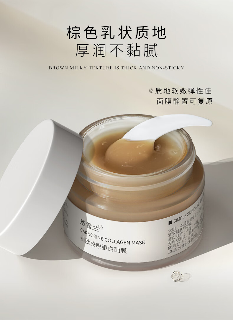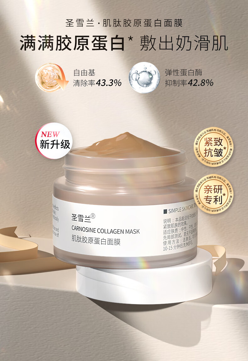 圣雪兰肌肽胶原蛋白面膜女涂抹 保湿补水提拉紧致抗皱 3瓶装