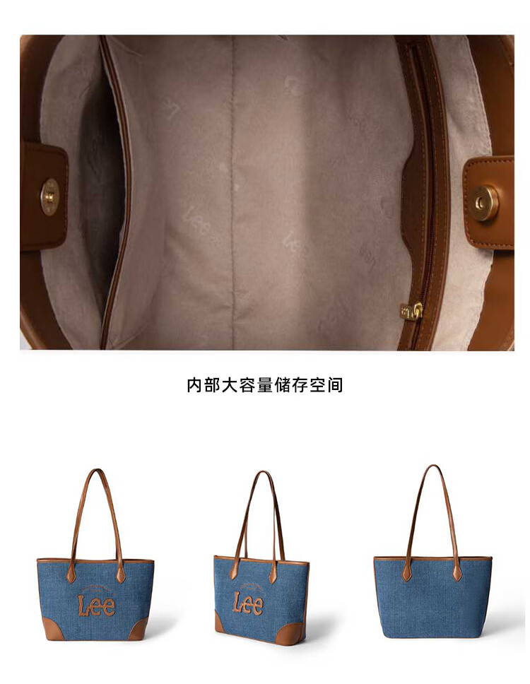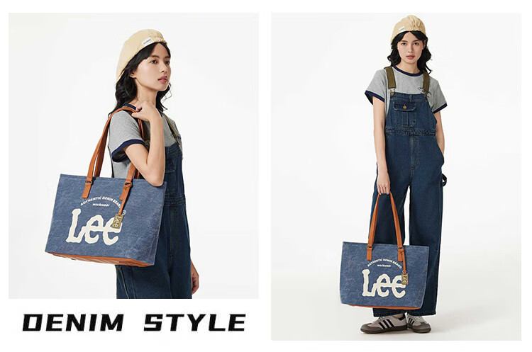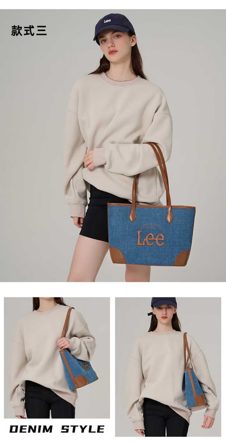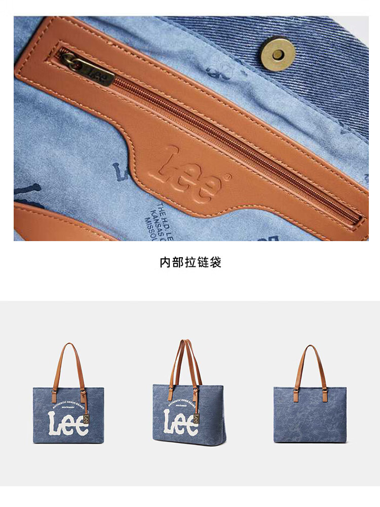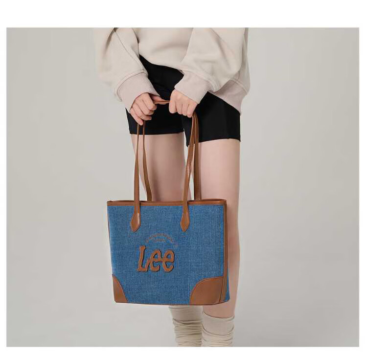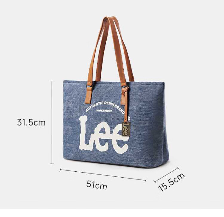 LEE2025新款大容量托特包单肩手提电脑包女士包包男女通勤大学生书包 经典热销款 水洗蓝