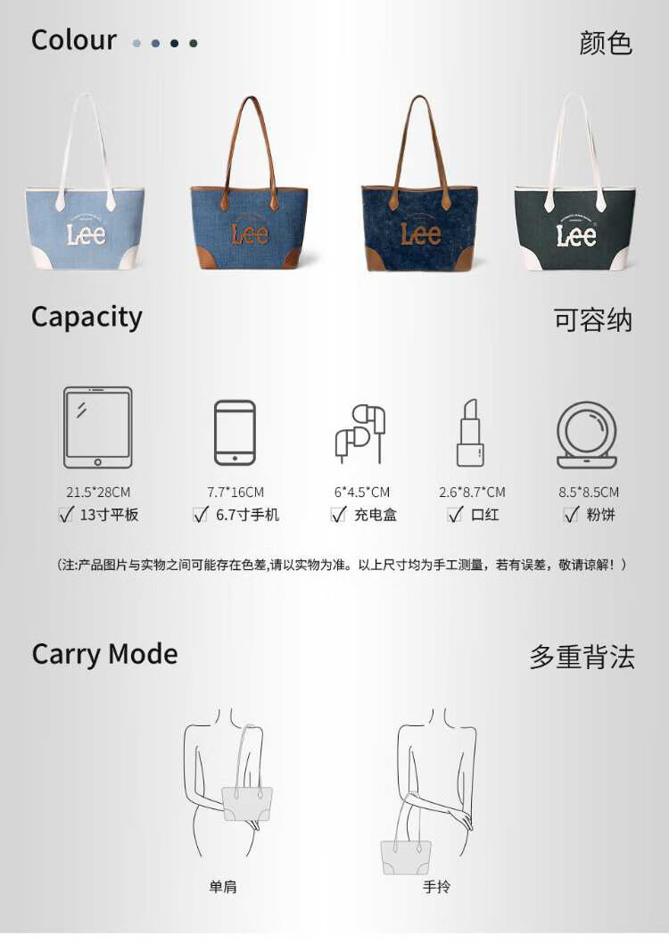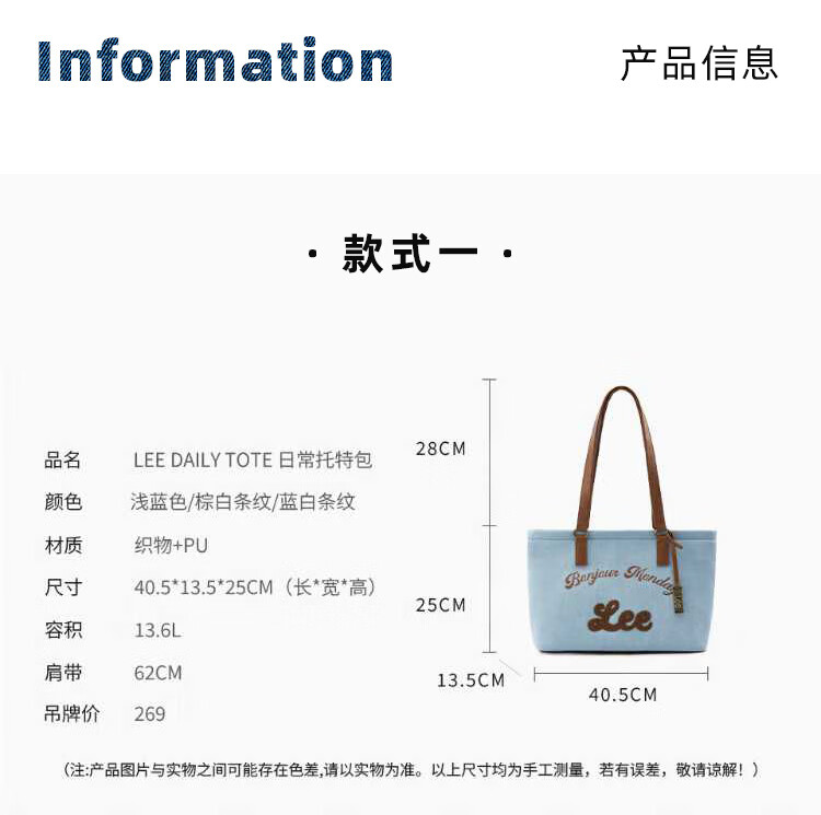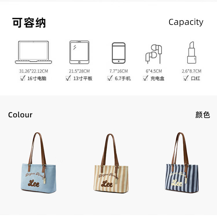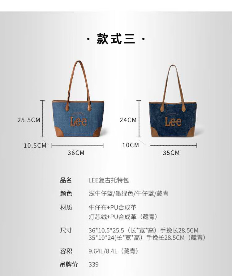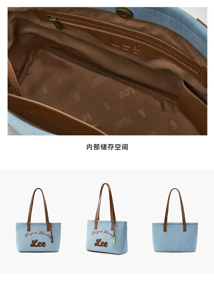 LEE2025新款大容量托特包单肩手提电脑包女士包包男女通勤大学生书包 经典热销款 水洗蓝