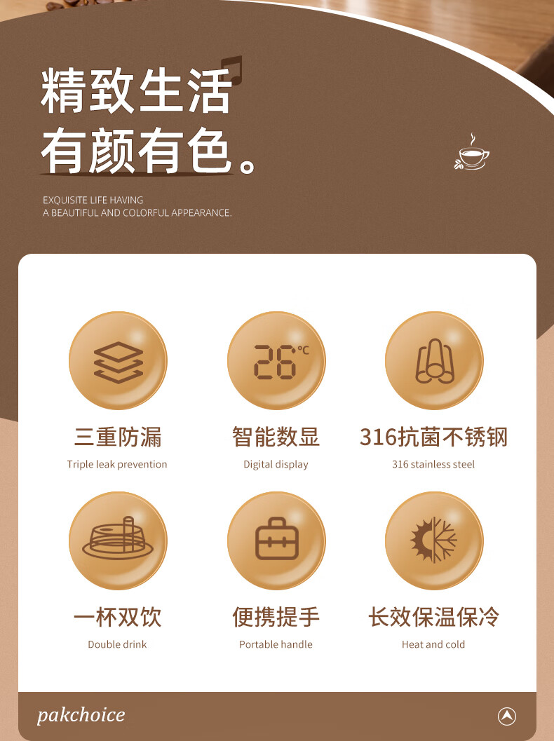 藤和树里保温杯水杯杯子保温杯男款保温杯女款水杯女生水杯保温杯学生 316L不锈钢保温杯(智能显温)