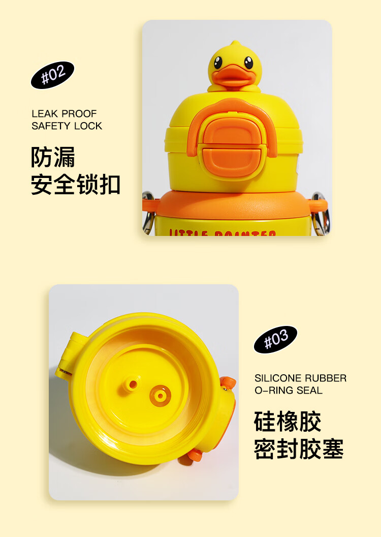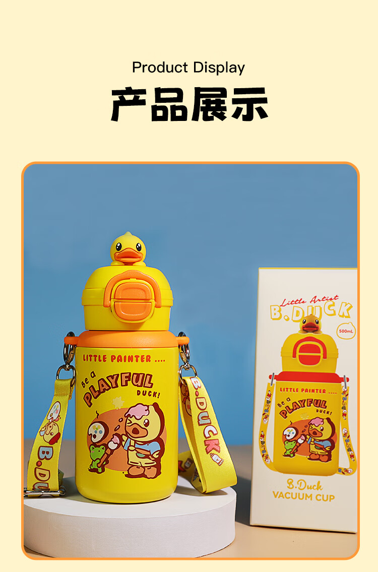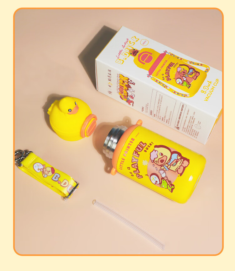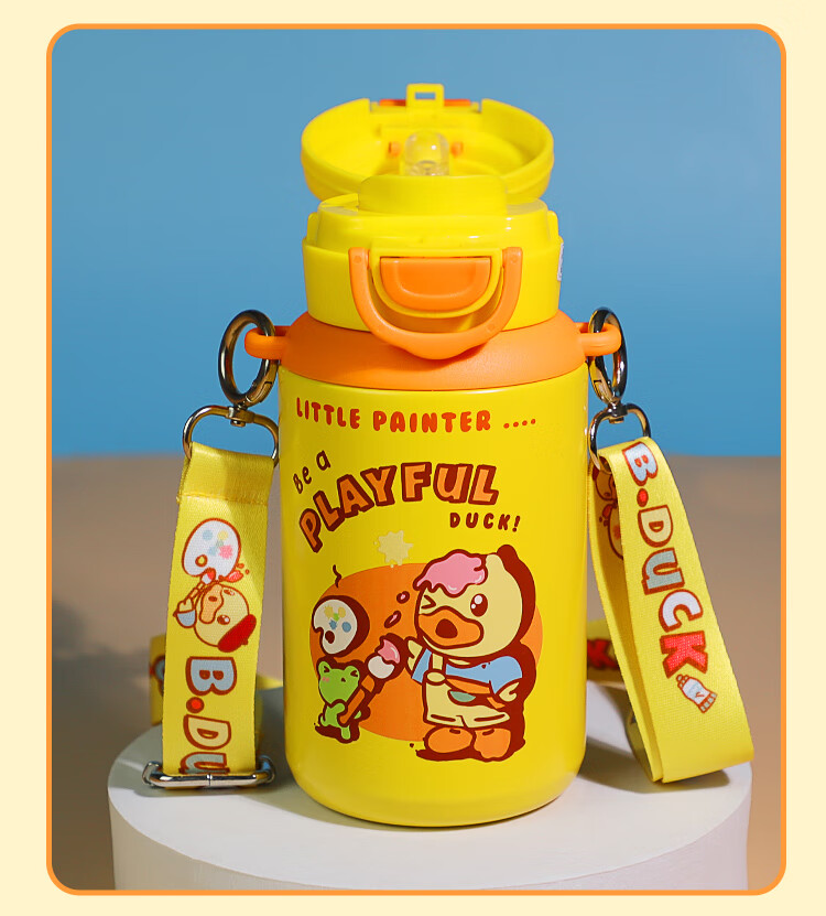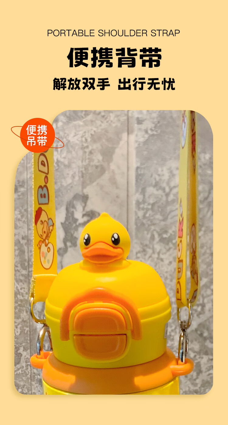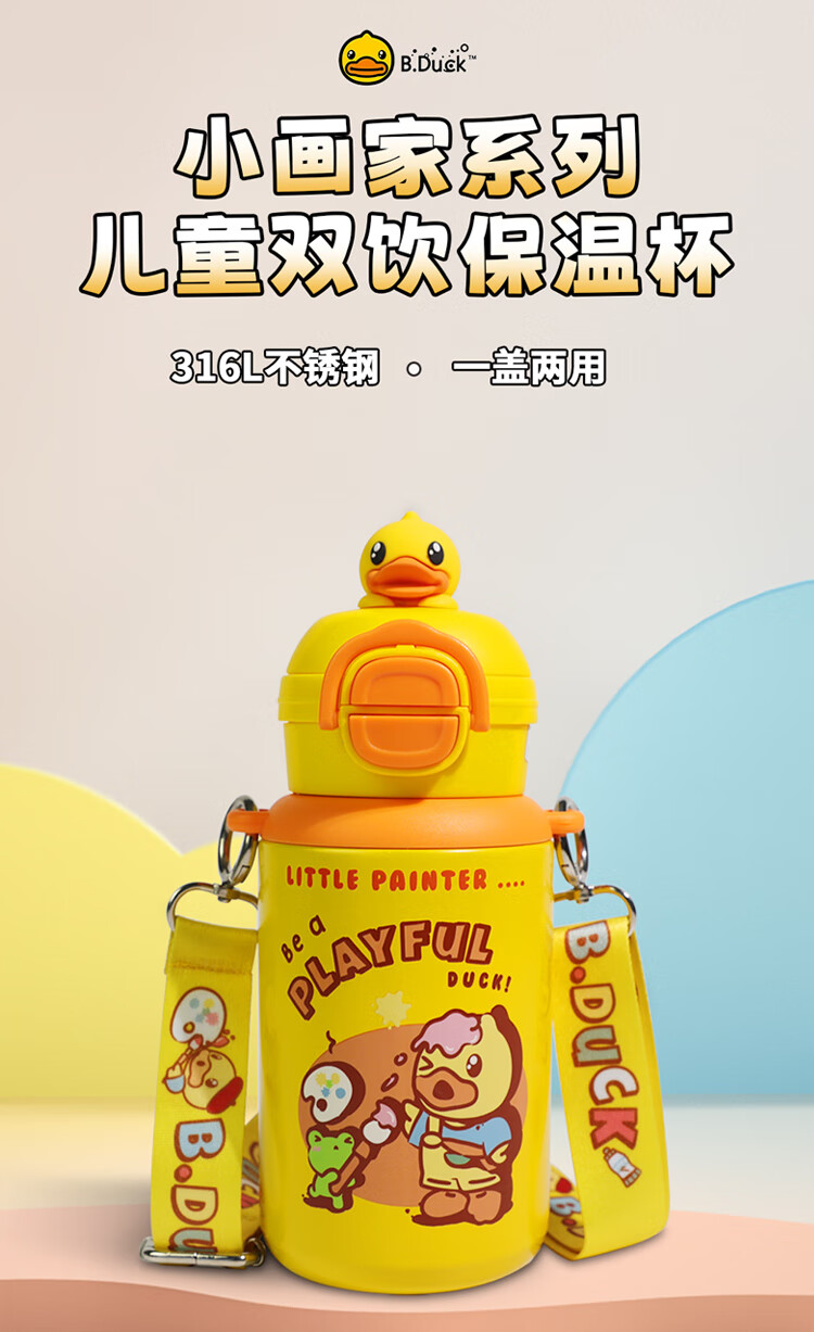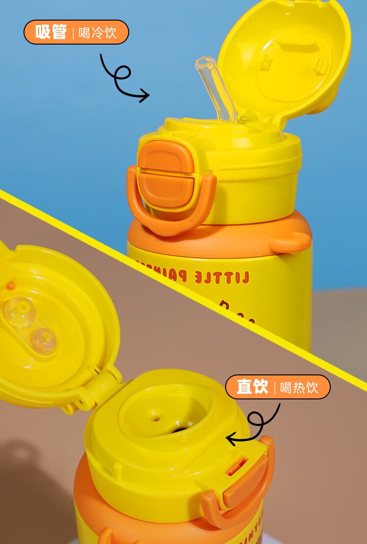 B.DUCK小黄鸭保温杯儿童吸管杯直饮杯任意切换儿童保温杯3-6岁双饮水杯 黄色 500ml