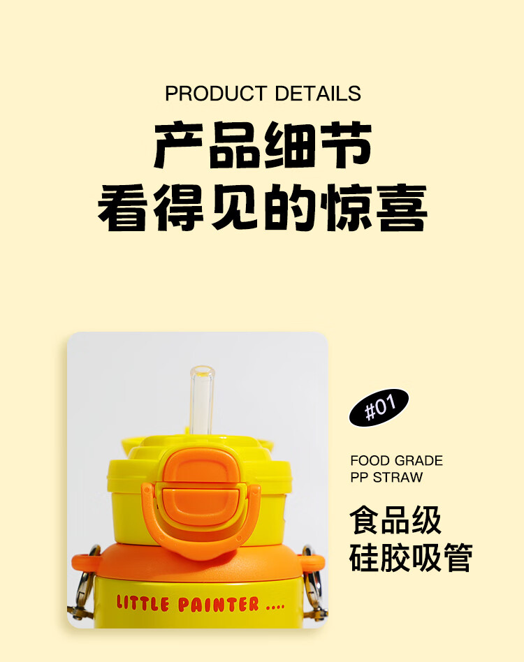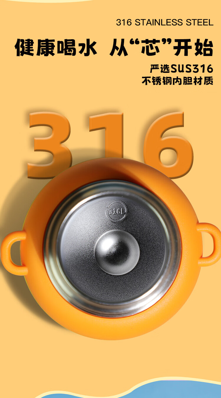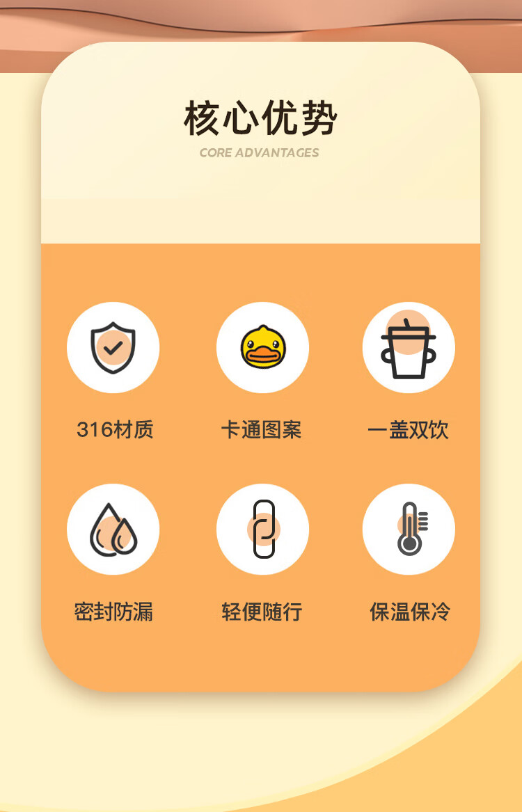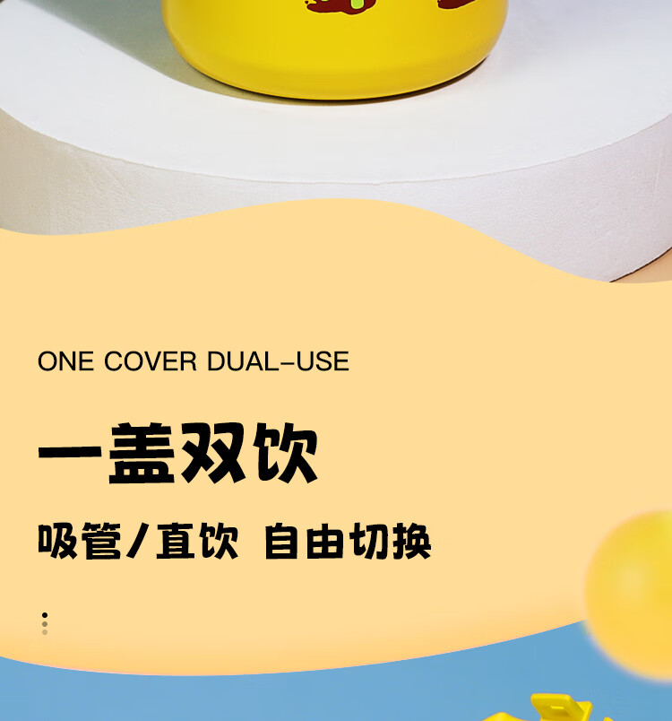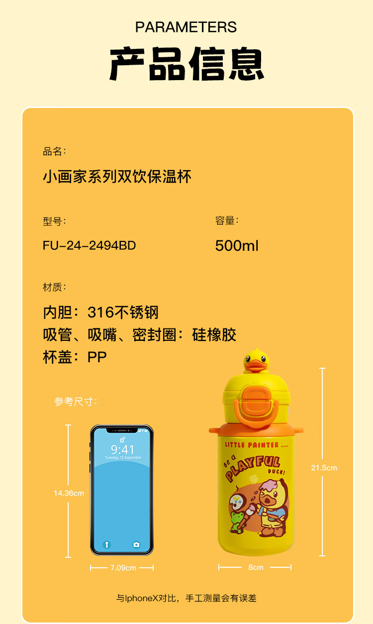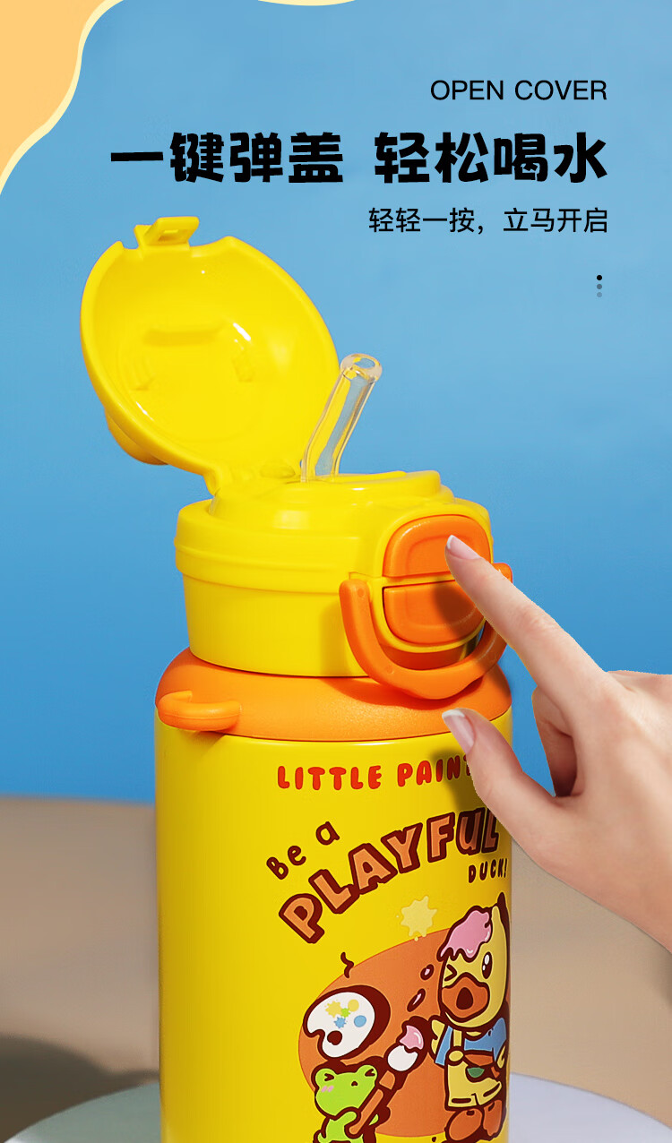 B.DUCK小黄鸭保温杯儿童吸管杯直饮杯任意切换儿童保温杯3-6岁双饮水杯 黄色 500ml