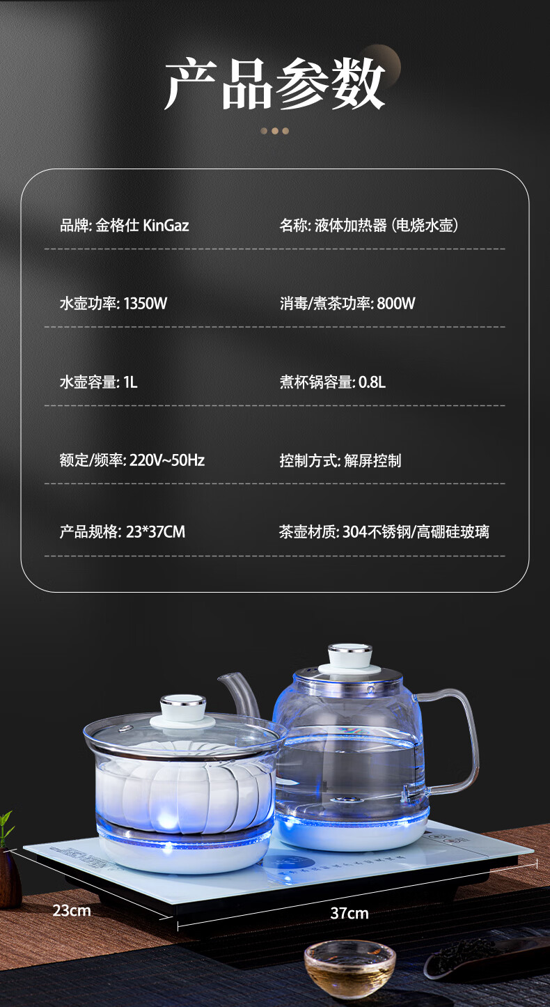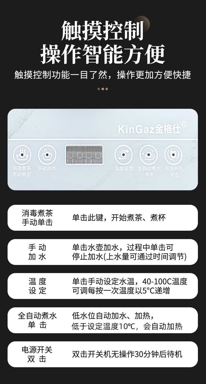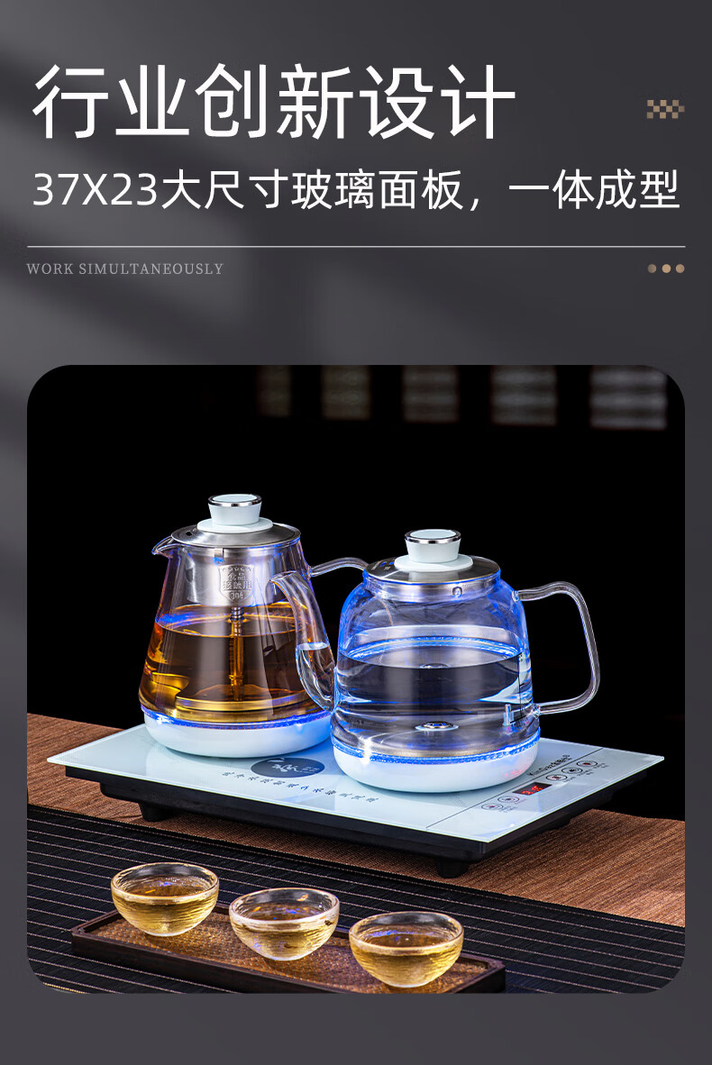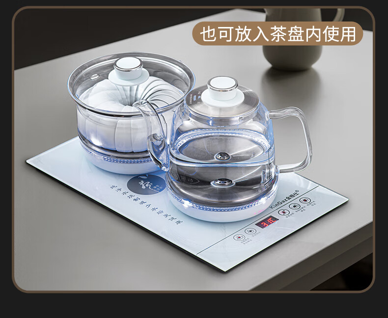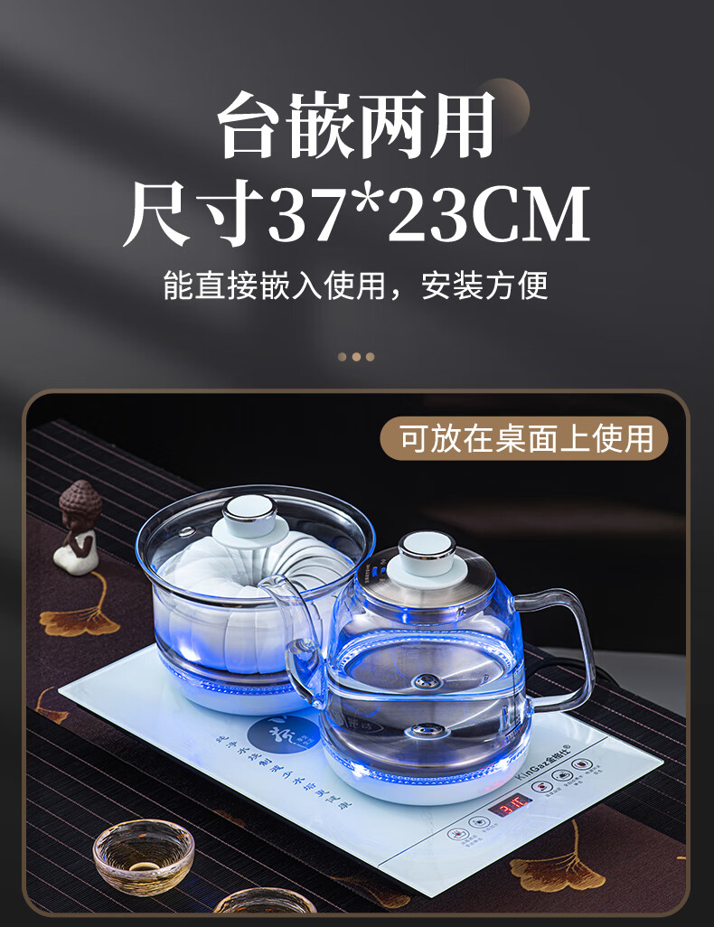 金格仕(KinGaz)自动上水茶台嵌入式烧水壶 37X23大理石纹路玻璃面板底部上水电热水壶家用玻璃茶台一体电茶炉 1L 大理石纹【23X37】白色-蒸茶款