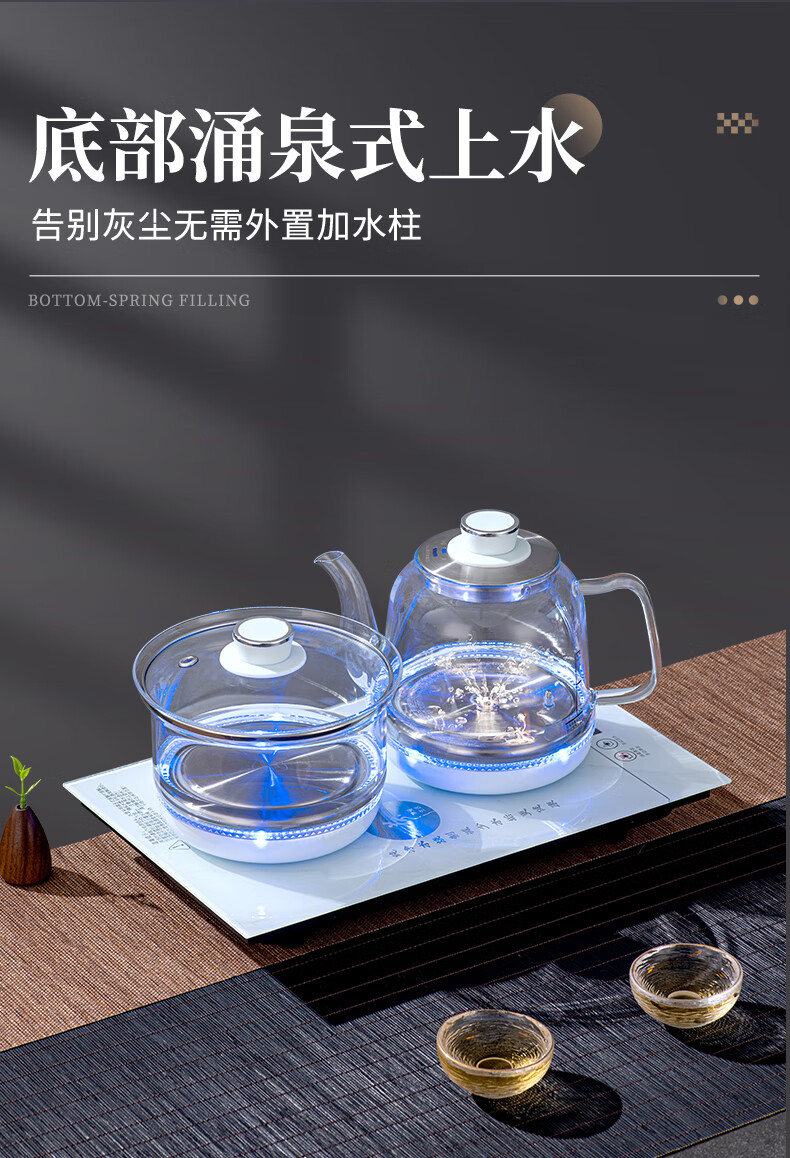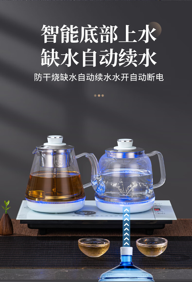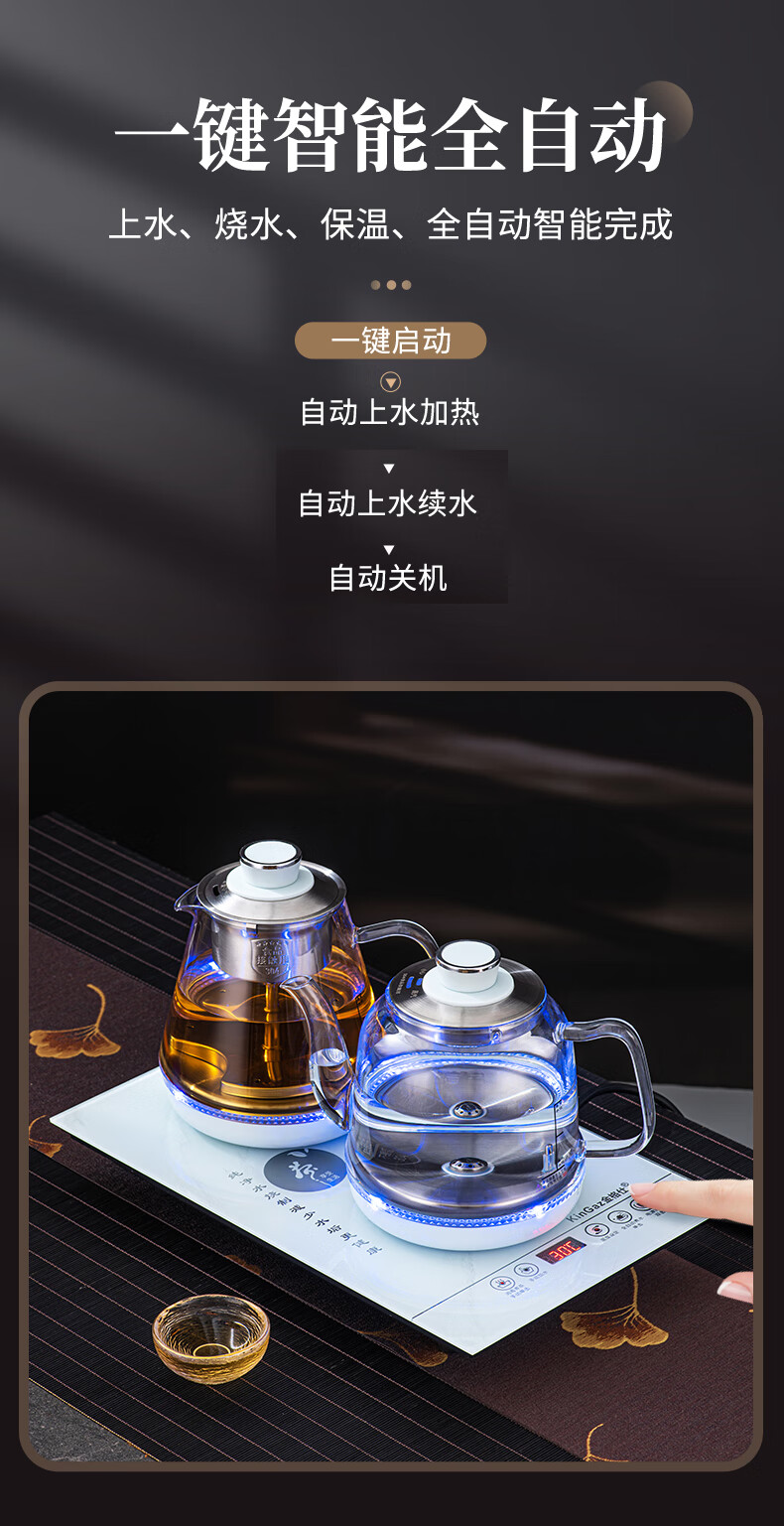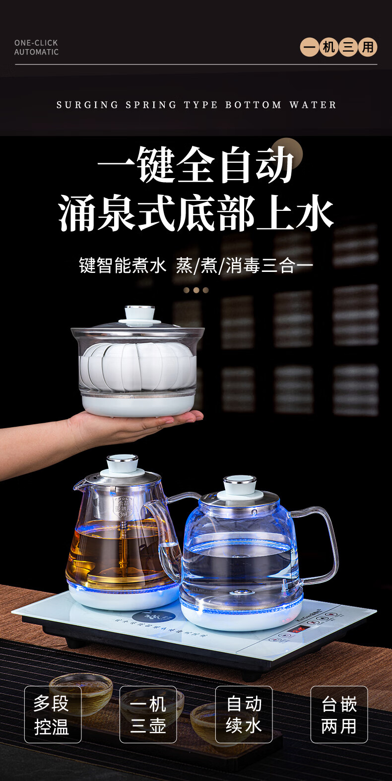 金格仕(KinGaz)自动上水茶台嵌入式烧水壶 37X23大理石纹路玻璃面板底部上水电热水壶家用玻璃茶台一体电茶炉 1L 大理石纹【23X37】白色-蒸茶款
