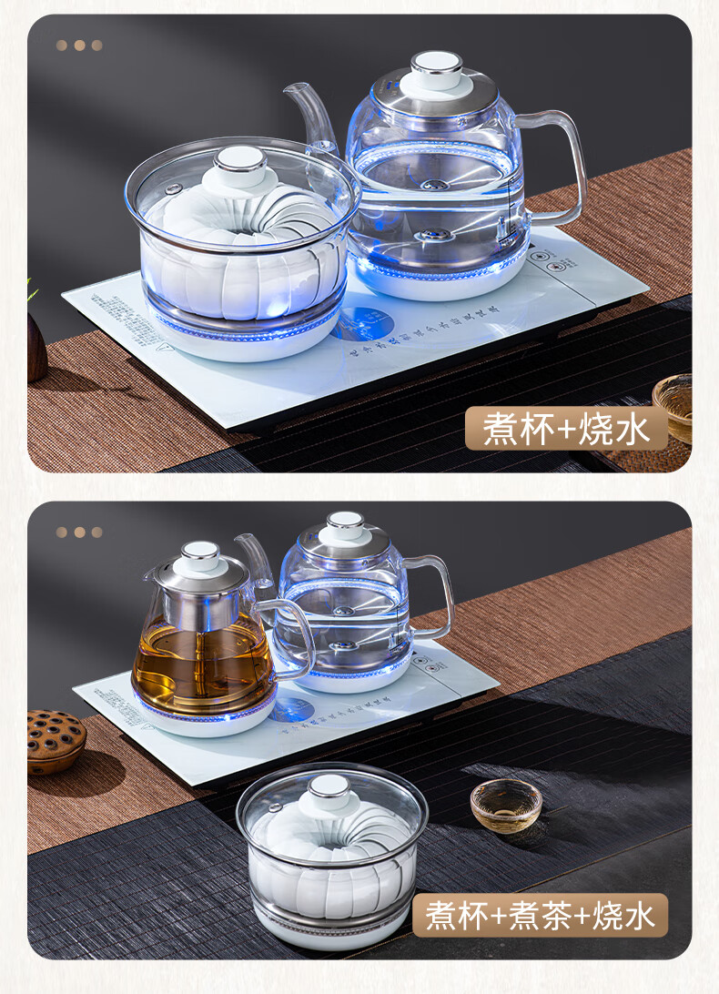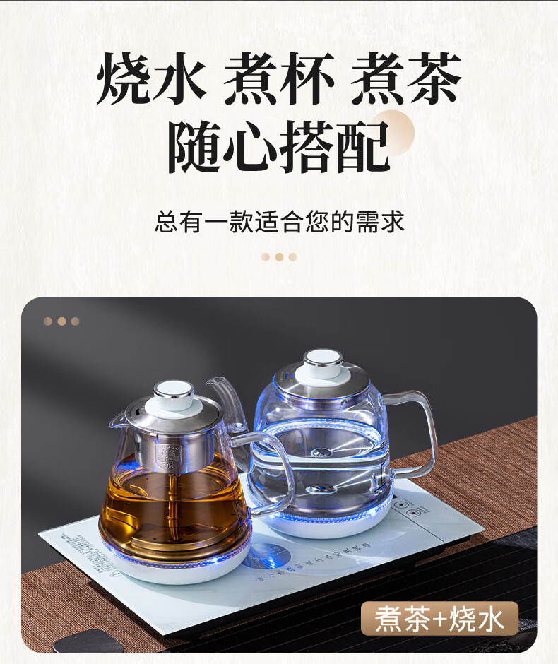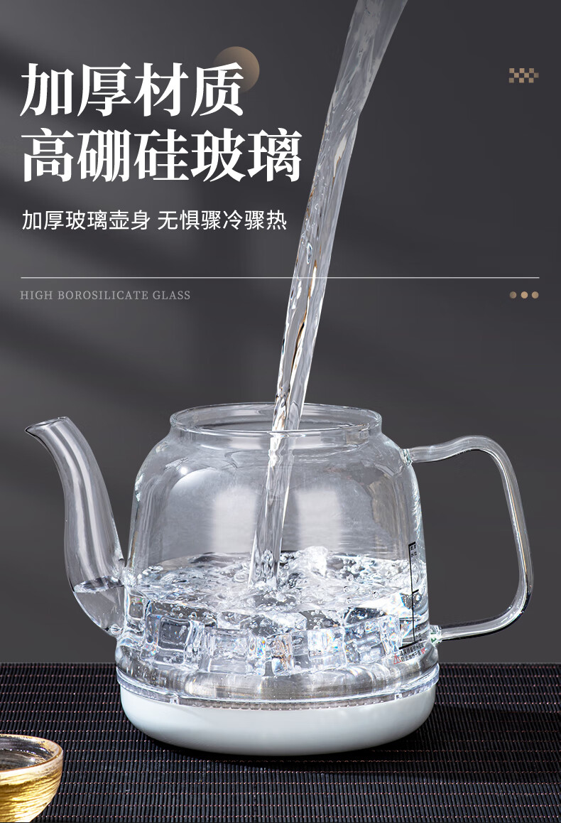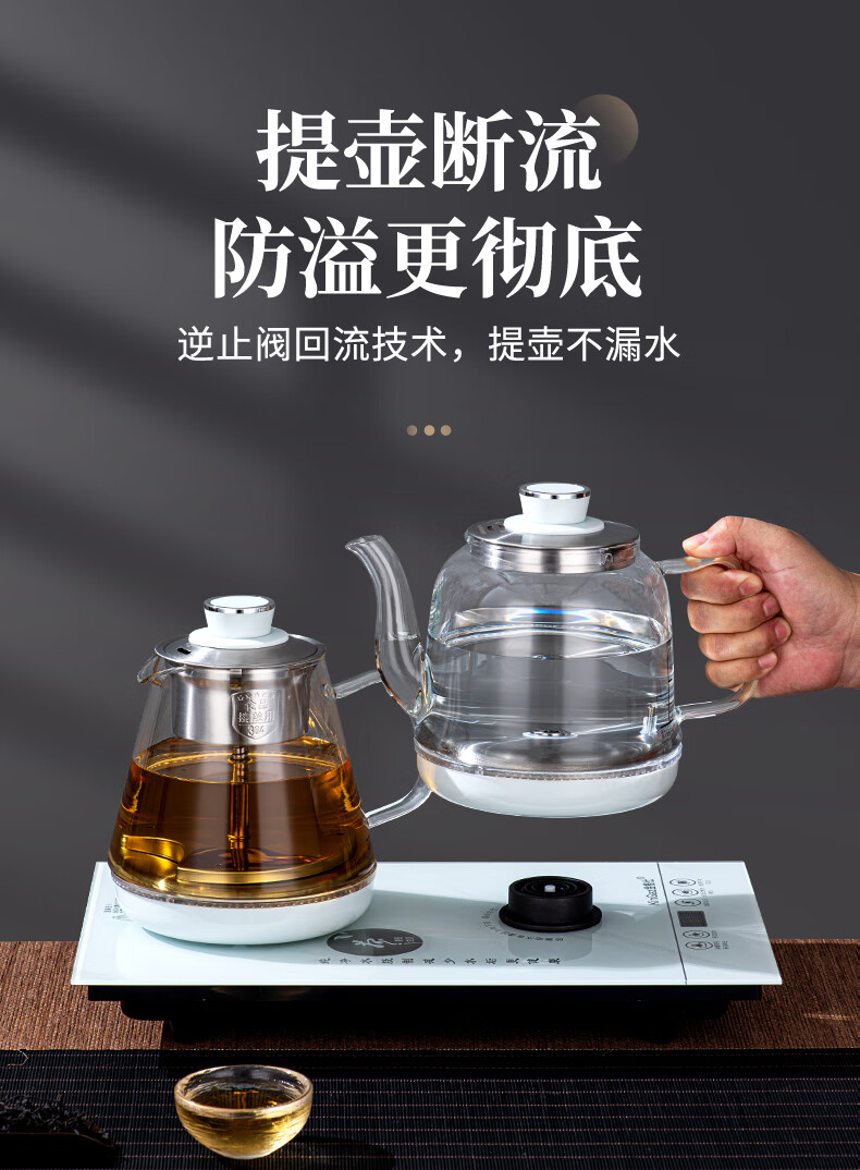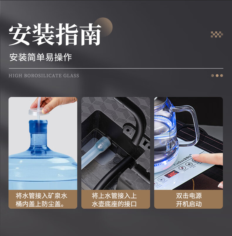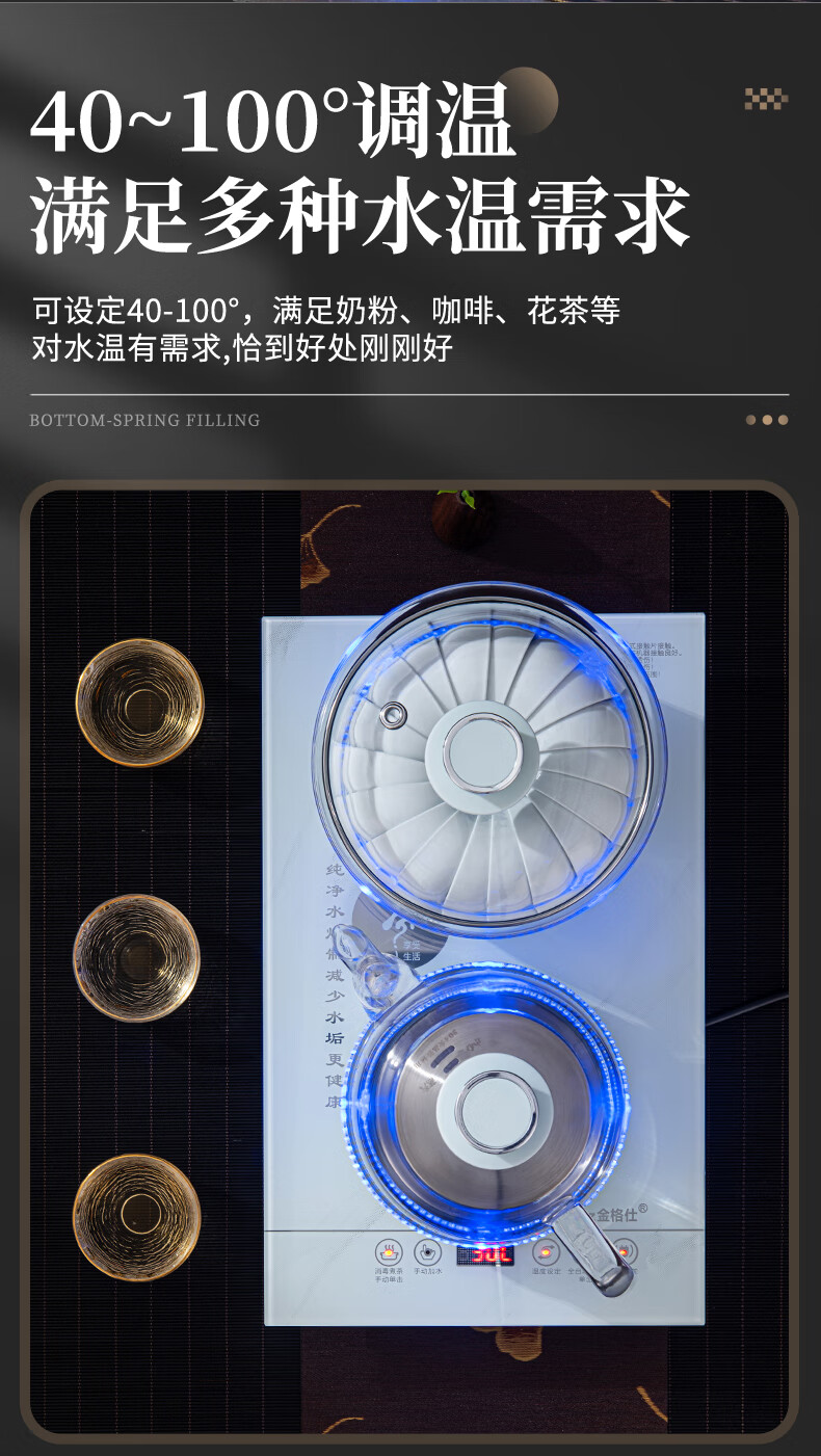 金格仕(KinGaz)自动上水茶台嵌入式烧水壶 37X23大理石纹路玻璃面板底部上水电热水壶家用玻璃茶台一体电茶炉 1L 大理石纹【23X37】白色-蒸茶款