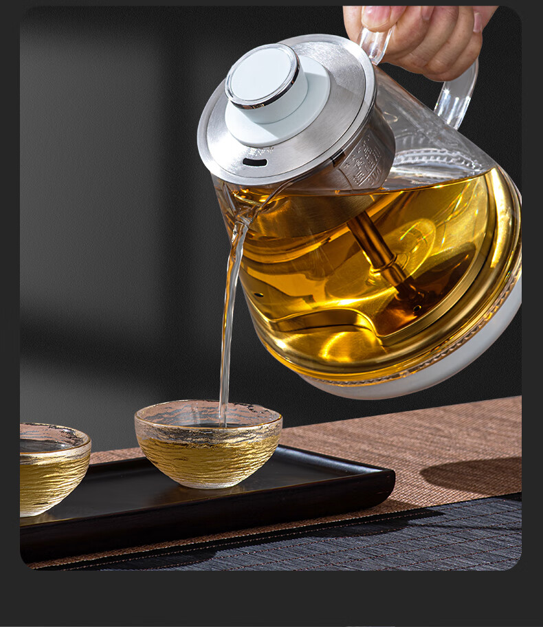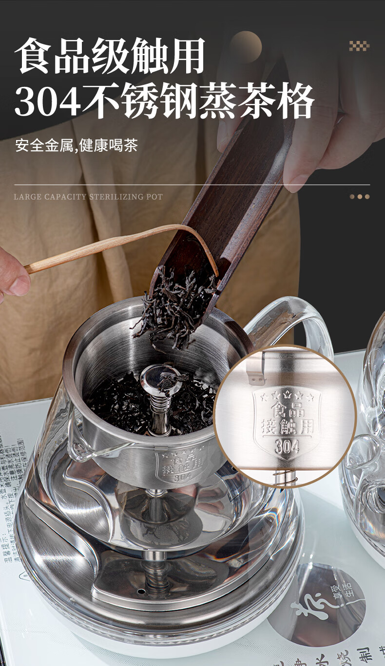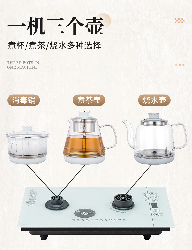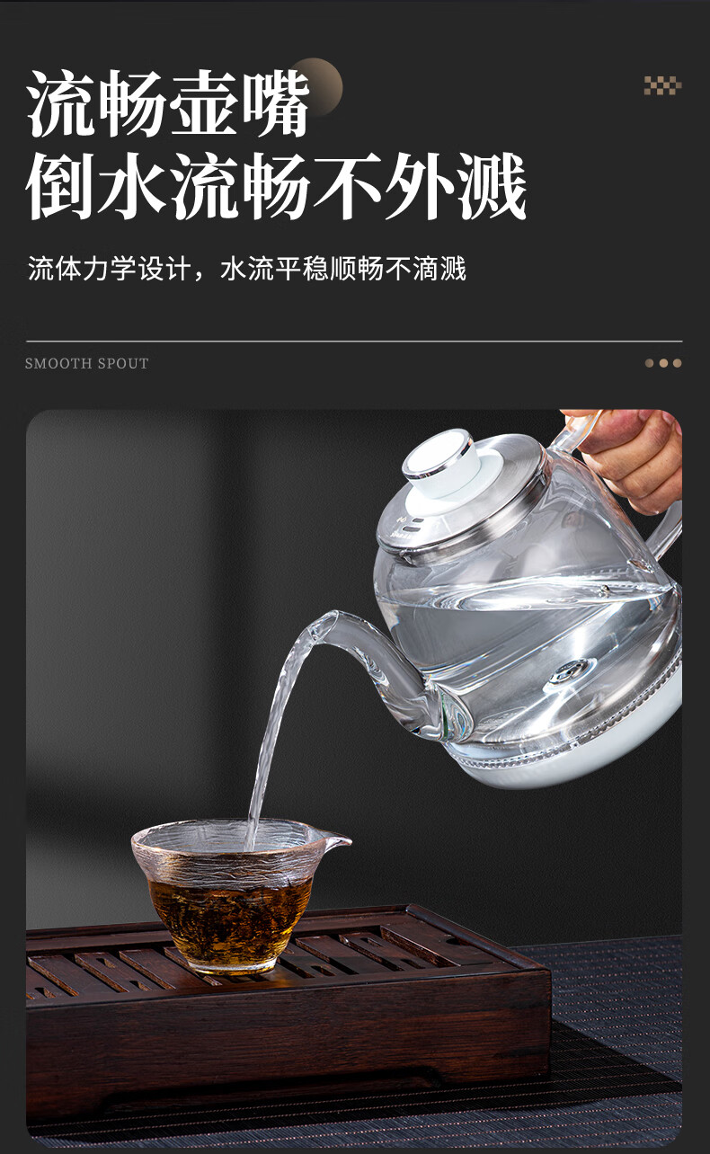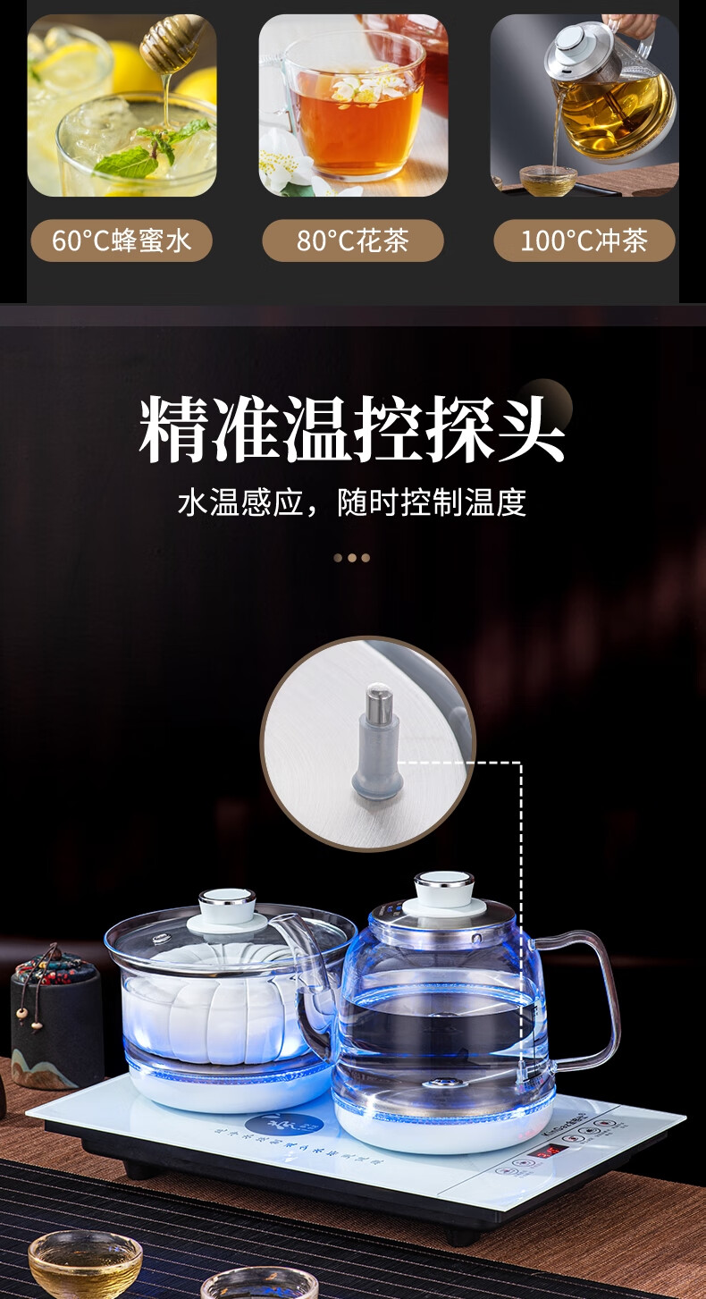 金格仕(KinGaz)自动上水茶台嵌入式烧水壶 37X23大理石纹路玻璃面板底部上水电热水壶家用玻璃茶台一体电茶炉 1L 大理石纹【23X37】白色-蒸茶款