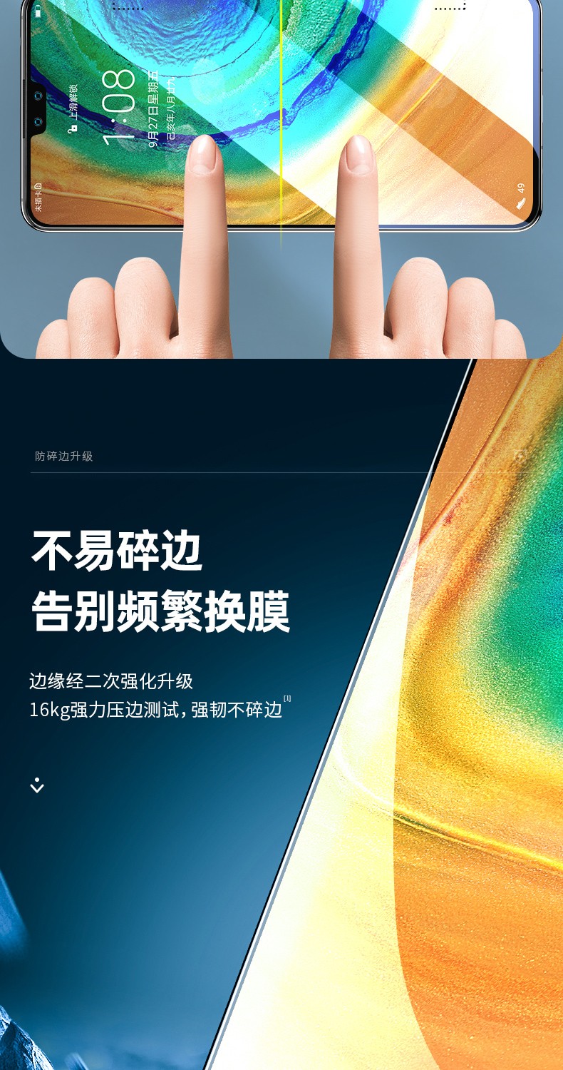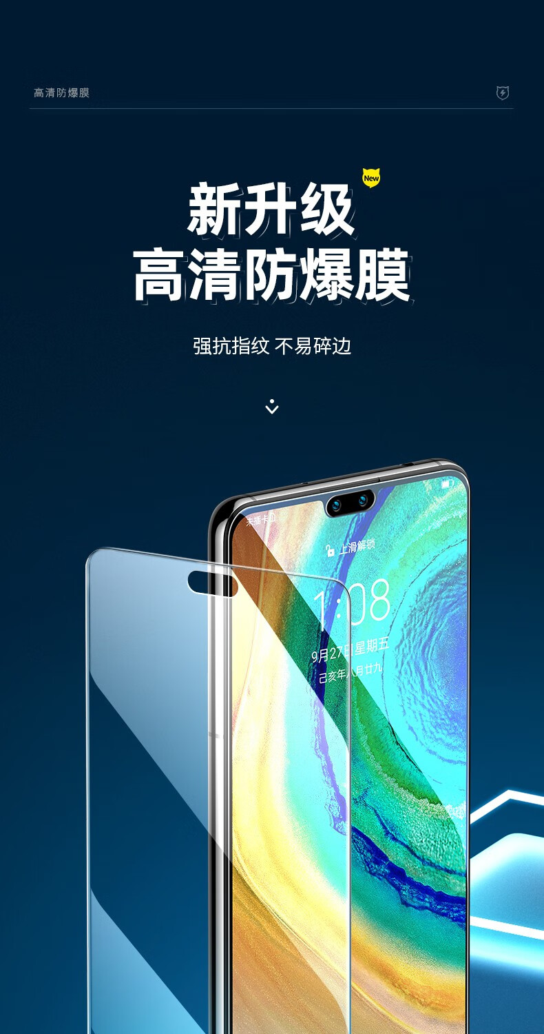 闪魔【精选厂家】 闪魔 适用于华为mate30/mate30pro钢化膜 30e高清全 mate30【标准版|纳米抗指纹】2片装 带贴膜神器