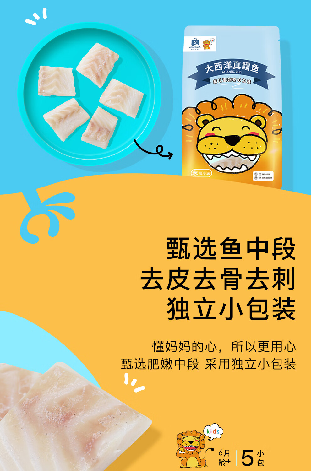 acornfresh京东冷链橡果生鲜大西洋真鳕鱼深海鳕鱼块送宝宝婴幼儿童辅食食谱